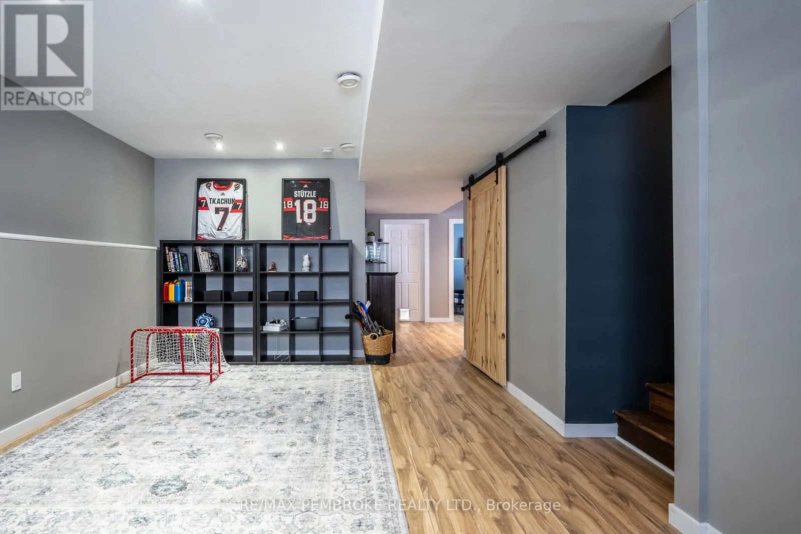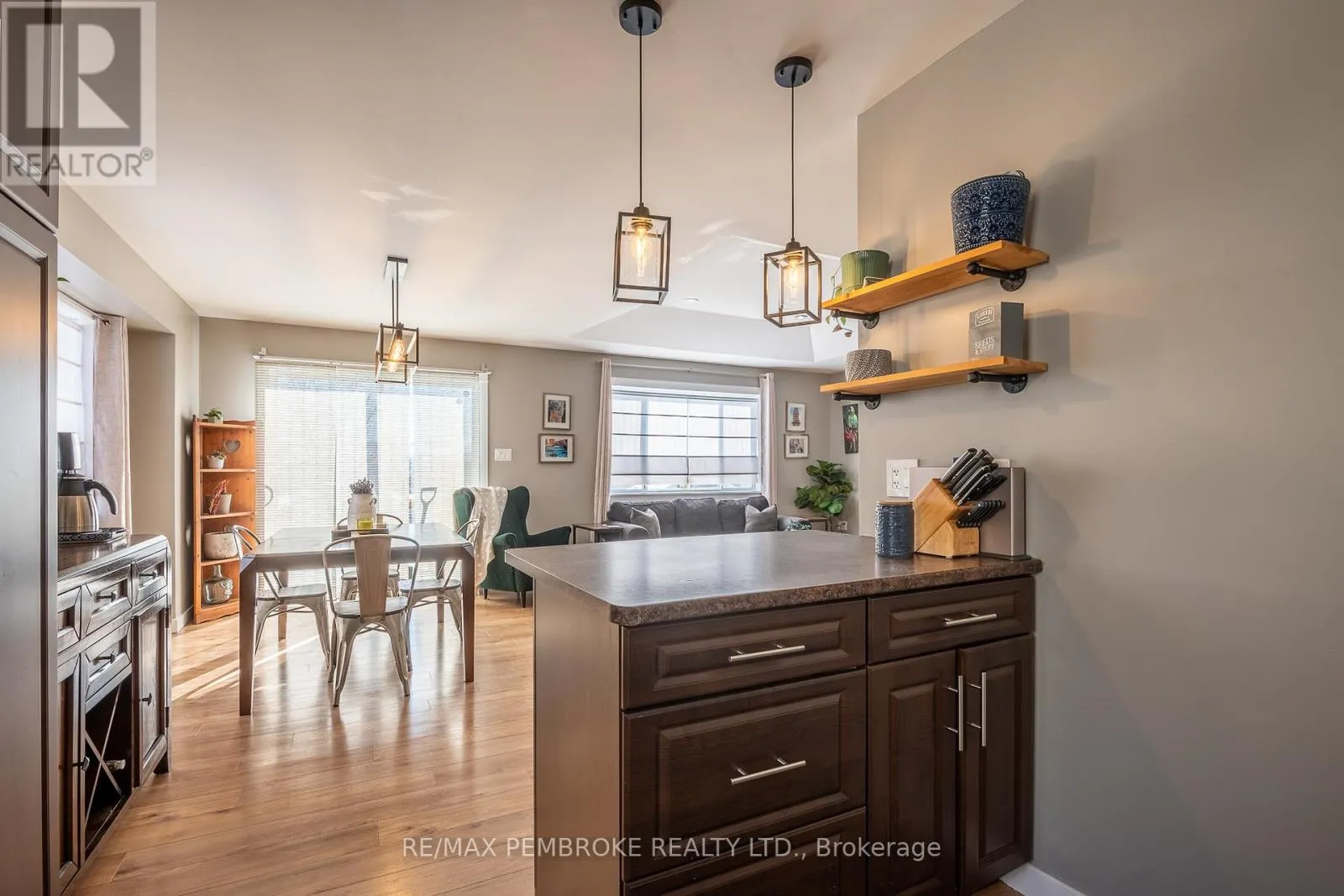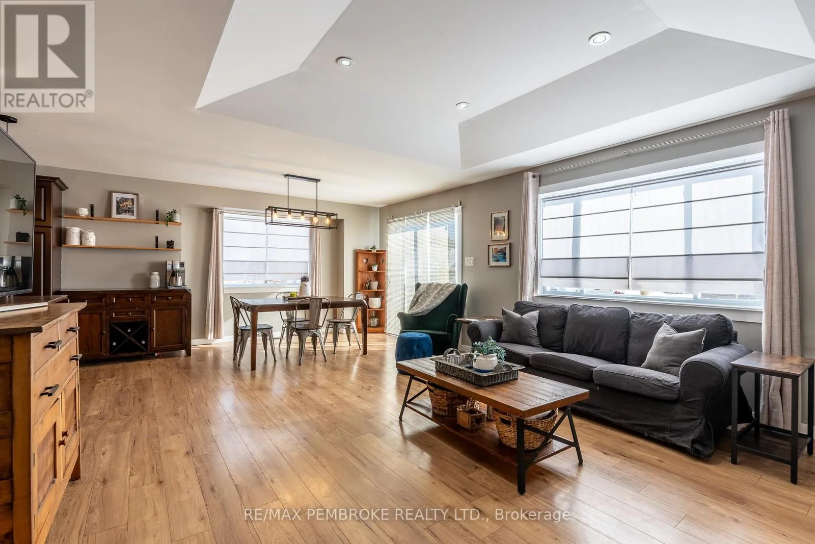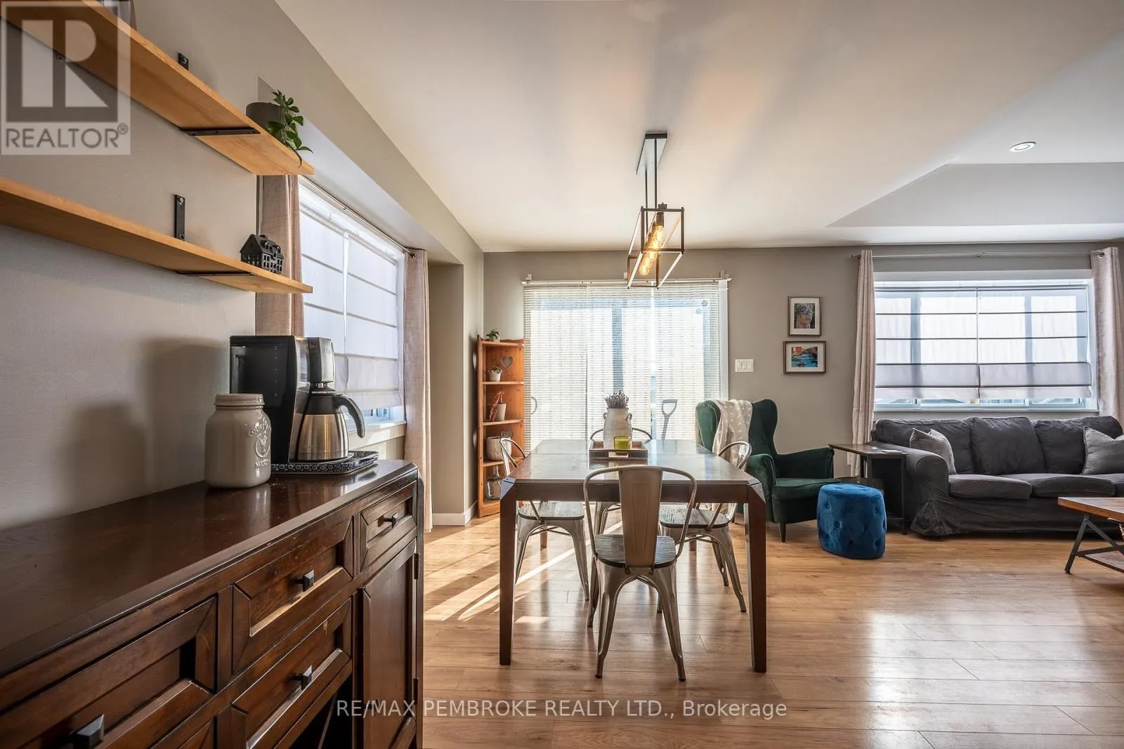 Cross Streets: Riverstone Tr and Limestone Tr. ** Directions: Laurentian Dr to Limestone Tr, then right onto Riverstone OR or Petawawa Blvd to Limestone Trail, then left onto Boulder Creek and right onto Riverstone. Welcome to this bright and welcoming home, ideally situated close to schools, parks, shopping, and more. You will appreciate the lovely curb appeal with gardens, and once inside, you will find a spacious and functional foyer with access to the attached garage. The upper level offers an open-concept layout that is perfect for both everyday living and entertaining, and is complete with elegant light fixtures. The living room flows seamlessly into the dining and kitchen areas, where you will find additional prep space and seating at the peninsula, ample cabinetry, and a sliding door leading outside to the 12'x14' composite deck with access to the fenced yard. This is the ideal spot to host summer barbecues or have your morning coffee with the sunrise. The main level includes a primary bedroom, which you enter through French doors, two additional bedrooms and a full bathroom with a convenient linen closet. The lower level features two more gathering spaces offering plenty of flexibility for a home office space, play area or gym. A fourth bedroom and a second full bathroom adorn this level. If you are looking for additional space for your outdoor equipment or a work kit, there is a bonus storage room approximately 6'x10' with shelves. Once outside, you will enjoy the fenced backyard, complete with a shed for quick and easy storage of your garden tools. Perfectly located in the desirable Limestone Trail subdivision, this home is a fantastic opportunity for anyone looking for a great balance of space, comfort, and convenience. (id:27476)