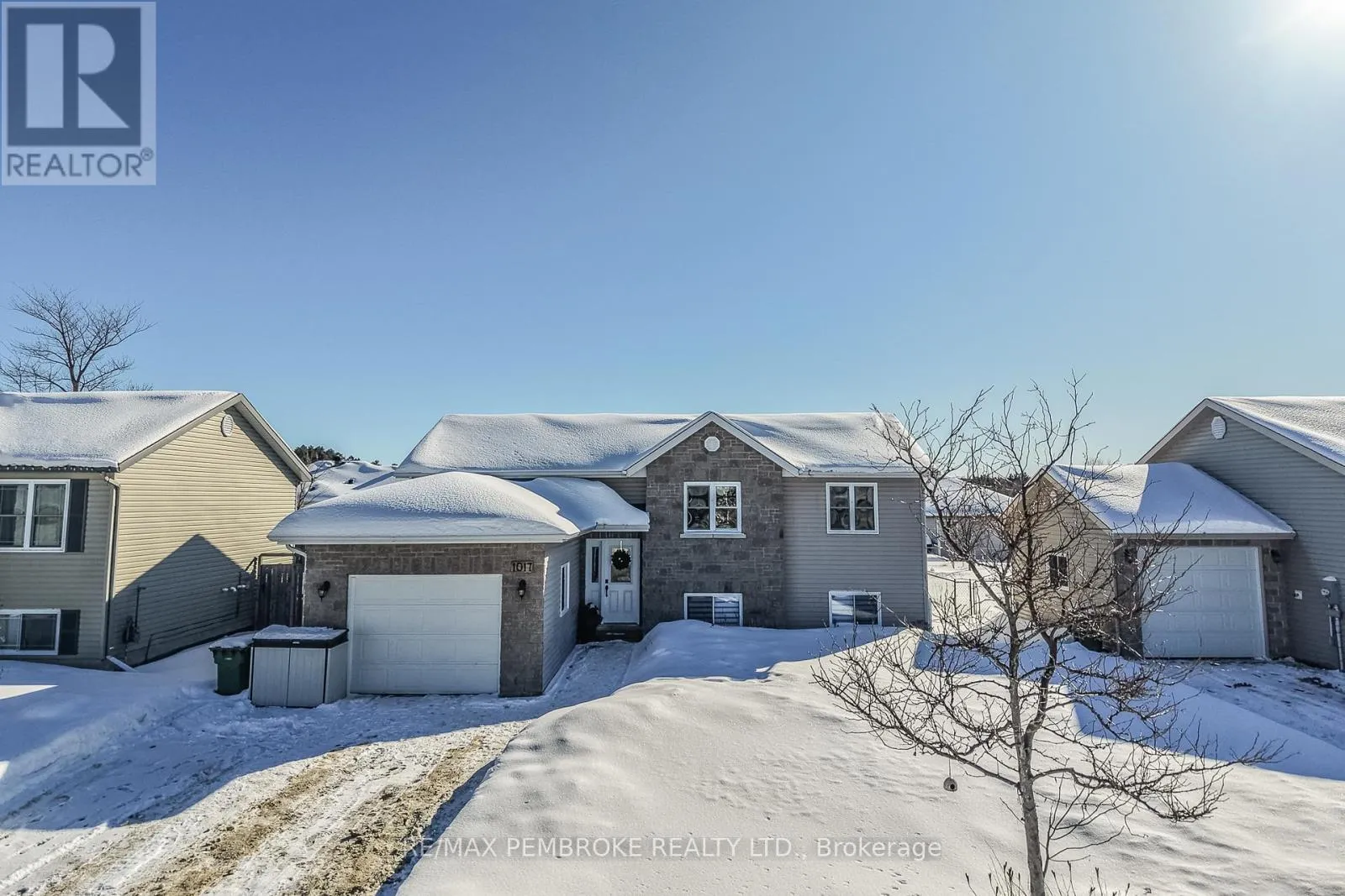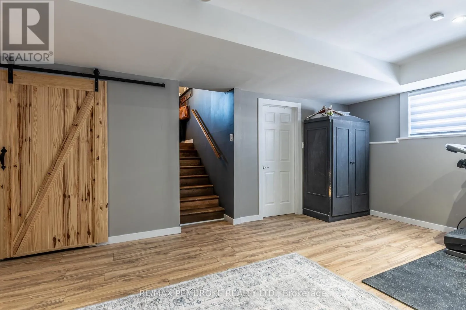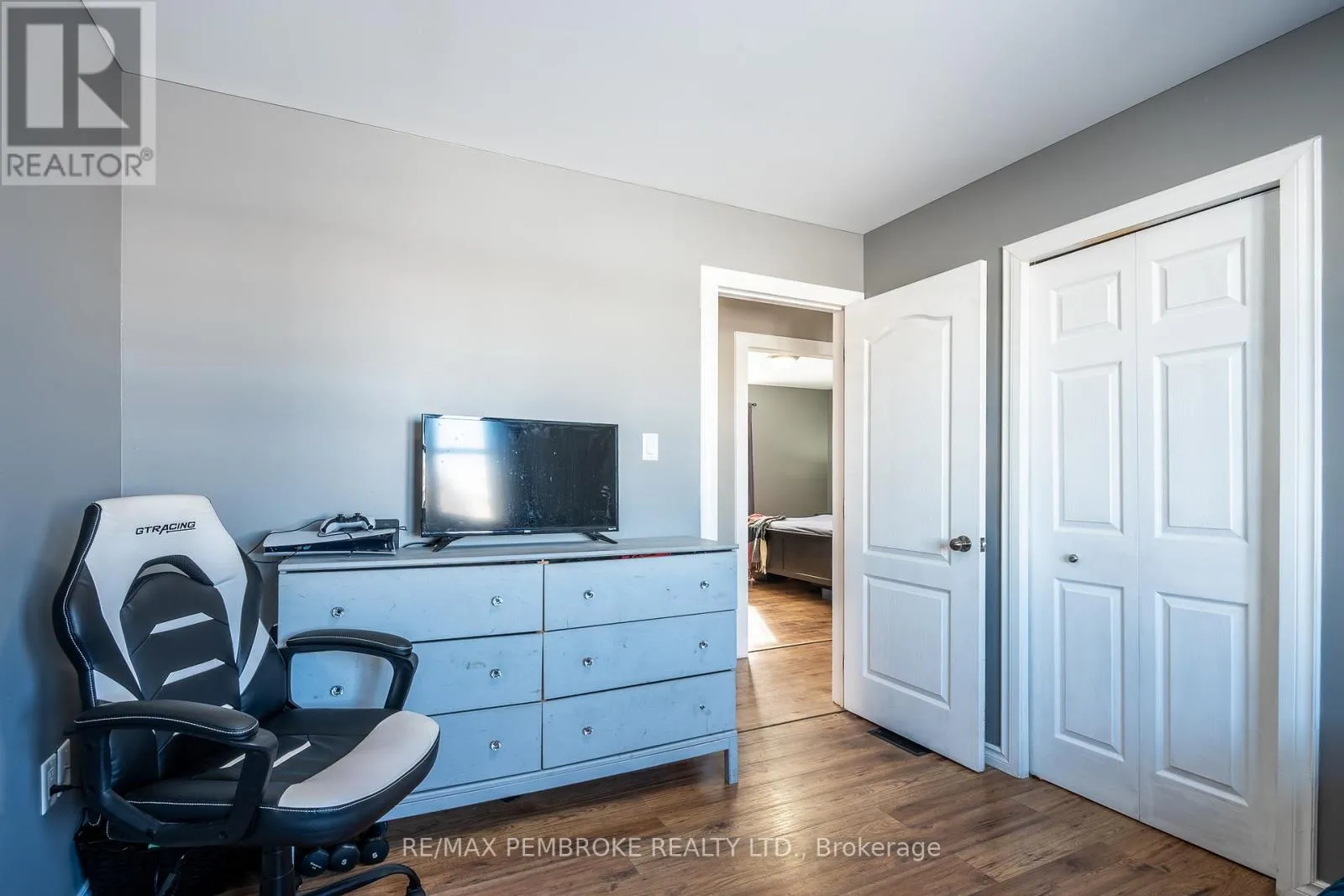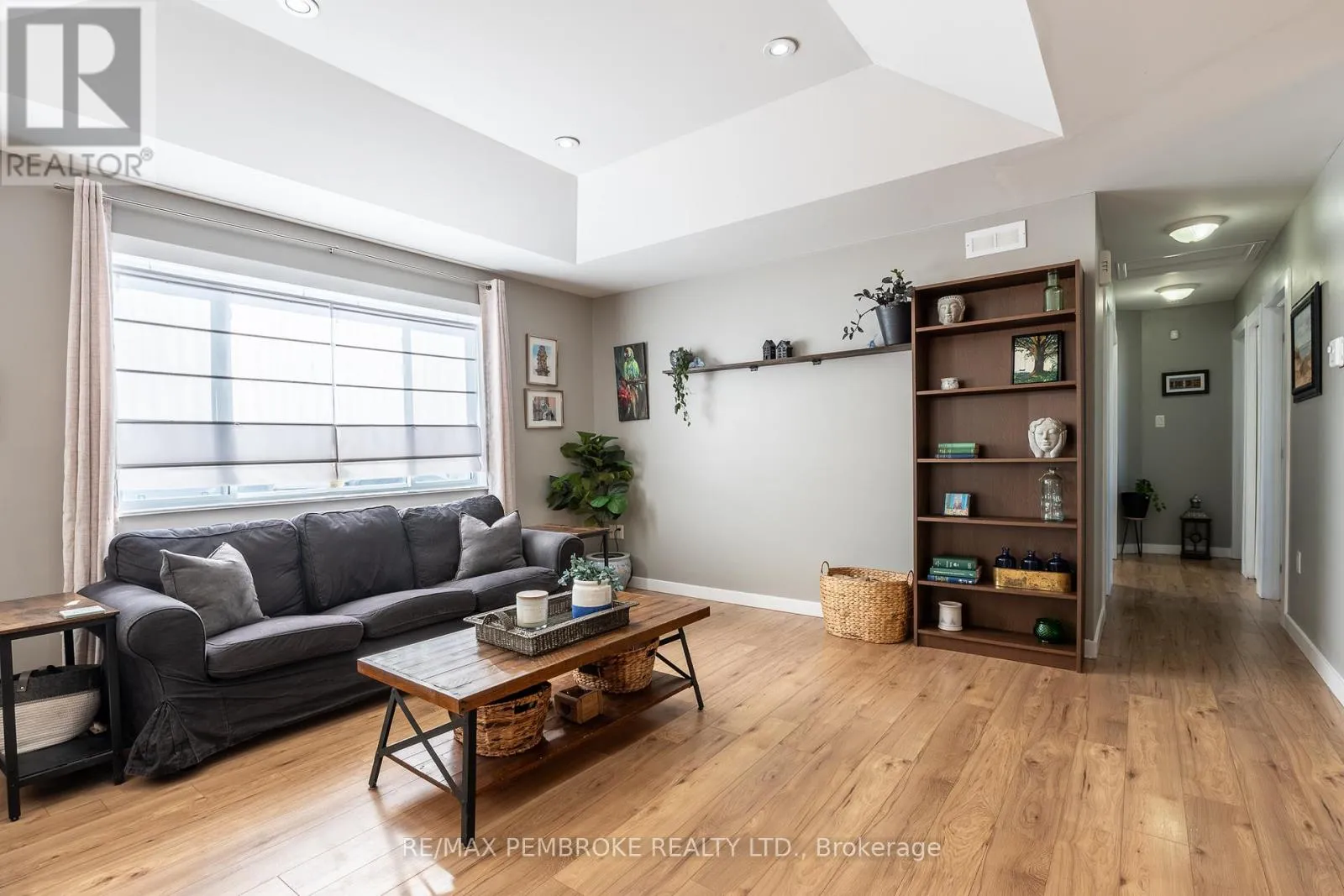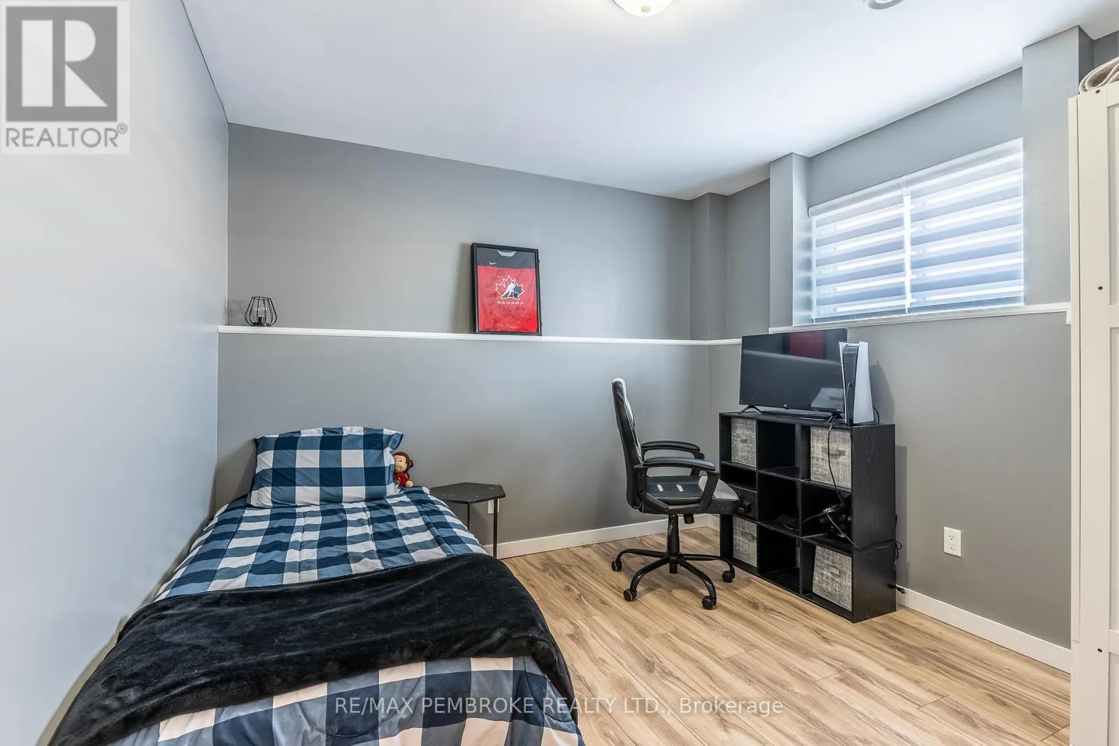 Cross Streets: Riverstone Tr and Limestone Tr. ** Directions: Laurentian Dr to Limestone Tr, then right onto Riverstone OR or Petawawa Blvd to Limestone Trail, then left onto Boulder Creek and right onto Riverstone. Welcome to this bright and welcoming home, ideally situated close to schools, parks, shopping, and more. You will appreciate the lovely curb appeal with gardens, and once inside, you will find a spacious and functional foyer with access to the attached garage. The upper level offers an open-concept layout that is perfect for both everyday living and entertaining, and is complete with elegant light fixtures. The living room flows seamlessly into the dining and kitchen areas, where you will find additional prep space and seating at the peninsula, ample cabinetry, and a sliding door leading outside to the 12'x14' composite deck with access to the fenced yard. This is the ideal spot to host summer barbecues or have your morning coffee with the sunrise. The main level includes a primary bedroom, which you enter through French doors, two additional bedrooms and a full bathroom with a convenient linen closet. The lower level features two more gathering spaces offering plenty of flexibility for a home office space, play area or gym. A fourth bedroom and a second full bathroom adorn this level. If you are looking for additional space for your outdoor equipment or a work kit, there is a bonus storage room approximately 6'x10' with shelves. Once outside, you will enjoy the fenced backyard, complete with a shed for quick and easy storage of your garden tools. Perfectly located in the desirable Limestone Trail subdivision, this home is a fantastic opportunity for anyone looking for a great balance of space, comfort, and convenience. (id:27476)