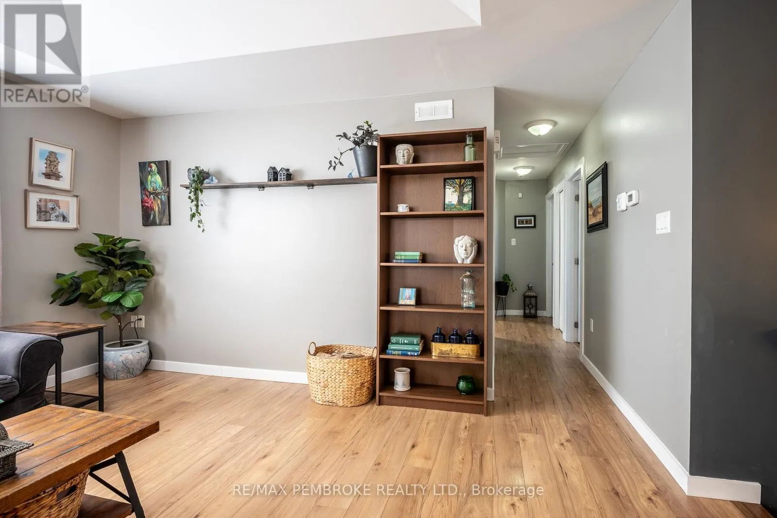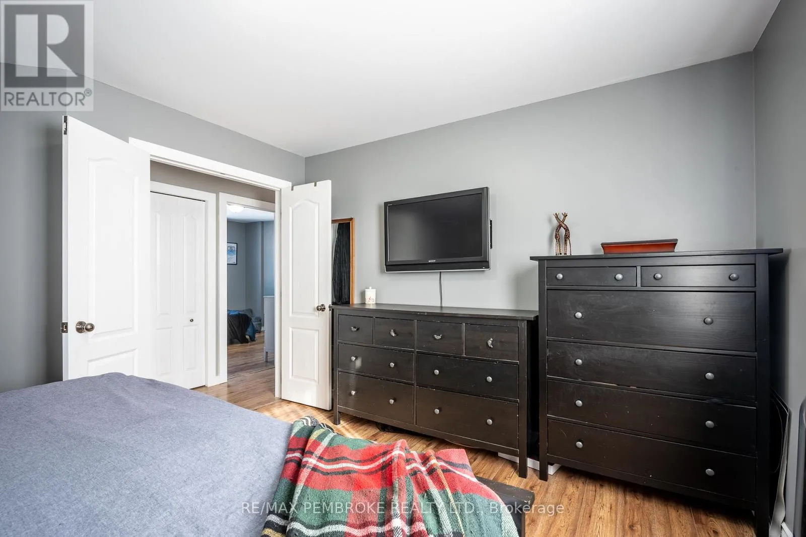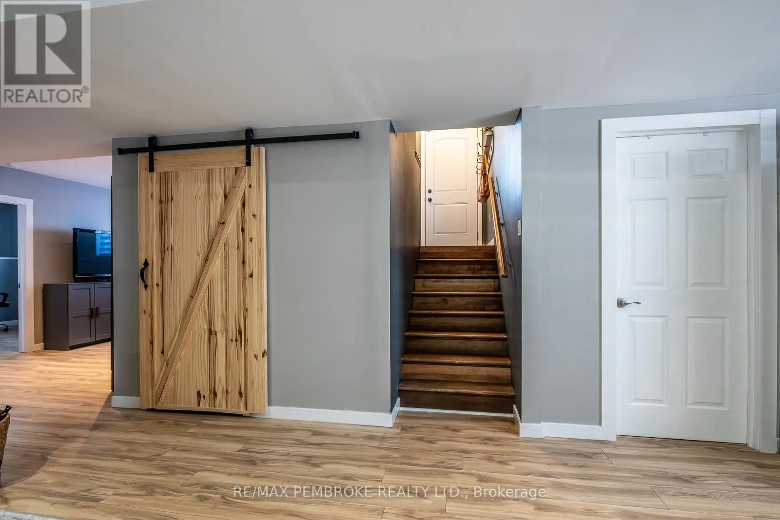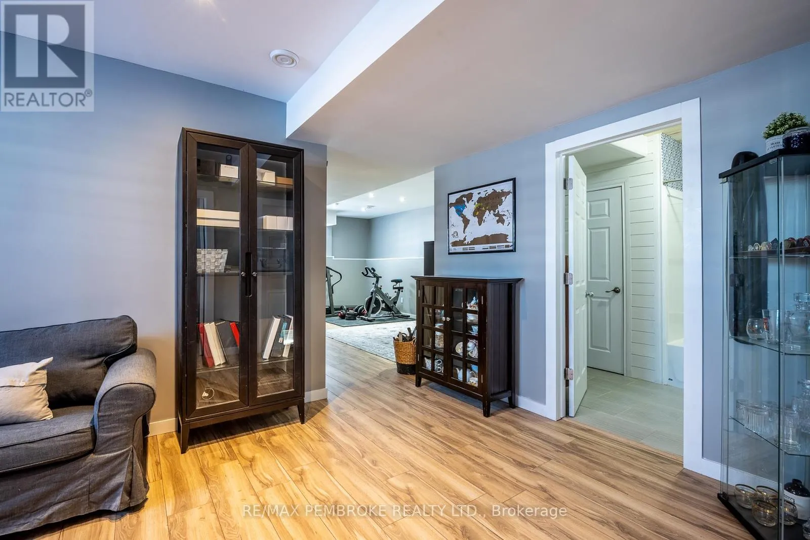 Cross Streets: Riverstone Tr and Limestone Tr. ** Directions: Laurentian Dr to Limestone Tr, then right onto Riverstone OR or Petawawa Blvd to Limestone Trail, then left onto Boulder Creek and right onto Riverstone. Welcome to this bright and welcoming home, ideally situated close to schools, parks, shopping, and more. You will appreciate the lovely curb appeal with gardens, and once inside, you will find a spacious and functional foyer with access to the attached garage. The upper level offers an open-concept layout that is perfect for both everyday living and entertaining, and is complete with elegant light fixtures. The living room flows seamlessly into the dining and kitchen areas, where you will find additional prep space and seating at the peninsula, ample cabinetry, and a sliding door leading outside to the 12'x14' composite deck with access to the fenced yard. This is the ideal spot to host summer barbecues or have your morning coffee with the sunrise. The main level includes a primary bedroom, which you enter through French doors, two additional bedrooms and a full bathroom with a convenient linen closet. The lower level features two more gathering spaces offering plenty of flexibility for a home office space, play area or gym. A fourth bedroom and a second full bathroom adorn this level. If you are looking for additional space for your outdoor equipment or a work kit, there is a bonus storage room approximately 6'x10' with shelves. Once outside, you will enjoy the fenced backyard, complete with a shed for quick and easy storage of your garden tools. Perfectly located in the desirable Limestone Trail subdivision, this home is a fantastic opportunity for anyone looking for a great balance of space, comfort, and convenience. (id:27476)