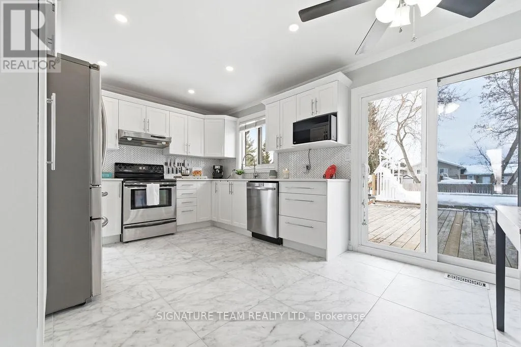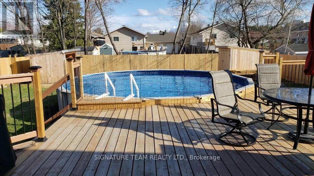 Cross Streets: Selkirk St and Russell St. ** Directions: Selkirk Street to Russel St. A lovely, well-maintained 1989 split-level home located in a quiet neighbourhood on a large, fully fenced lot. Offering approximately 975 sq ft above grade with 3 bedrooms/1bath, this property has been extensively updated and shows pride of ownership throughout. The main level features a bright living room [currently used as a home office], a beautifully renovated kitchen [3 years ago by Paramount Kitchens], and a dining area with walk-out access to a large deck [6yrs] overlooking the backyard. The upper level includes three well-sized bedrooms and a spacious 5-piece bathroom with double vanity and linen storage. The lower-level offers great natural light and includes a wonderful rec room with a wood-burning stove [2026 WETT certified] with a brick hearth/surround, a gym area ideal for an office/ playroom, plus additional storage cubby [the size of the main level]. Exterior features include a wonderful, fully-fenced yard, two garden sheds, above-ground salt-water pool [2018], hot tub [2019], and dedicated fire-pit area. Windows and exterior doors have been updated [2012], all interior doors have been replaced, and the home has been professionally painted throughout. Gas: ~150/m [av.], Elec: ~$150/m [av.] Move-in ready with thoughtful upgrades inside and out. Truly a wonderful home! (id:27476)