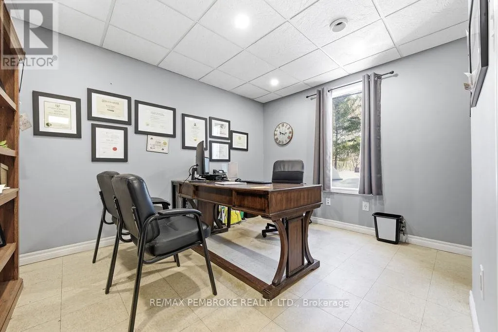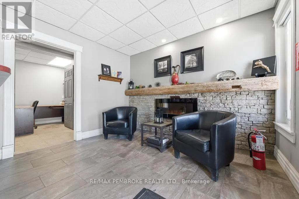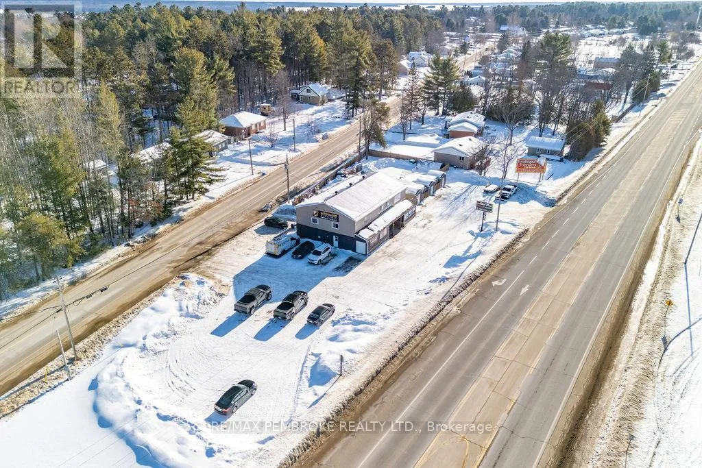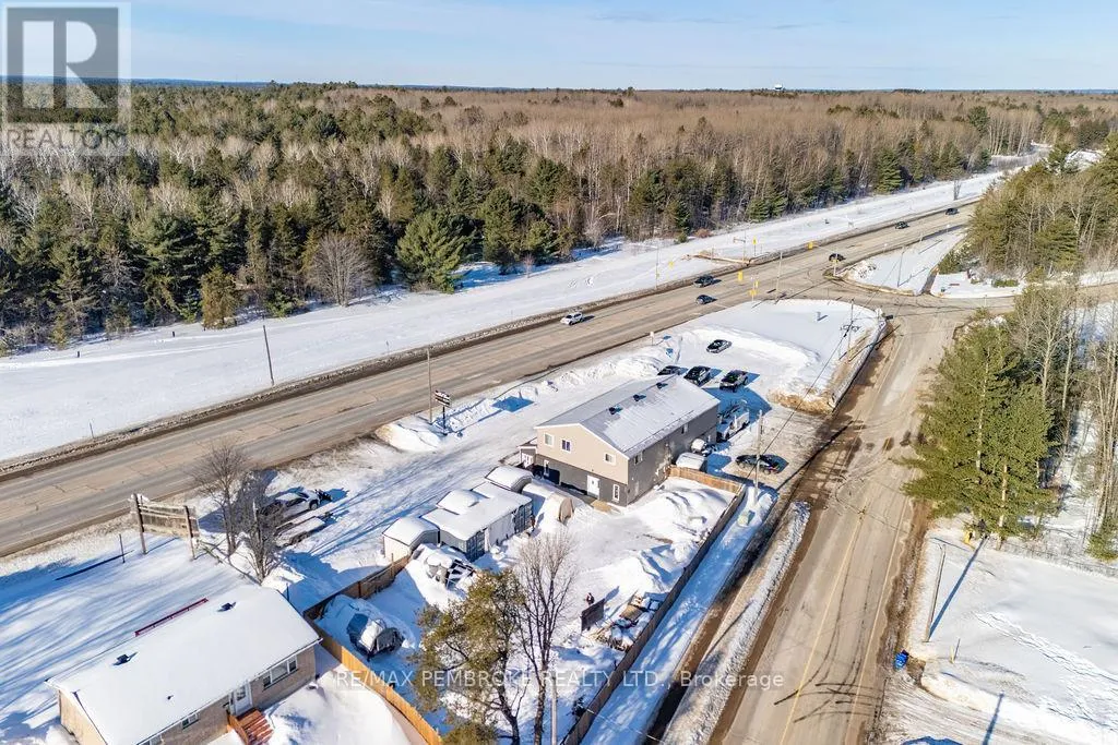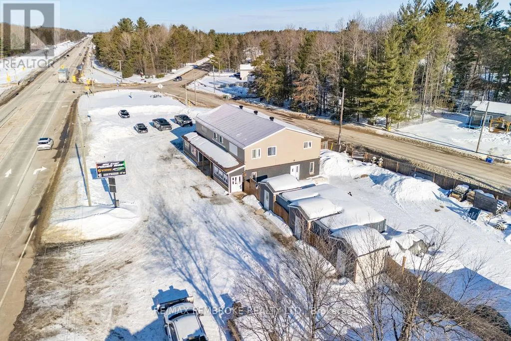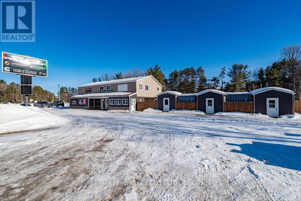 Cross Streets: Petawawa Bldv and Laurentian Dr. ** Directions: Intersection of Petawawa Bldv, Laurentian Dr and Schwanz Rd. Prime Mixed-Use Investment Opportunity on Petawawa Boulevard. Position your business and portfolio for success with this modern two-story commercial/residential building offering over 4,300 sq. ft. of versatile space in one of Petawawa's highest-traffic, highest visibility locations. With up to 20,000 vehicles passing daily and just minutes from Garrison Petawawa, this property provides outstanding exposure and long-term demand-an excellent opportunity for business owners looking to transition from tenant to owner while building equity. The 2,500 sq. ft. main floor commercial space is configured to accommodate two separate retail or office tenancies, allowing for flexible leasing strategies and diversified income. Based on market rents of estimated $15/sq. ft., the commercial component presents a projected income potential of about $37,500 annually, making this an attractive option for investors seeking strong returns. Occupy one unit and lease the other, or lease both for maximum cash flow. Upstairs, the spacious 5-bedroom, 2-bath residential unit is currently rented at $2,800/month ($33,600 annually), providing immediate, stable income. The combination of residential and commercial revenue streams offers built-in cash flow support and enhanced investment stability, with the option for owner occupancy above your business if desired. Surrounded by schools, parks, shopping, churches, and extensive walking/cycling trails, and with Highway 417 less than five minutes away, the property benefits from excellent accessibility and strong tenant appeal within a stable, growing community. This high-visibility retail/residential asset offers multiple income streams, projected strong returns, and modern construction in a proven commercial corridor, an exceptional opportunity for investors and owner-operators alike. (id:27476)