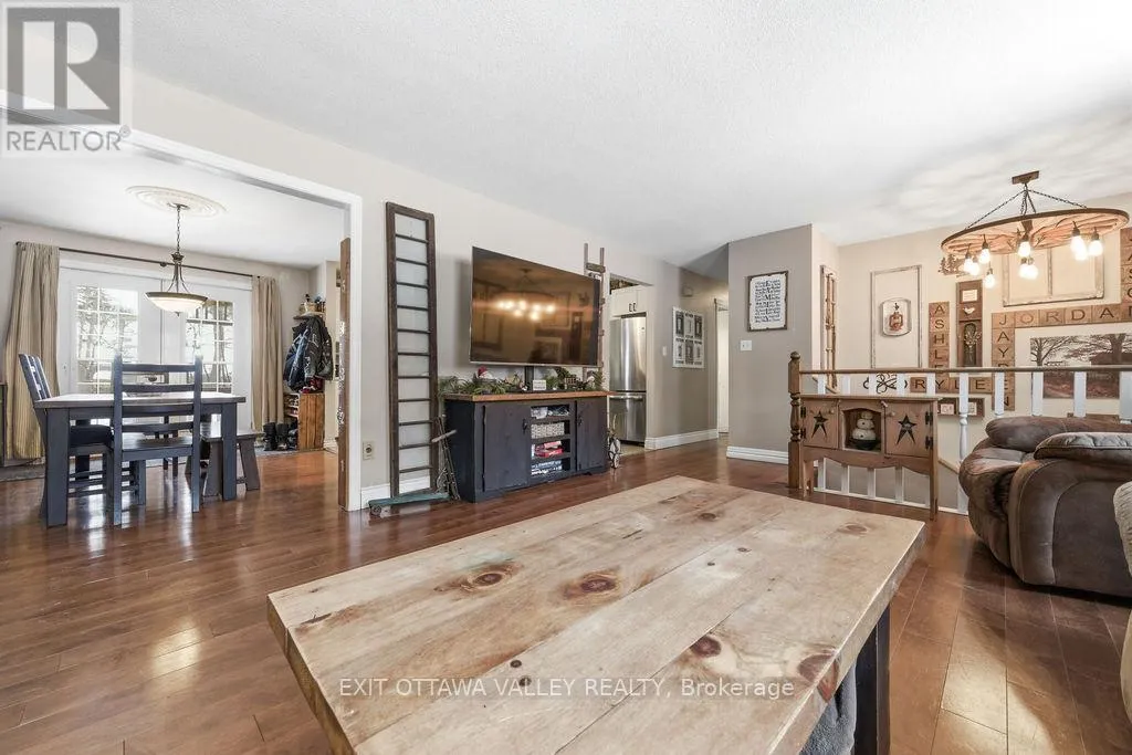 Cross Streets: Country Lane. ** Directions: Petawawa Blvd to Gutzman Road, turn right on Heritage Drive and follow to #16 on the right. Welcome to 16 Heritage Drive - a turnkey family home nestled in a highly sought-after, family-friendly neighbourhood. The bright, newly renovated kitchen features stainless steel appliances and modern finishes, flowing seamlessly into the dining room and spacious living room. Patio doors fill the space with natural light and provide direct access to the deck and backyard making entertaining effortless. The main level also offers a full bathroom with a jetted tub and three well-appointed bedrooms, including a generous primary suite complete with it's own private ensuite. The fully finished lower level expands your living space with a large family room, perfect for cozy movie nights or a dedicated play area for the kids. This level also includes an oversized fourth bedroom, a convenient three-piece bathroom, and the laundry room. Step outside to enjoy the private backyard surrounded by mature trees and fully fenced for peace of mind. Whether you're relaxing on the deck or cooling off in the above-ground pool, this outdoor space is designed for making lasting memories. Additional highlights include an in-ground sprinkler system in the front yard, paved driveway, and double-car garage with ample storage. Conveniently located just a short commute to CFB Petawawa, this home checks all the boxes for growing families and professionals alike. (id:27476)