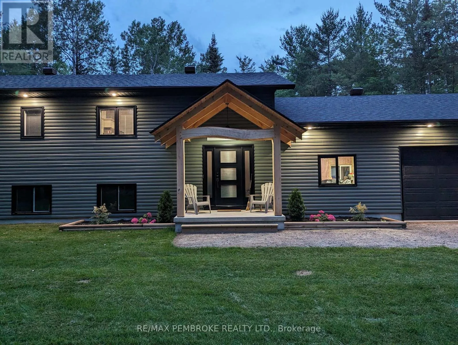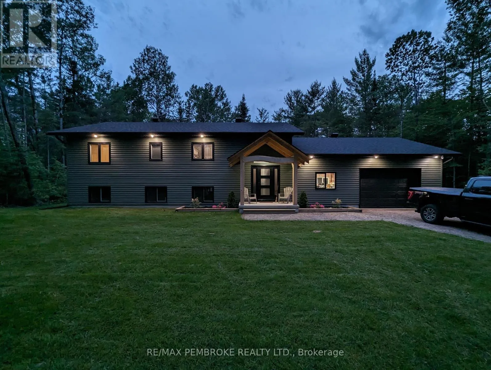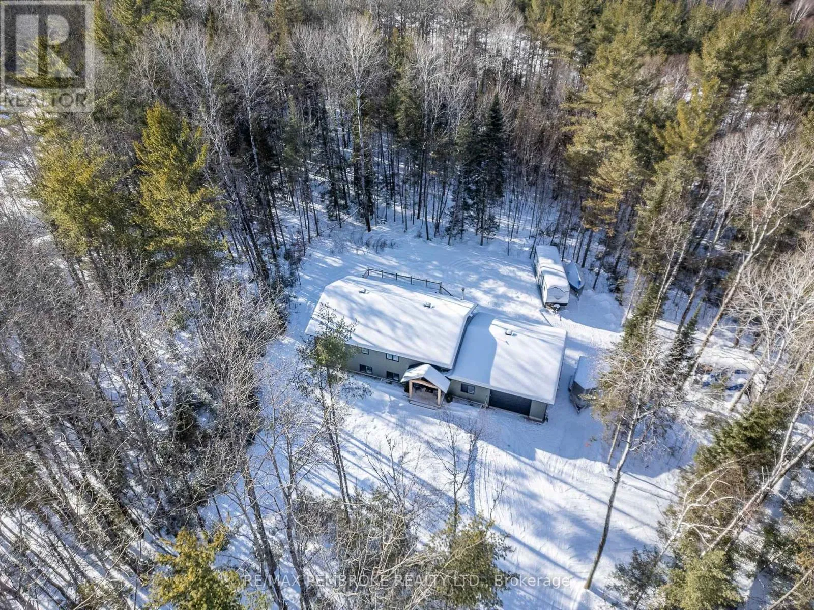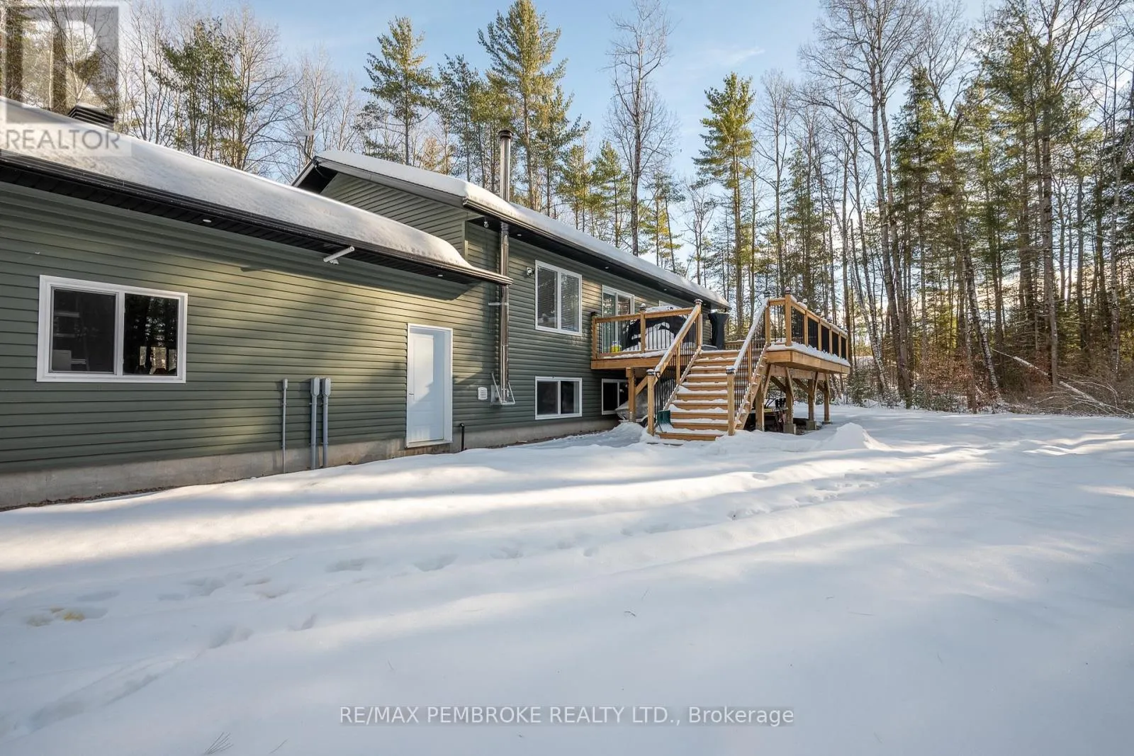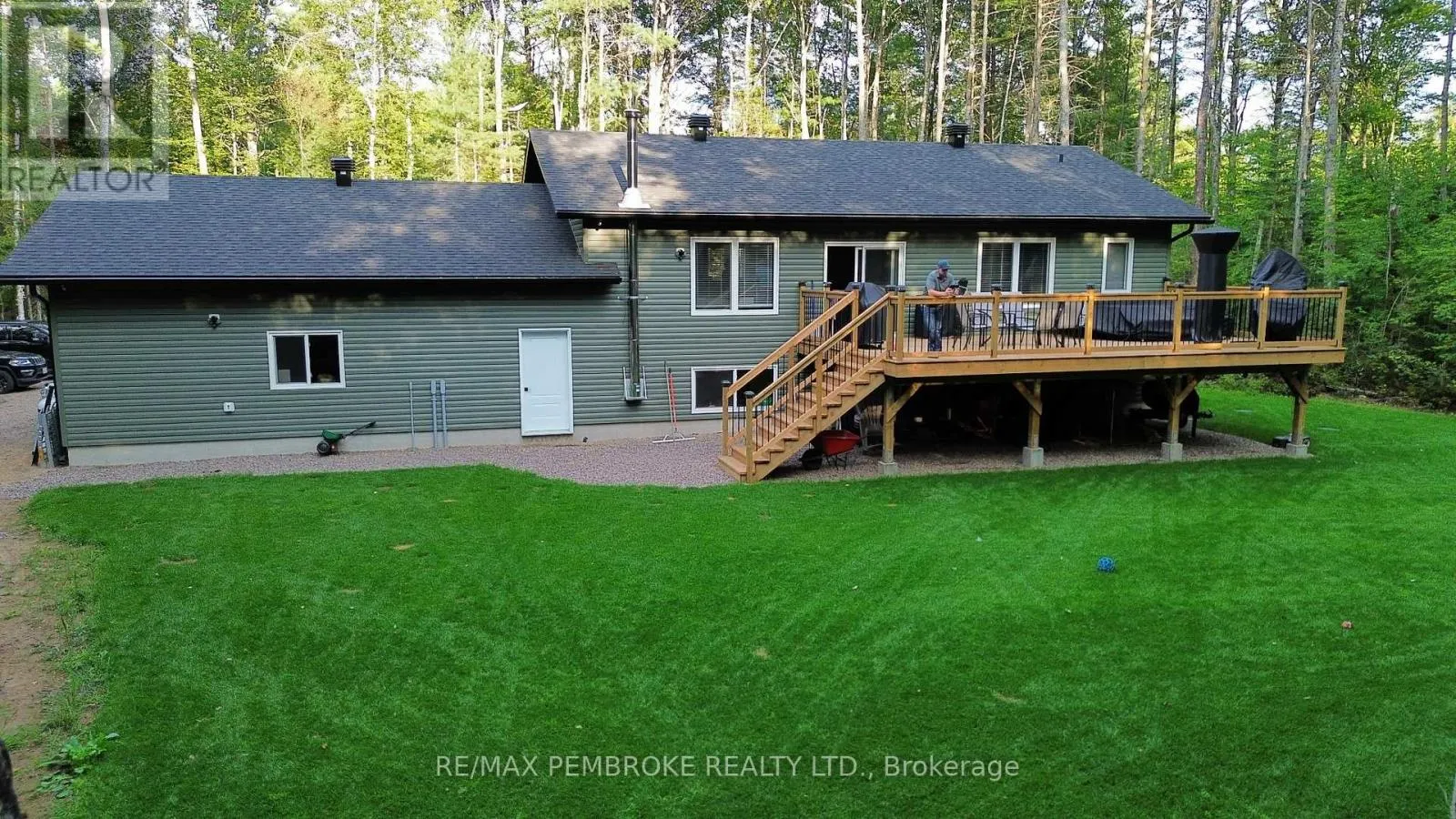 Cross Streets: Rantz and Murphy. ** Directions: Murphy Road South of Highway 17, first right onto Rantz. Beautifully appointed raised bungalow built by respected local builder, Dugan Hawkins, at 13 Rantz Road, where privacy, space, and convenience come together in one of Petawawa's most desirable upscale rural settings. Nestled on a 1.66-acre wooded lot, a peaceful retreat surrounded by nature while remaining close to town amenities. Outdoor enthusiasts will appreciate the quick drive to the boat launch at beautiful Black Bay on the Petawawa River. Vaulted ceilings, abundance of south-facing windows, patio doors all provide for great amounts of natural light to pour through the main living spaces. At the heart of the home is a remarkably spacious kitchen, it's U-shaped layout offers extensive modern cabinetry and miles of granite countertops, the long peninsula with overhang provides the perfect gathering place for casual meals, morning coffee, or conversation while meals are prepared. All four bedrooms offer comfortable proportions and a sense of space, ensuring everyone has room to unwind. Primary suite easily accommodates a king-size bed, features a walk-in closet along with a well-appointed 3-piece ensuite with shower. Fully finished lower level features a spacious recroom, anchored by a cozy wood stove and offers endless possibilities for relaxation & entertaining. Two of the four generously sized bedrooms are located on this level, including one currently serving as an ideal home office. Newly completed third bathroom showcases a striking glass-enclosed tile shower with elegant, spa-inspired finishes. Step outside to the expansive 16'x30' deck, accessed directly from the dining room, perfect for alfresco dining or relaxing while overlooking the tranquil wooded backyard and the lush green lawn with irrigation system. Attached 28'x30' garage is a standout feature-fully insulated and heated with its own propane furnace, creating a comfortable year-round workshop or hobby space. Grown-up Toy parking is plentiful as the driveway extends beyond the rear of garage! (id:27476)