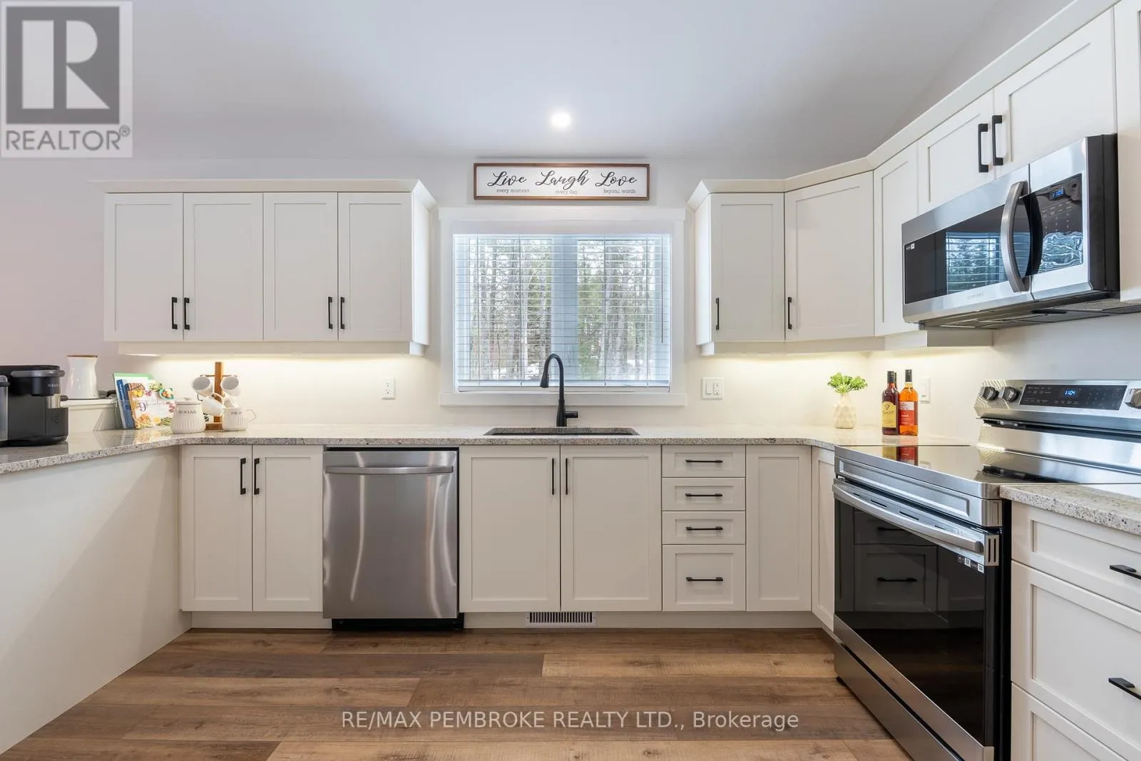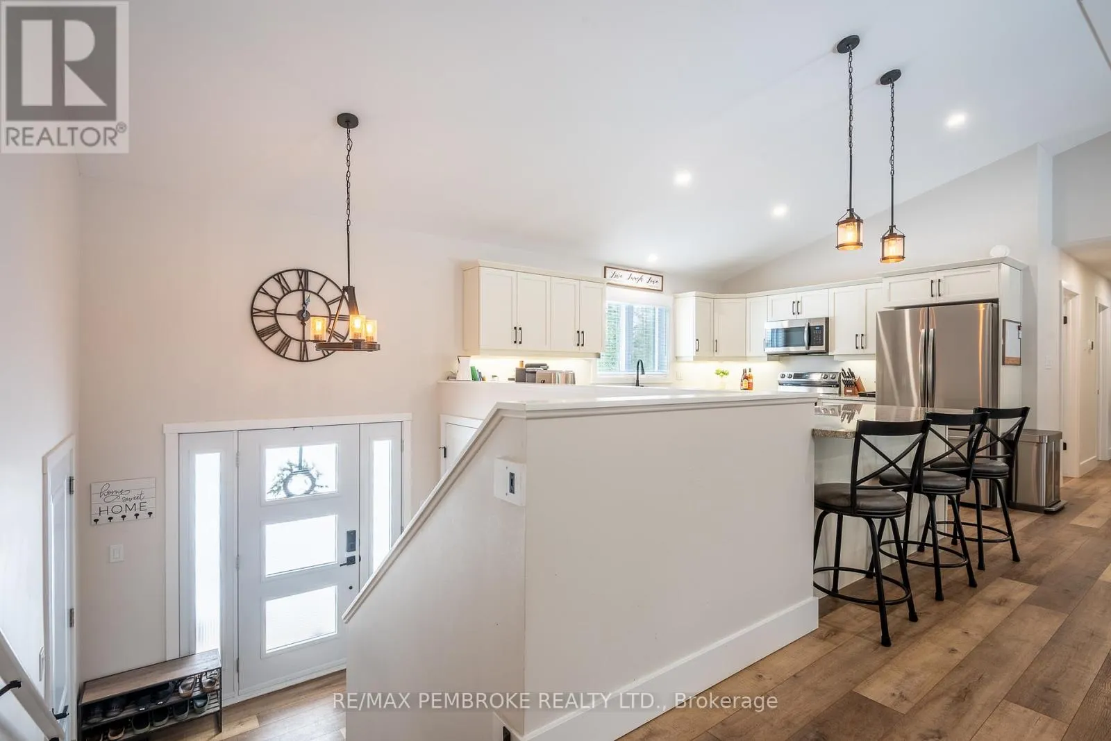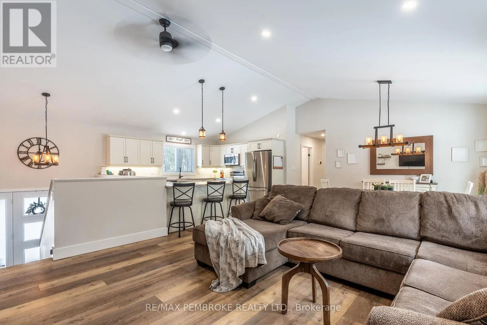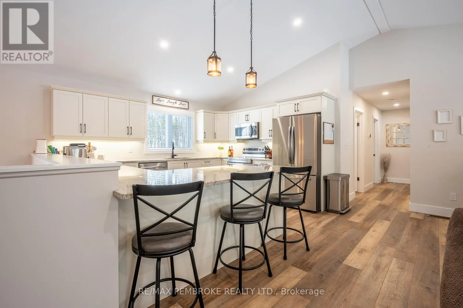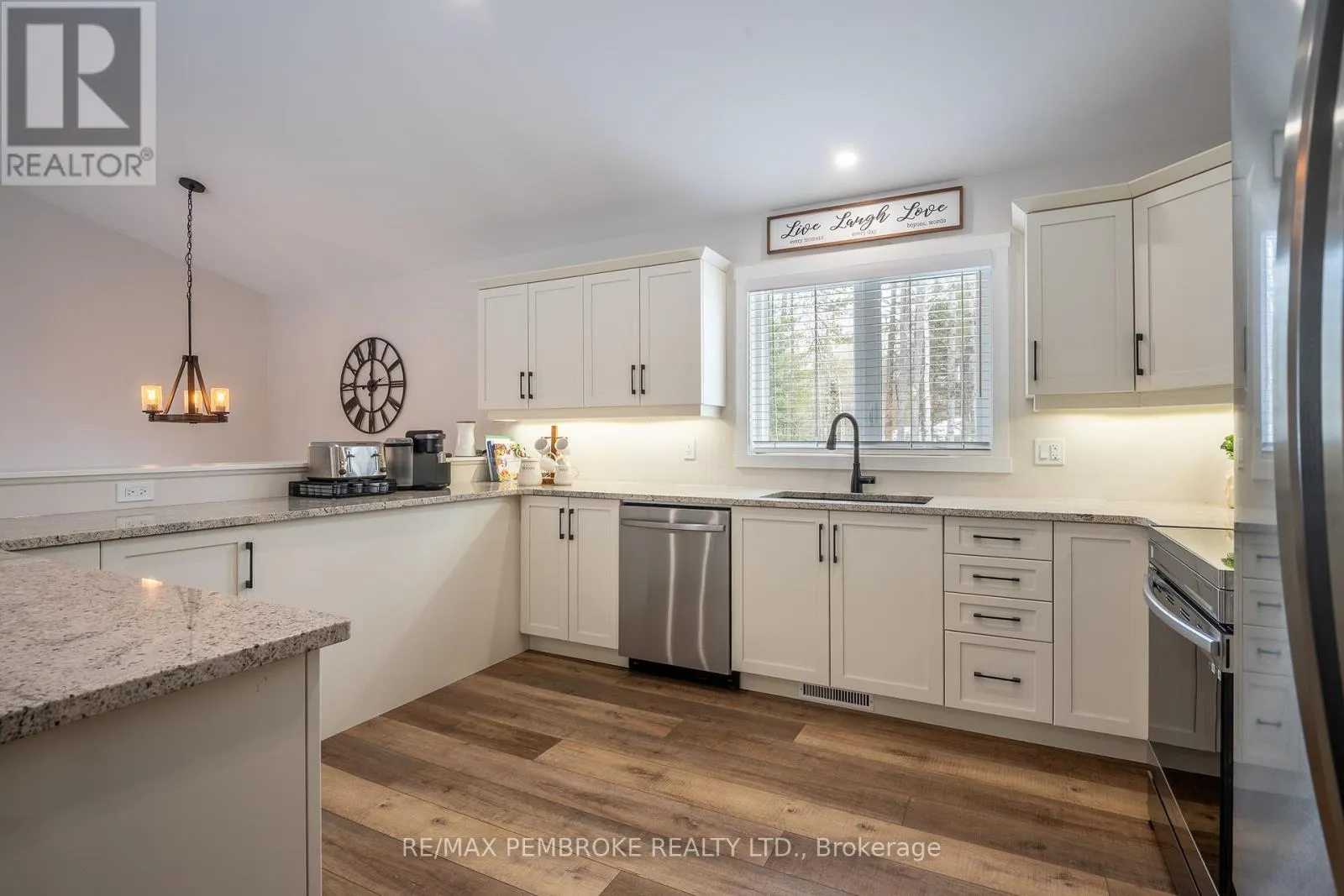 Cross Streets: Rantz and Murphy. ** Directions: Murphy Road South of Highway 17, first right onto Rantz. Beautifully appointed raised bungalow built by respected local builder, Dugan Hawkins, at 13 Rantz Road, where privacy, space, and convenience come together in one of Petawawa's most desirable upscale rural settings. Nestled on a 1.66-acre wooded lot, a peaceful retreat surrounded by nature while remaining close to town amenities. Outdoor enthusiasts will appreciate the quick drive to the boat launch at beautiful Black Bay on the Petawawa River. Vaulted ceilings, abundance of south-facing windows, patio doors all provide for great amounts of natural light to pour through the main living spaces. At the heart of the home is a remarkably spacious kitchen, it's U-shaped layout offers extensive modern cabinetry and miles of granite countertops, the long peninsula with overhang provides the perfect gathering place for casual meals, morning coffee, or conversation while meals are prepared. All four bedrooms offer comfortable proportions and a sense of space, ensuring everyone has room to unwind. Primary suite easily accommodates a king-size bed, features a walk-in closet along with a well-appointed 3-piece ensuite with shower. Fully finished lower level features a spacious recroom, anchored by a cozy wood stove and offers endless possibilities for relaxation & entertaining. Two of the four generously sized bedrooms are located on this level, including one currently serving as an ideal home office. Newly completed third bathroom showcases a striking glass-enclosed tile shower with elegant, spa-inspired finishes. Step outside to the expansive 16'x30' deck, accessed directly from the dining room, perfect for alfresco dining or relaxing while overlooking the tranquil wooded backyard and the lush green lawn with irrigation system. Attached 28'x30' garage is a standout feature-fully insulated and heated with its own propane furnace, creating a comfortable year-round workshop or hobby space. Grown-up Toy parking is plentiful as the driveway extends beyond the rear of garage! (id:27476)