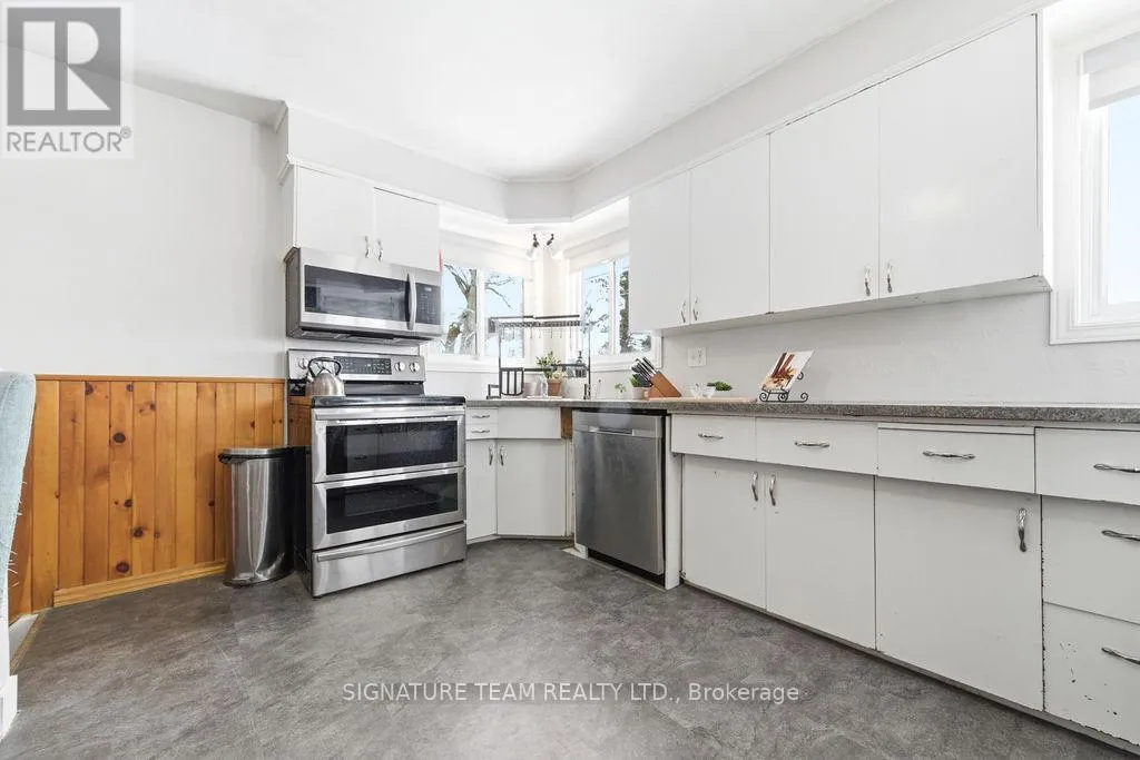 Cross Streets: Laurentian Drive and Civic Centre Rd. ** Directions: Civic Centre Rd - Left on Laurentian Dr (Across from Mount Molson Dairy). LOCATION, SPACE & OTTAWA RIVER VIEWS! Welcome to this amazing 3+2bed, 2bath home sitting on a large lot with a gorgeous, private fully fenced backyard and views of the Petawawa Terrance and the river below. This well-built bungalow offers a spacious main floor layout with an original kitchen [waiting for your personal updates] with eat-in area, a bright living rm [w original hardwood flrs, crown moulding, picture-window w spectacular views], large primary bedroom [w corner windows and views of the backyard], spacious 2nd bed [w corner windows] and modest 3rd bed [w decorative paneling] and recently beautifully remodelled 5-piece bathroom [includes a tiled corner shower, freestanding soaker tub, double vanity, and radiant in-floor heating under tiled floors]. There are two entrances to the home, including a practical breezeway/mudroom [w wood ceiling] with access to the backyard and the single attached garage, as well as a front entrance [w closet]. The finished lower level has wood-panelled drop ceilings with 2 bright & spacious bedrooms, cozy rec room w bar nook, 3pc bath [w tiled shower], walk-in pantry, finish under-the-stairs cubby [great for a child's nook] and unfinished laundry/utility room. Now.. the yard! View the photos and see for yourself what this spectacular 'PARK-LIKE' setting with excellent privacy has to offer, including storage shed, play structure, sizeable deck, stone tile patio excellent privacy and space. This house is unique, spacious and definitely one-of-a-kind in Petawawa! Septic 2018, shingles 2019, newer fencing/deck, eavestroughs. Additional Feature Sheet available for more information. (id:27476)