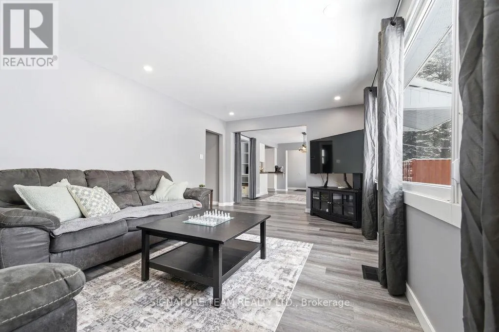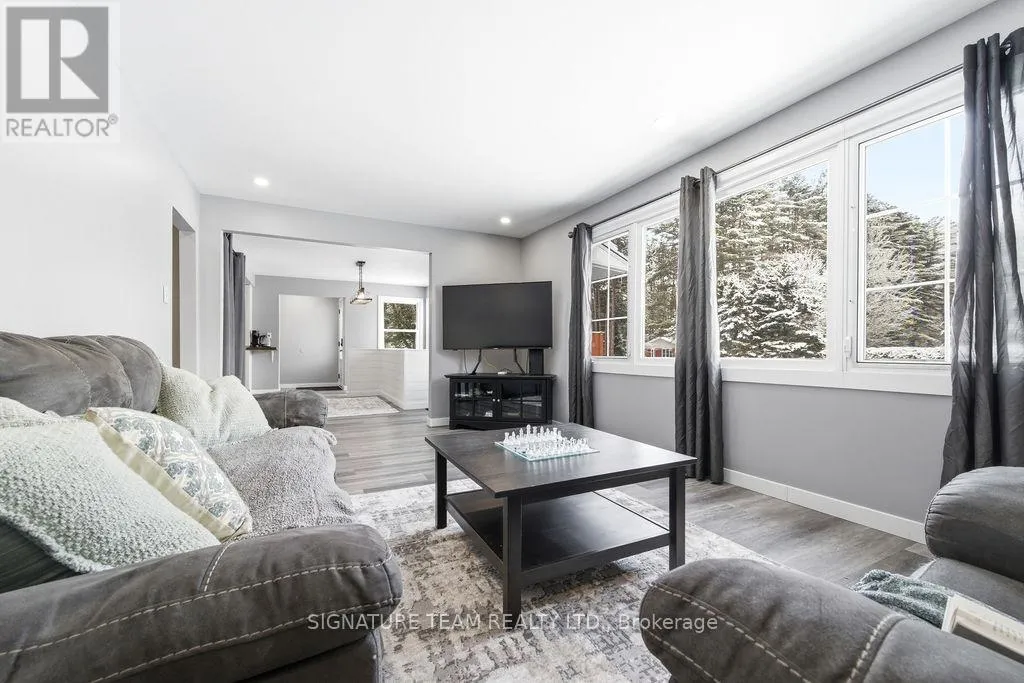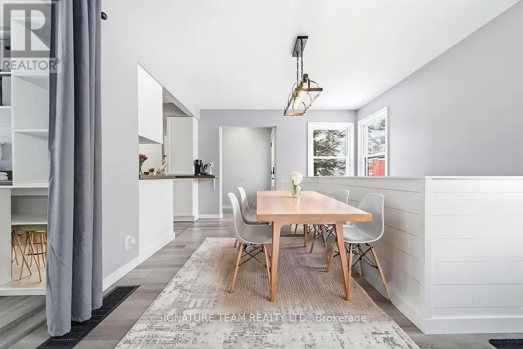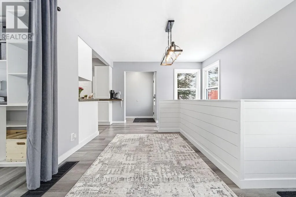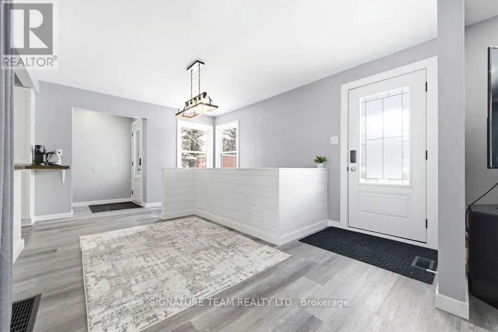 Cross Streets: Airport Rd and Doran St. ** Directions: Petawawa Blvd to Airport Rd. EXTENSIVELY RENOVATED THROUGHOUT, this superb 3+2 bedroom, 2 bath bungalow sits on the outskirts of Petawawa, just minutes to Garrison Petawawa. Practical vinyl flooring throughout provides a modern look and excellent durability for everyday living. The main level features a remodelled kitchen where a wall was removed to create a more open layout. Updates include new cabinetry [from Sylvester Kitchen & Bath], concrete countertops, a pantry, and a built-in island in place of the former wall. The original dining area has been converted into a breakfast nook suitable for a small table. The bright and spacious living room includes a large picture window and pot lighting. There are three bedrooms on the main floor, one with a walk-in closet, along with a modern 4-piece bathroom. The large main floor laundry room offers ample shelving, a walk-out to the back deck. Plus, there is an additional walk-in closet/pantry, and access to the smaller of the two basements via a staircase leading to the utility room, and a room previously set up as a man-cave with small built-in bar. This room would be ideal for a home-based business/office. A second rebuilt staircase where added corner windows bring in significant natural light, leads to the main lower level. The mostly finished basement (currently with painted concrete floors) includes two spacious bedrooms, both with closets and egress windows, 3pc bath (w fiberglass shower) as well as a large open recreation space, that could easily accommodate a playroom, office, or home-gym area. This home sits on a lot with plenty of space for recreational storage. The fully fenced back/side yard includes an enclosed side section for dogs and backs onto a neighbouring treed lot w no views of neighbours behind. There is also an attached single garage. An additional Spec Sheet is available with further details on the property. 2 basements; original basement [utilities] + newly installed basement 2022. (id:27476)