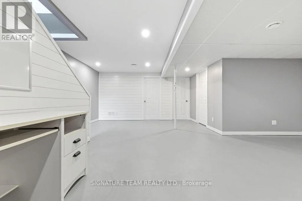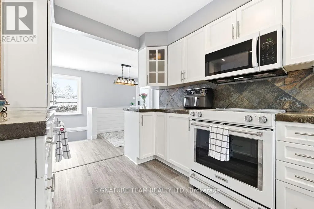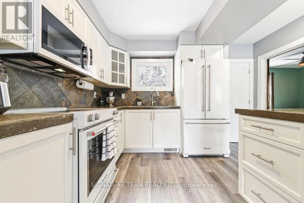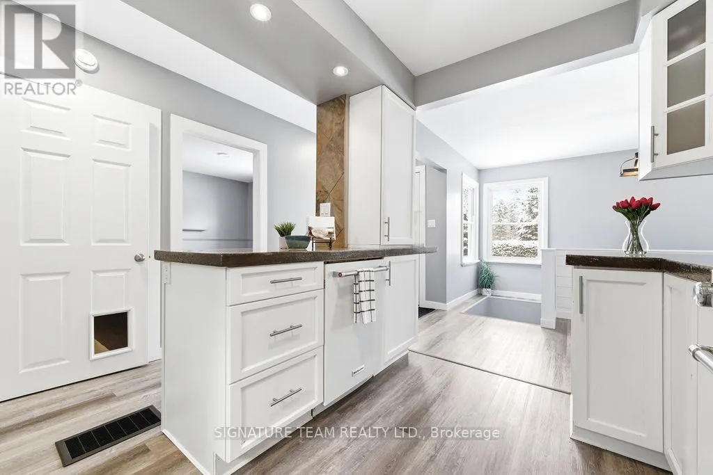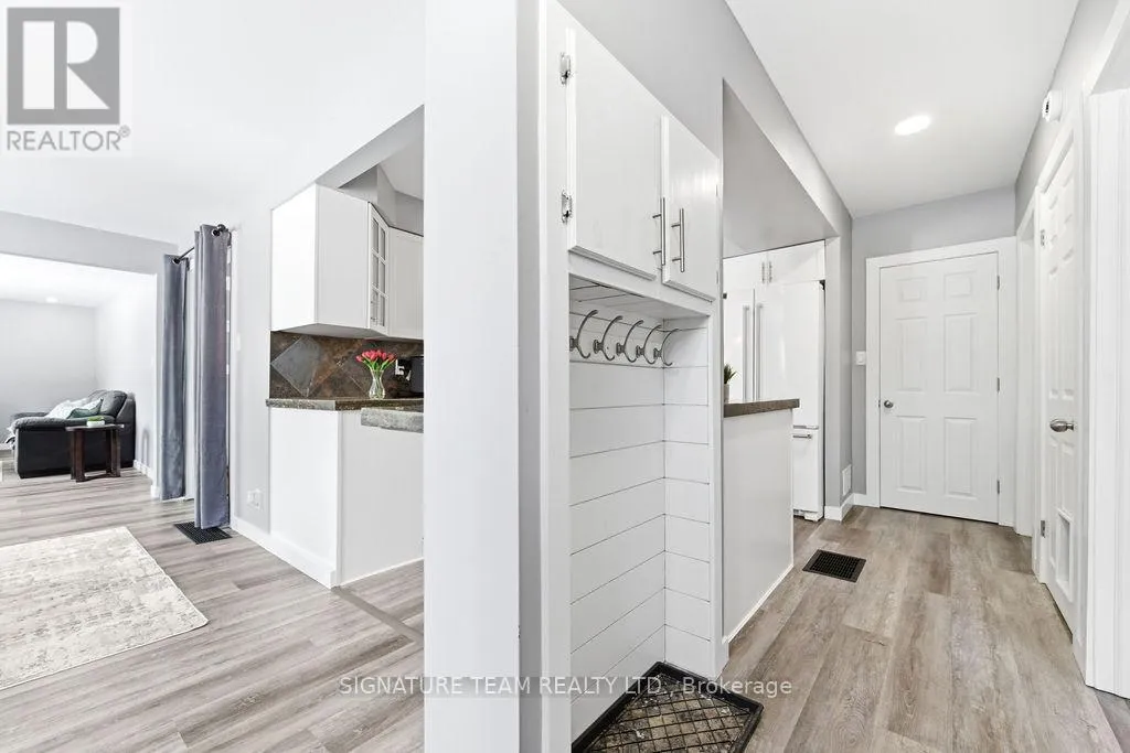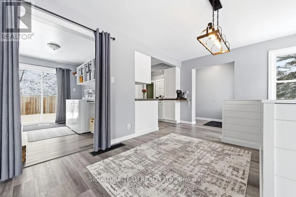 Cross Streets: Airport Rd and Doran St. ** Directions: Petawawa Blvd to Airport Rd. EXTENSIVELY RENOVATED THROUGHOUT, this superb 3+2 bedroom, 2 bath bungalow sits on the outskirts of Petawawa, just minutes to Garrison Petawawa. Practical vinyl flooring throughout provides a modern look and excellent durability for everyday living. The main level features a remodelled kitchen where a wall was removed to create a more open layout. Updates include new cabinetry [from Sylvester Kitchen & Bath], concrete countertops, a pantry, and a built-in island in place of the former wall. The original dining area has been converted into a breakfast nook suitable for a small table. The bright and spacious living room includes a large picture window and pot lighting. There are three bedrooms on the main floor, one with a walk-in closet, along with a modern 4-piece bathroom. The large main floor laundry room offers ample shelving, a walk-out to the back deck. Plus, there is an additional walk-in closet/pantry, and access to the smaller of the two basements via a staircase leading to the utility room, and a room previously set up as a man-cave with small built-in bar. This room would be ideal for a home-based business/office. A second rebuilt staircase where added corner windows bring in significant natural light, leads to the main lower level. The mostly finished basement (currently with painted concrete floors) includes two spacious bedrooms, both with closets and egress windows, 3pc bath (w fiberglass shower) as well as a large open recreation space, that could easily accommodate a playroom, office, or home-gym area. This home sits on a lot with plenty of space for recreational storage. The fully fenced back/side yard includes an enclosed side section for dogs and backs onto a neighbouring treed lot w no views of neighbours behind. There is also an attached single garage. An additional Spec Sheet is available with further details on the property. 2 basements; original basement [utilities] + newly installed basement 2022. (id:27476)