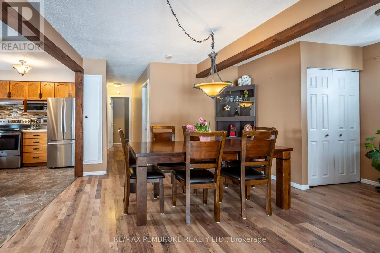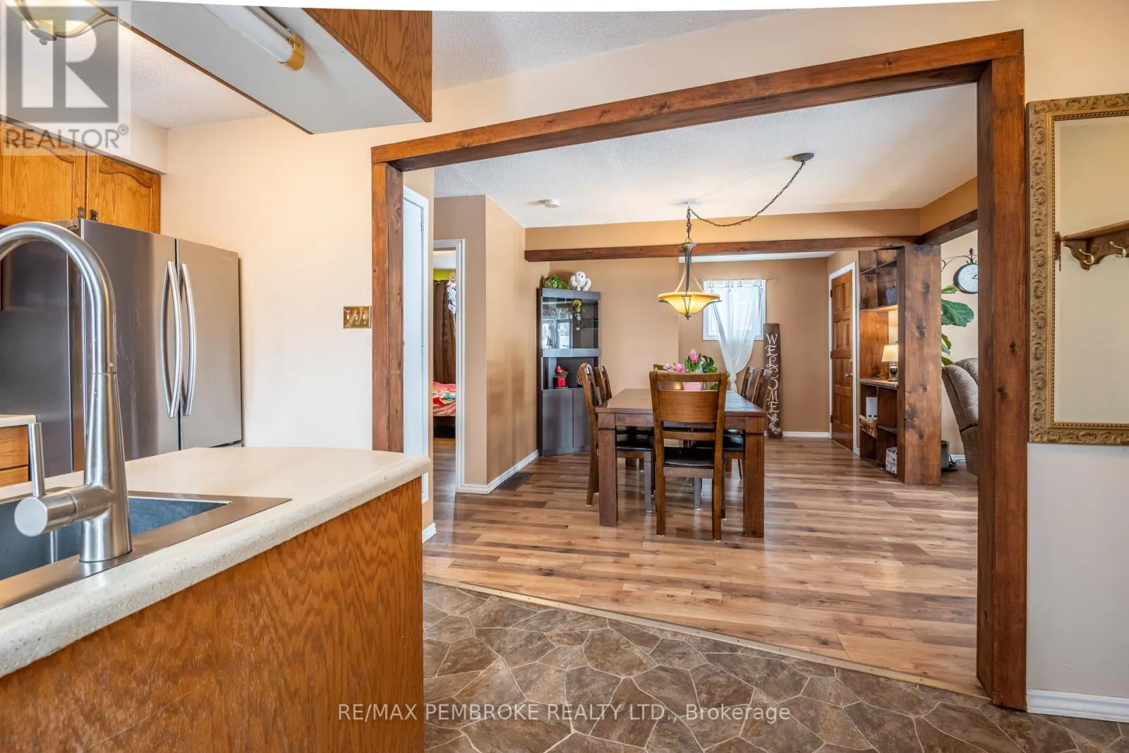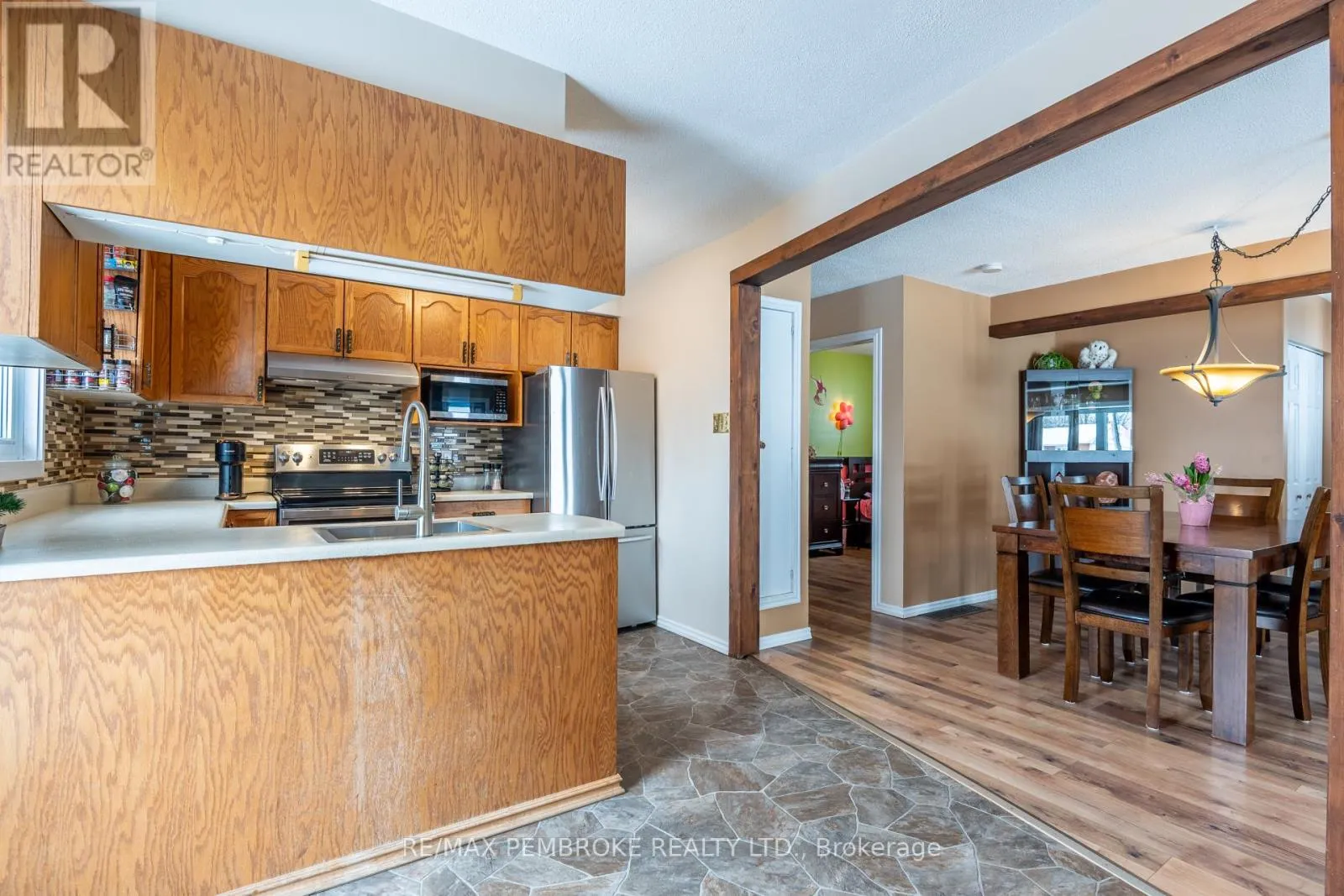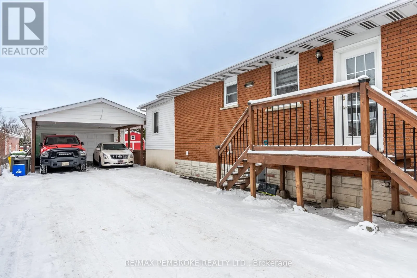 Cross Streets: HERMAN AND SELKIRK. ** Directions: DORAN TO HERMAN TO SELKIRK. Set in a family-friendly pocket of Petawawa close to schools, playgrounds, and everyday amenities, this well-appointed home delivers the space, flexibility, and lifestyle buyers are searching for..Step inside to a welcoming, generously sized foyer that makes daily comings and goings effortless. The main level opens into a larger-than-average dining and living space with big beautiful bay window providing for an airy, open-concept feel-ideal for hosting, relaxing, and gathering with family and friends. A Kitchen equipped with all appliances, and plenty of counter and storage space! Three main-floor bedrooms offer versatility, including one currently styled as a bright home office with direct access to the rear deck-an inspiring work-from-home setup or easy guest space.The main bath is a standout with a deep jet tub and separate walk-in shower, creating a spa-like retreat at the end of the day. Downstairs, the expansive recroom sets the tone for relaxed evenings and entertaining alike, featuring a gas fireplace and a bar area ready for movie nights, game days, or casual get-togethers. There's also excellent potential here to add a fourth bedroom if desired. A convenient lower-level 3-piece bath with standalone shower adds everyday function and flexibility.Outside, the fully fenced backyard offers privacy and room to unwind on the spacious deck, while the heated 22' x 24' garage is a dream for hobbyists, tinkerers, or extra storage-complemented by a double covered carport for everyday convenience. A practical layout, flexible living space, and a location that keeps you connected to everything Petawawa has to offer-this one checks the boxes. Enjoy quick access to the community's renowned walking and cycling trail network-perfect for evening strolls, weekend rides, and making the most of the Ottawa Valley outdoors. (id:27476)