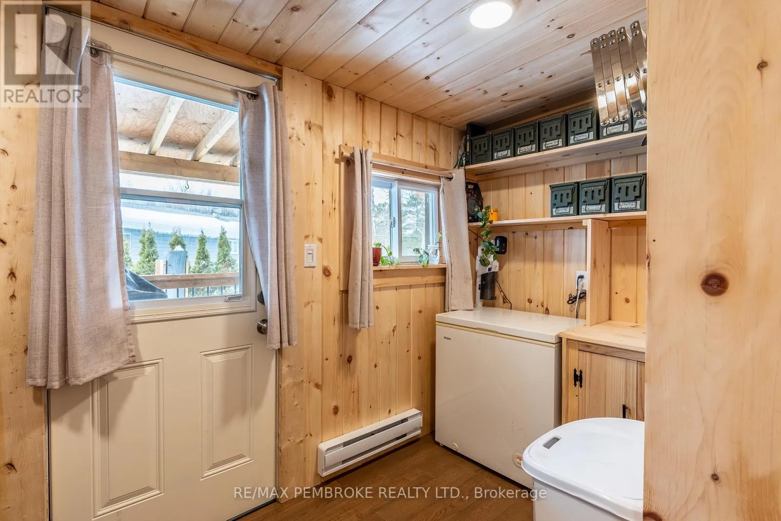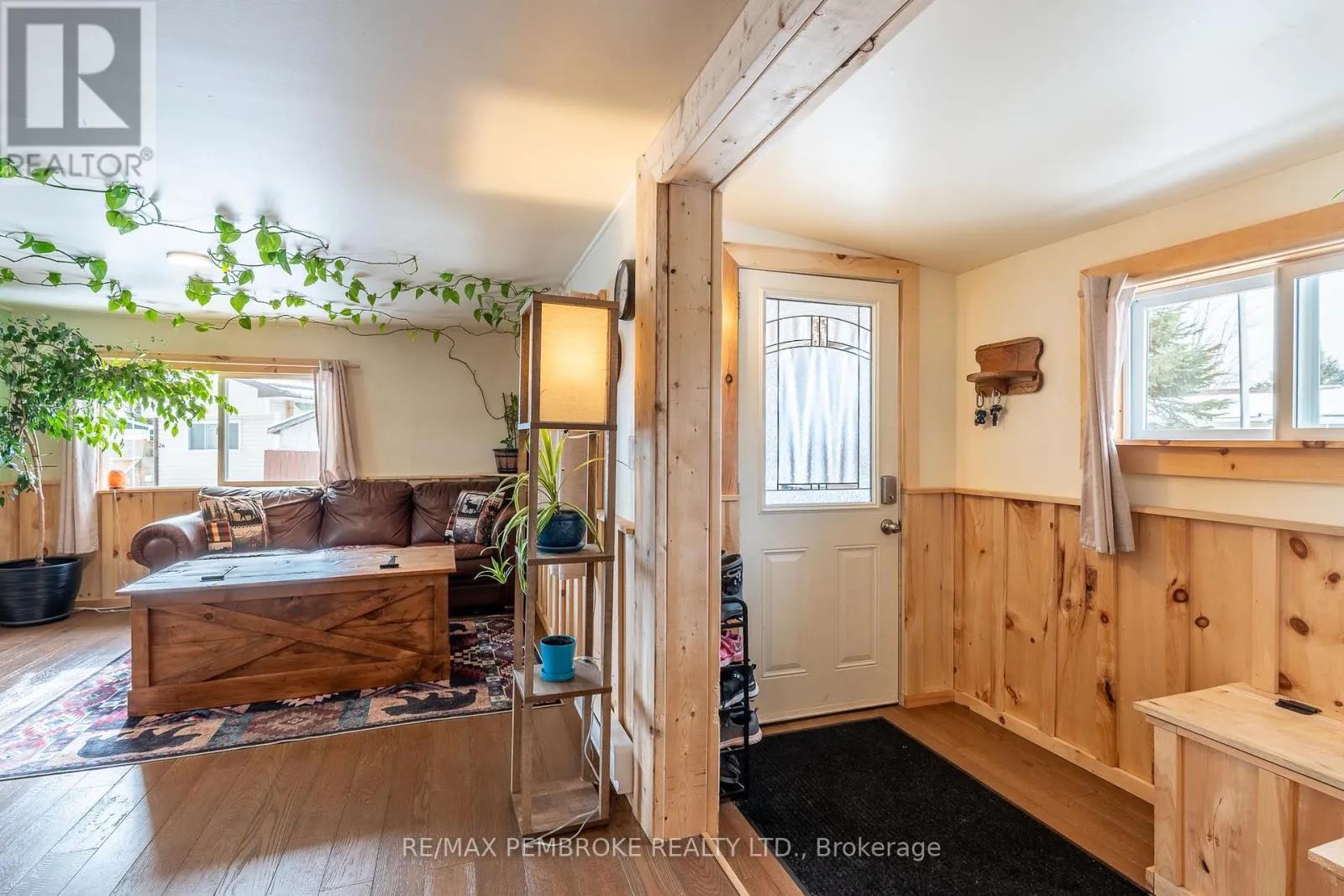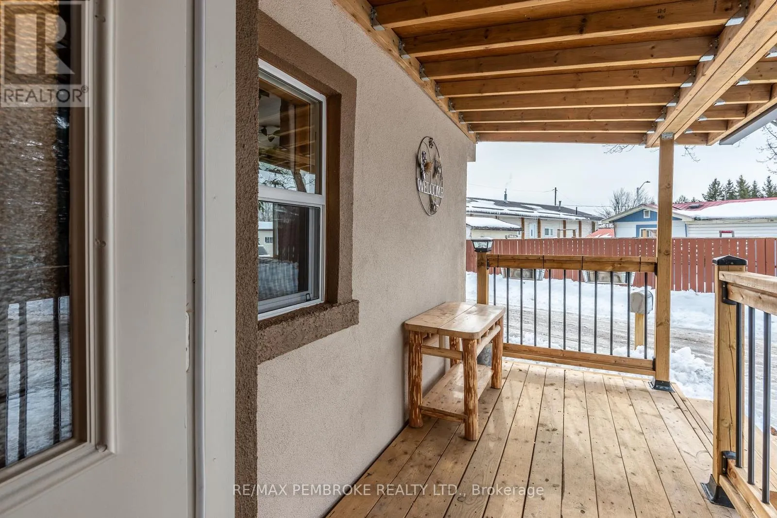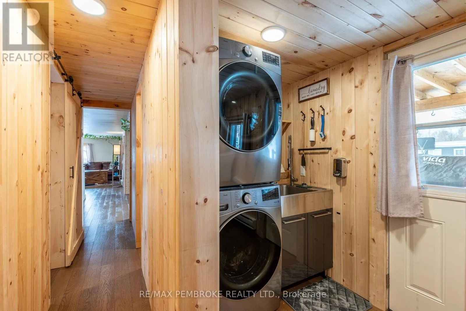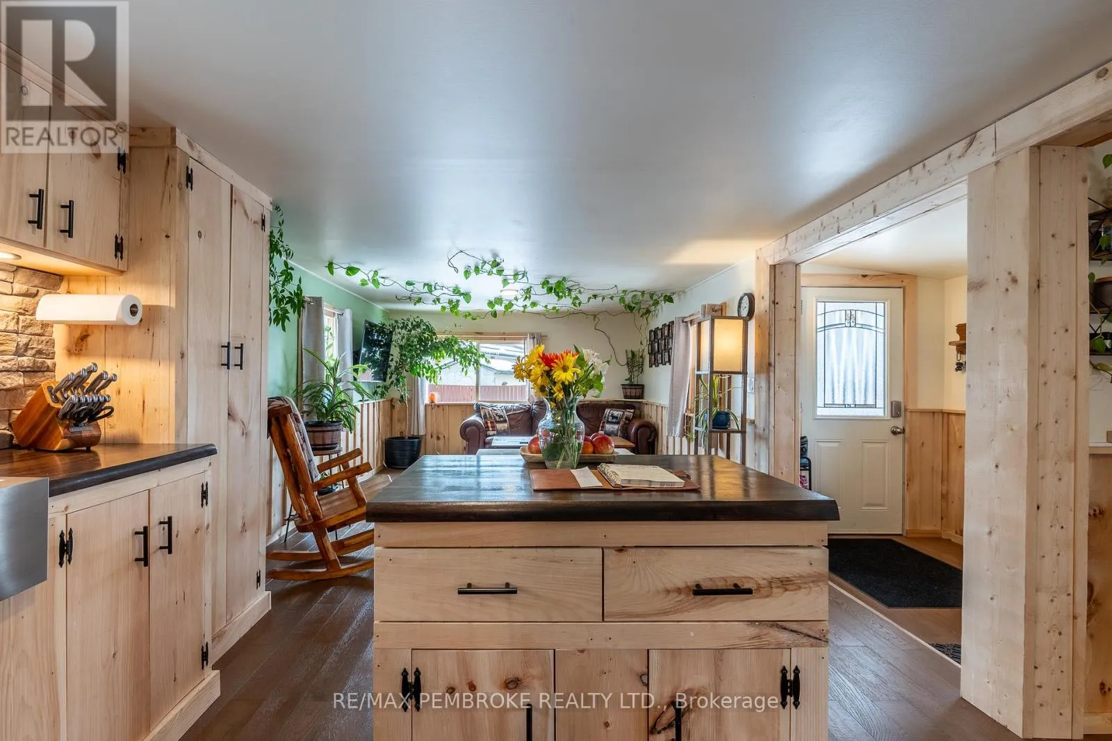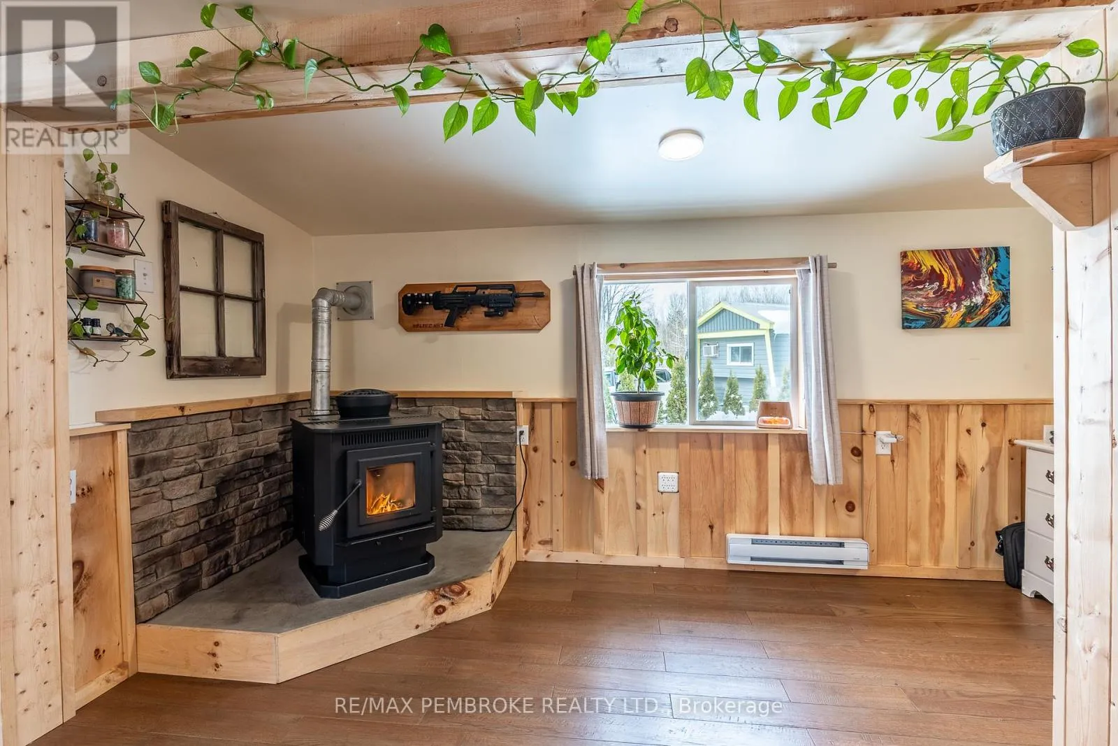 Cross Streets: Pinehurst Estates x Petawawa Blvd. ** Directions: Petawawa Blvd to Pinehurst Estates - make a right at the first opportunity, and then a left at the 2nd road. #23 will be on your right. This beautifully renovated 2-bedroom, 1-bathroom mobile home is ideal for a single professional, couple, or small family and offers a rare blend of rustic charm and modern comfort. Extensive updates have been completed both inside and out, giving peace of mind for many years to come. Exterior improvements include new eavestroughs, a durable metal roof [Nov 2024], updated windows and doors-including stylish sliding barn doors [2025]. Exterior walls re-done with new plywood, Tyvek, and Styrofoam insulation and finished with clean, modern stucco [2025]. Step inside and you'll immediately feel the warm, relaxing atmosphere. The interior has been completely transformed with rustic pine, creating a cozy yet modern aesthetic. A brand-new electric fireplace/heater adds to the ambiance, making the home comfortable year-round. New flooring and lighting flow throughout, enhancing the bright and inviting feel. The custom kitchen is a standout feature, complete with under-cabinet lighting and a beautiful stone backsplash. The updated bathroom feels spa-like, featuring a freshly tiled rain-shower, and a deep soaker tub - perfect for unwinding at the end of the day. The laundry area includes a laundry sink, newer dryer vent, and convenient access to the side deck. Outside, enjoy a nicely landscaped green space with new topsoil and sod [2025] and a garden. Two storage sheds provide plenty of room for tools and outdoor gear, and a recently added generator plug adds extra convenience and preparedness. Lot fees are currently ~$600 per month, however fees will be different for future owner. This location offers excellent walkability, with nearby shopping, restaurants, and the Catwalk just minutes away, as well as quick access to Garrison Petawawa. Thoughtfully renovated and truly move-in ready, this home offers comfort, character, and value in a fantastic location. 48 Irrevocable on all offers. (id:27476)