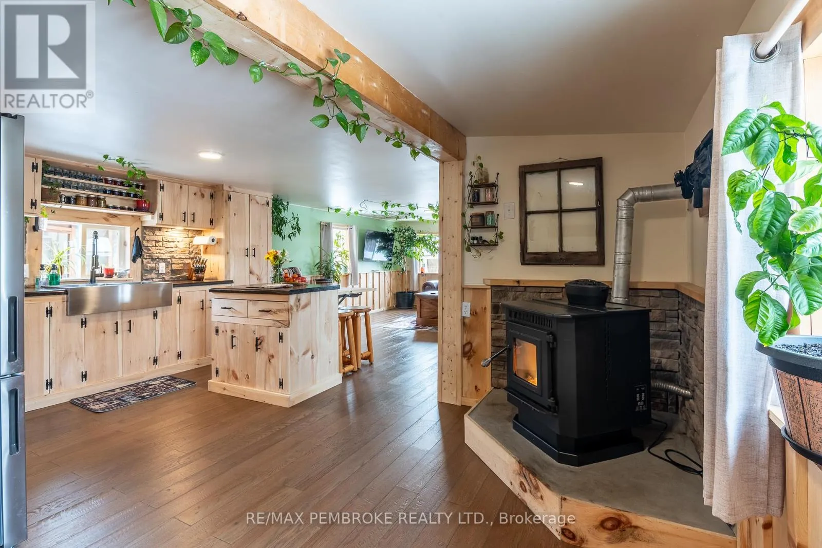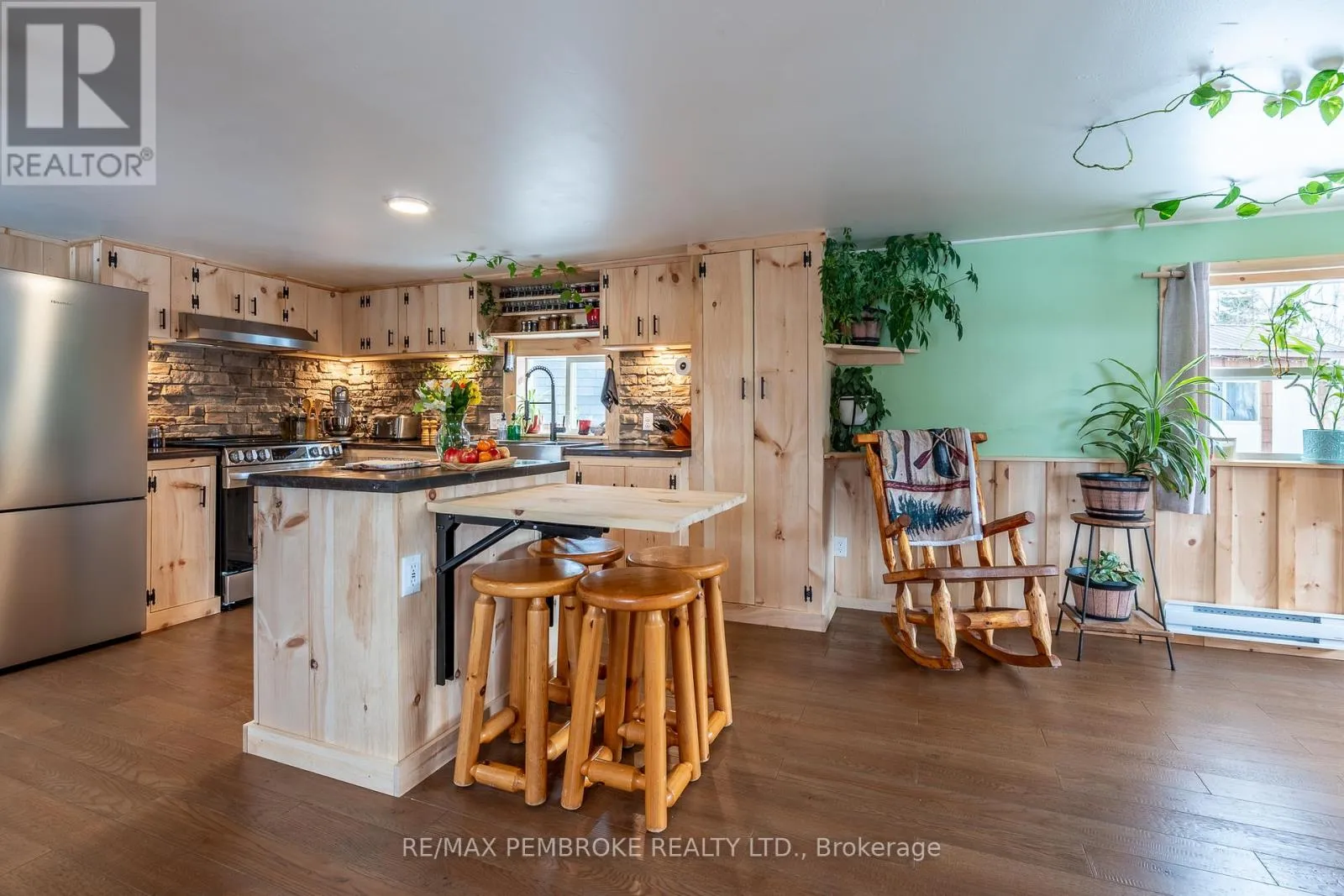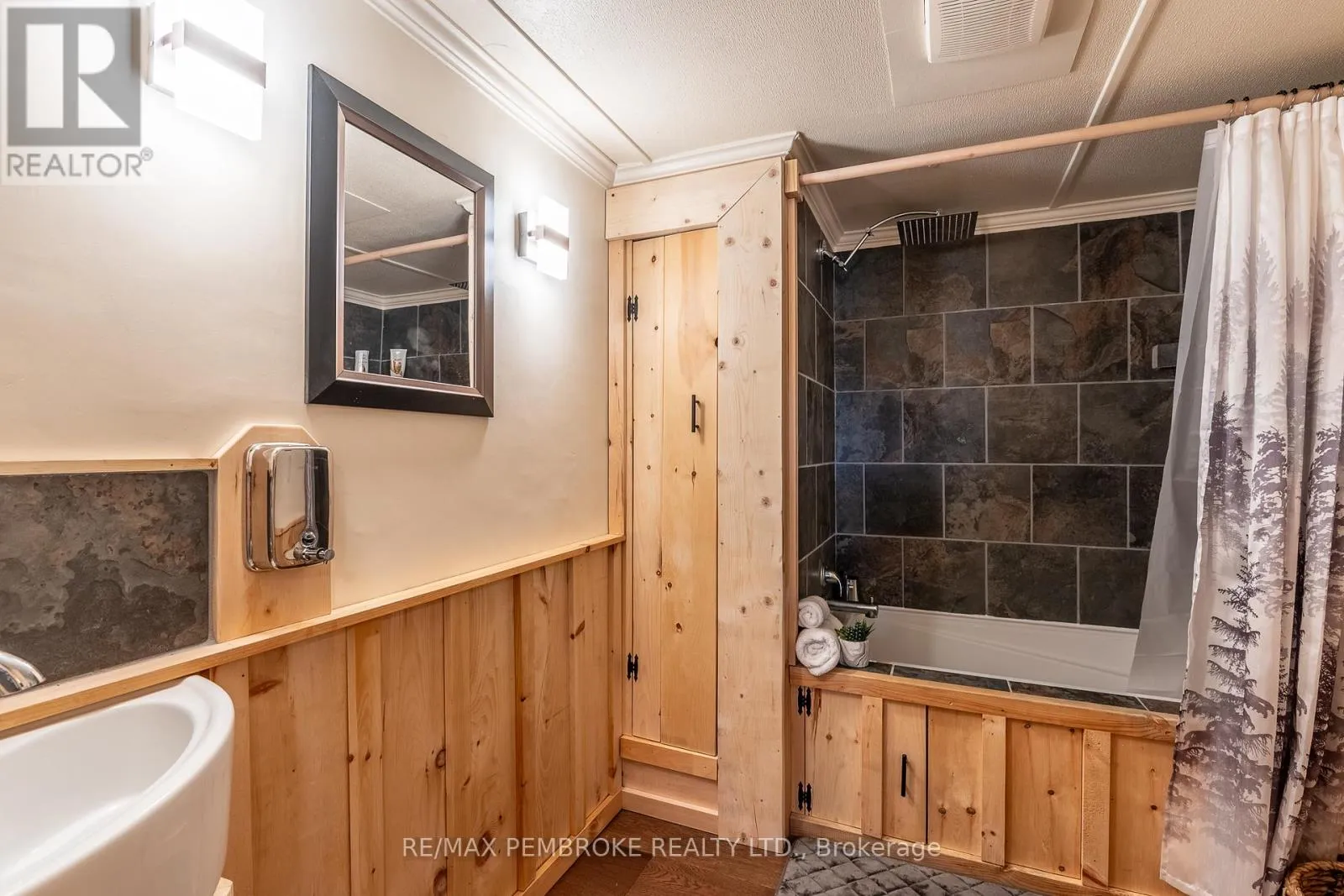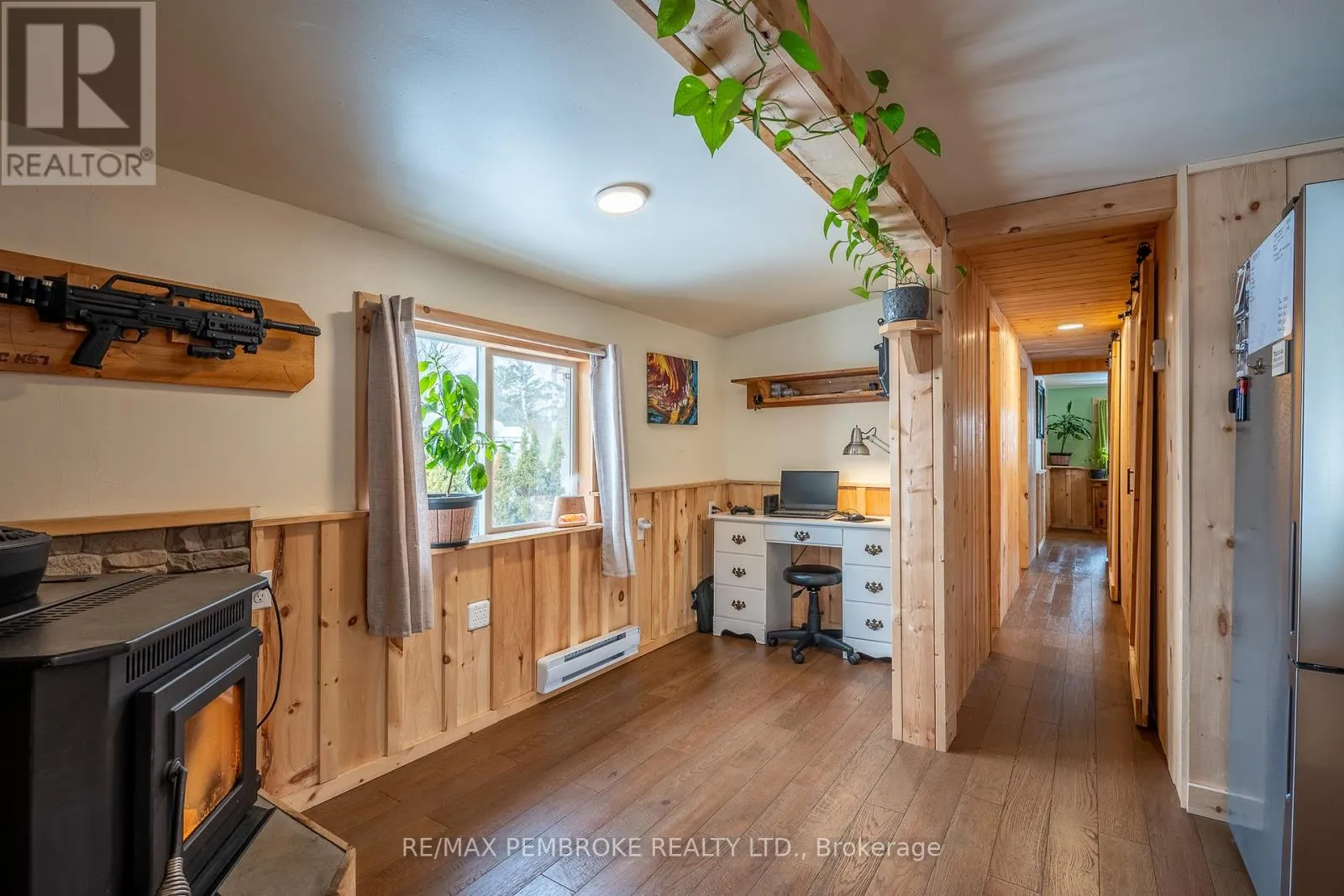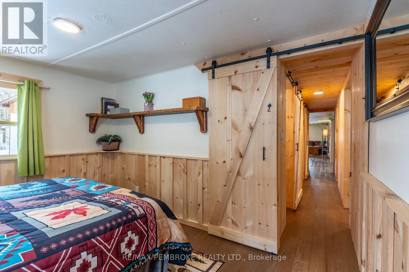 Cross Streets: Pinehurst Estates x Petawawa Blvd. ** Directions: Petawawa Blvd to Pinehurst Estates - make a right at the first opportunity, and then a left at the 2nd road. #23 will be on your right. This beautifully renovated 2-bedroom, 1-bathroom mobile home is ideal for a single professional, couple, or small family and offers a rare blend of rustic charm and modern comfort. Extensive updates have been completed both inside and out, giving peace of mind for many years to come. Exterior improvements include new eavestroughs, a durable metal roof [Nov 2024], updated windows and doors-including stylish sliding barn doors [2025]. Exterior walls re-done with new plywood, Tyvek, and Styrofoam insulation and finished with clean, modern stucco [2025]. Step inside and you'll immediately feel the warm, relaxing atmosphere. The interior has been completely transformed with rustic pine, creating a cozy yet modern aesthetic. A brand-new electric fireplace/heater adds to the ambiance, making the home comfortable year-round. New flooring and lighting flow throughout, enhancing the bright and inviting feel. The custom kitchen is a standout feature, complete with under-cabinet lighting and a beautiful stone backsplash. The updated bathroom feels spa-like, featuring a freshly tiled rain-shower, and a deep soaker tub - perfect for unwinding at the end of the day. The laundry area includes a laundry sink, newer dryer vent, and convenient access to the side deck. Outside, enjoy a nicely landscaped green space with new topsoil and sod [2025] and a garden. Two storage sheds provide plenty of room for tools and outdoor gear, and a recently added generator plug adds extra convenience and preparedness. Lot fees are currently ~$600 per month, however fees will be different for future owner. This location offers excellent walkability, with nearby shopping, restaurants, and the Catwalk just minutes away, as well as quick access to Garrison Petawawa. Thoughtfully renovated and truly move-in ready, this home offers comfort, character, and value in a fantastic location. 48 Irrevocable on all offers. (id:27476)