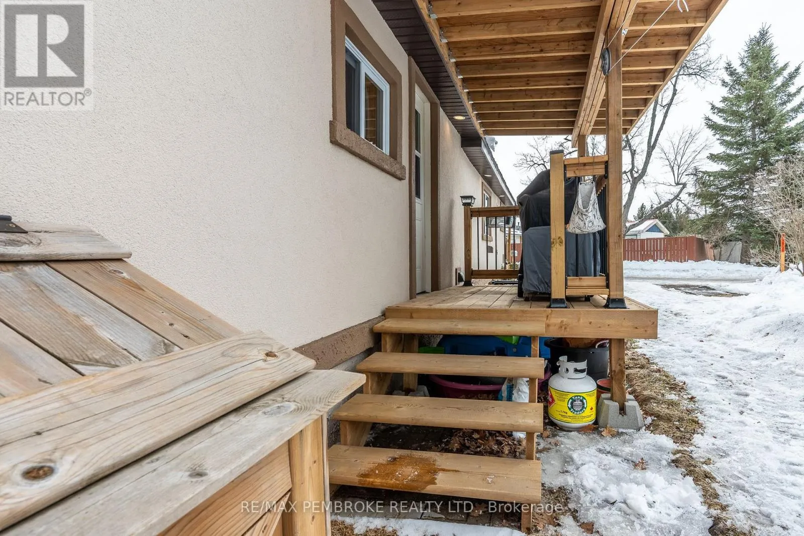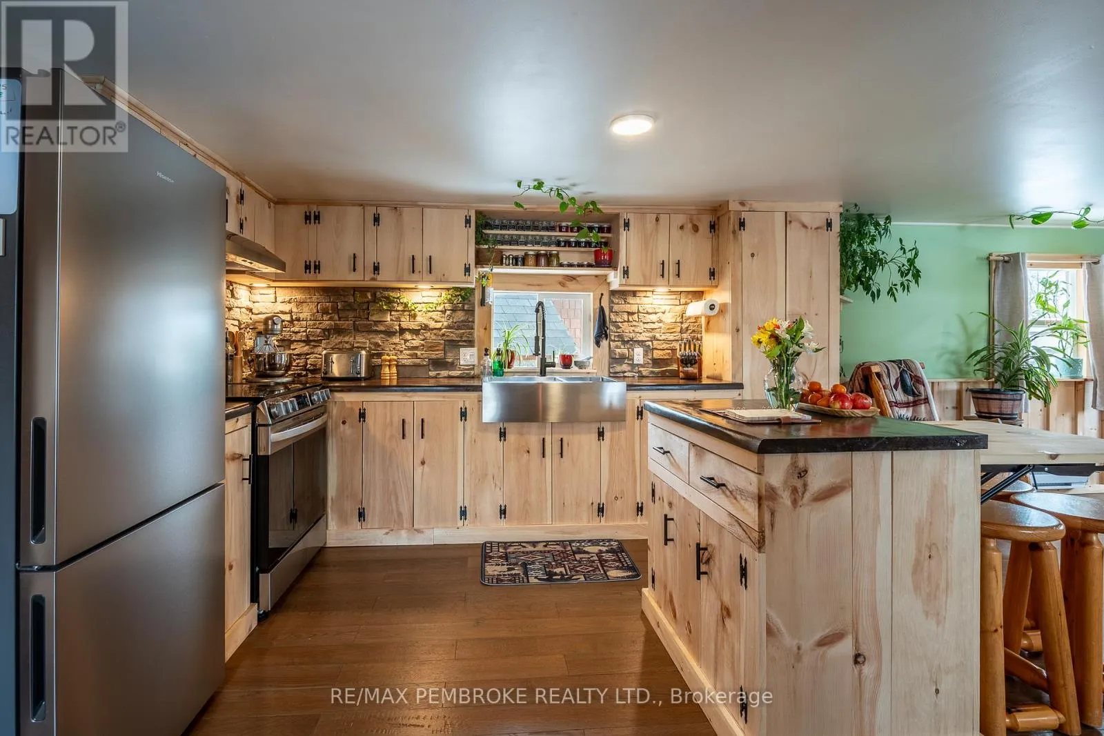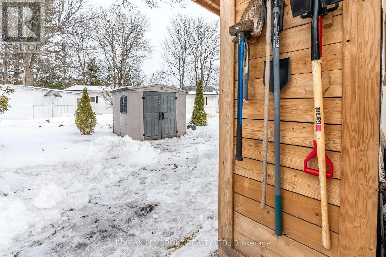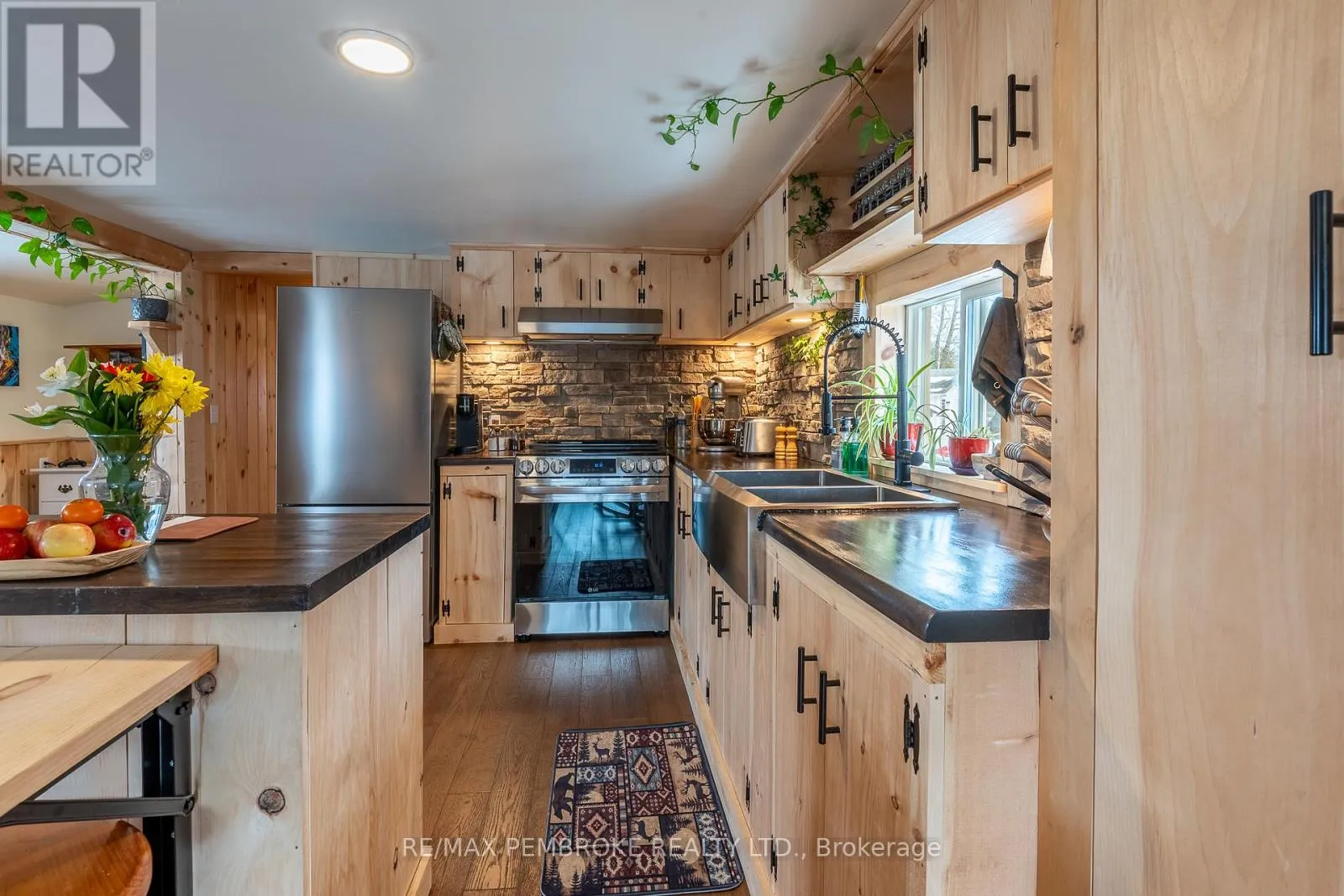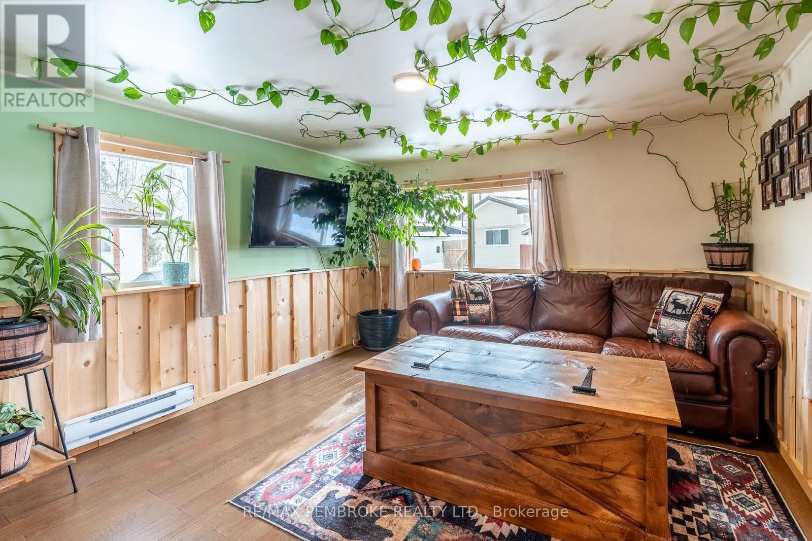 Cross Streets: Pinehurst Estates x Petawawa Blvd. ** Directions: Petawawa Blvd to Pinehurst Estates - make a right at the first opportunity, and then a left at the 2nd road. #23 will be on your right. This beautifully renovated 2-bedroom, 1-bathroom mobile home is ideal for a single professional, couple, or small family and offers a rare blend of rustic charm and modern comfort. Extensive updates have been completed both inside and out, giving peace of mind for many years to come. Exterior improvements include new eavestroughs, a durable metal roof [Nov 2024], updated windows and doors-including stylish sliding barn doors [2025]. Exterior walls re-done with new plywood, Tyvek, and Styrofoam insulation and finished with clean, modern stucco [2025]. Step inside and you'll immediately feel the warm, relaxing atmosphere. The interior has been completely transformed with rustic pine, creating a cozy yet modern aesthetic. A brand-new electric fireplace/heater adds to the ambiance, making the home comfortable year-round. New flooring and lighting flow throughout, enhancing the bright and inviting feel. The custom kitchen is a standout feature, complete with under-cabinet lighting and a beautiful stone backsplash. The updated bathroom feels spa-like, featuring a freshly tiled rain-shower, and a deep soaker tub - perfect for unwinding at the end of the day. The laundry area includes a laundry sink, newer dryer vent, and convenient access to the side deck. Outside, enjoy a nicely landscaped green space with new topsoil and sod [2025] and a garden. Two storage sheds provide plenty of room for tools and outdoor gear, and a recently added generator plug adds extra convenience and preparedness. Lot fees are currently ~$600 per month, however fees will be different for future owner. This location offers excellent walkability, with nearby shopping, restaurants, and the Catwalk just minutes away, as well as quick access to Garrison Petawawa. Thoughtfully renovated and truly move-in ready, this home offers comfort, character, and value in a fantastic location. 48 Irrevocable on all offers. (id:27476)