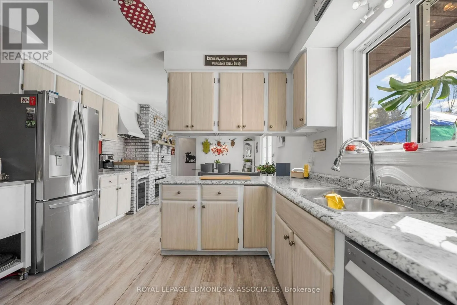 Cross Streets: Hilda St / Lisa Cres. ** Directions: From Petawawa Blvd turn onto Doran Rd then quickly onto Hilda St. The house is on the left after Natures Acre Park. Welcome to this beautifully maintained 3-bedroom, 2-bathroom family home, ideally located in a quiet Petawawa neighbourhood just minutes from Garrison Petawawa and all the amenities along the Boulevard. The bright and inviting main floor features a large kitchen with stainless steel appliances, abundant counter space, and a seamless flow into the sunlit dining room. A stunning double-sided wood-burning fireplace connects the dining area and the spacious sunken living room, creating a perfect atmosphere for both entertaining and relaxing. Three comfortable bedrooms and a full 4-piece bathroom complete the main level. Before heading downstairs, you'll pass a convenient laundry area and a 2-piece bathroom just off of the garage entrance. The lower level offers a large recreation room, an additional office or flex space, and an expansive storage area. Outside, enjoy your own private retreat with a gazebo-covered deck featuring a hot tub, a beautifully maintained inground pool, a fully fenced backyard, and a handy storage shed. The attached two-car garage includes an extra storage room-ideal for keeping everything organized year-round. This property combines comfort, style, and functionality in one of Petawawa's most sought-after locations. Many recent updates in 2022 include new auto garage door openers, professional house painting and popcorn removal, some new flooring, new roof and chimney rebuilt, washer, dishwasher, and in 2023 the gutters were redone. Seller's are flexible on closing. 24 hour irrevocable on all offers. (id:27476)