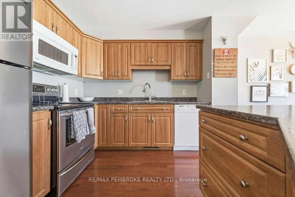 Cross Streets: Limestone. ** Directions: West. Through no fault of its own 2095 Sandstone is ready for its lucky owner!! Located in the highly sought after Limestone Trail subdivision, this well-maintained 3-bedroom, 2-bathroom home offers the perfect blend of comfort, functionality, and convenience, ideal for first time buyers, growing families, or investors alike. Step inside to a bright and inviting main floor featuring a spacious foyer with convenient access to the attached garage and a stylish powder room. The open concept layout flows seamlessly into the living and dining areas, filled with natural light and designed for both everyday living and entertaining. The functional kitchen offers ample cabinetry, generous prep space, and a breakfast island, perfect for busy mornings or hosting guests. Upstairs, you'll find three well-sized bedrooms including a spacious primary retreat with excellent closet space, along with a full bathroom to complete the level. The fully finished lower level adds incredible versatility with a large family room, ideal for movie nights, a home office, or additional living space-plus laundry and storage. Outside, enjoy a private backyard with deck access, creating a great space for summer BBQs or relaxing evenings. Situated just minutes from schools, parks, Petawawa Terrace, local amenities, and Garrison Petawawa, this location offers both lifestyle and convenience in one of the area's most desirable neighbourhoods. Whether you're looking to get into the market, downsize, or add to your portfolio, this home is a smart move in a growing community. All written signed offers must contain a 24 hour irrevocable. Garage 5.8 x 3.3 (id:27476)