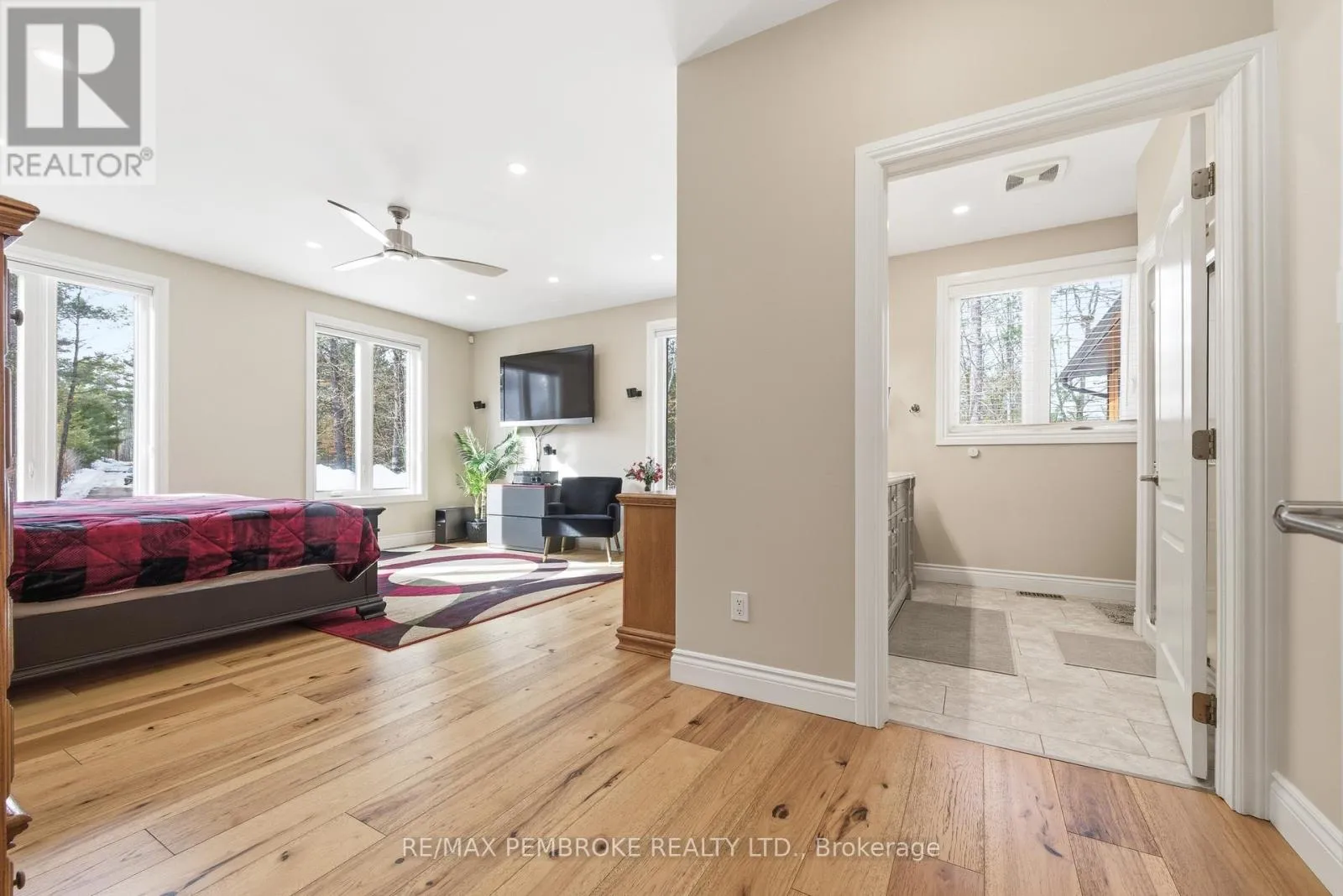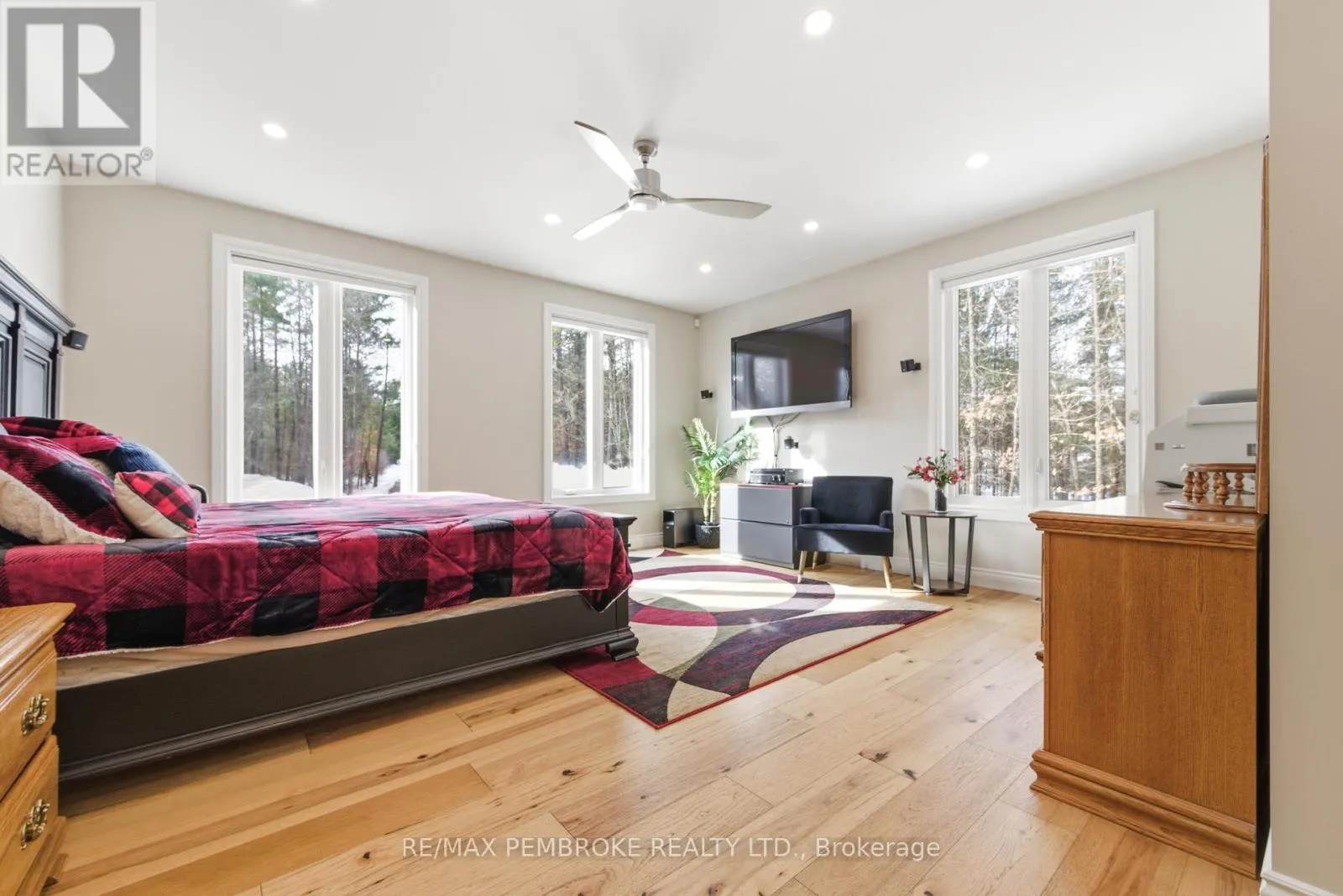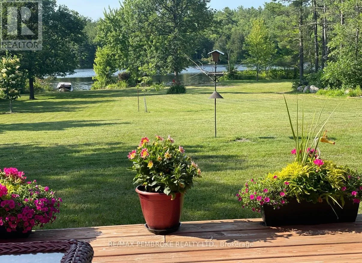 Cross Streets: Murphy road and Rantz road. ** Directions: Murphy road across Highway 17 to the stop sign then left onto Rantz road and house is on the right. Experience waterfront living at its finest on this exceptional 3.96-acre property along the Petawawa River. Offering rare privacy, open-water views, and true four-season enjoyment-boat, kayak, skate, or ice fish right from your own shoreline.Just 7 minutes from CFB Petawawa, this bright and inviting home features 2 + 2 bedrooms and 3.5 bathrooms, including a beautiful ensuite and convenient powder room. The showstopping sunroom features cathedral ceilings and expansive windows that flood the space with natural light and seamless views. The versatile lower level adds two bedrooms plus three additional flexible rooms, with an egress window in the family room/gym.Quality triple-pane windows, central air, and efficient wood stoves in both the sunroom and living room ensure year-round comfort. Step outside to two sandy beaches, a charming beach house, and ample space for gatherings. The property also includes a wood shed that doubles as a carport, plus a massive 40' x 50' garage with an additional 40' x 20' carport.Additional features include dual-zone in floor heating (lower level and garage), an 800-bottle wine room, a newly upgraded 2026 water treatment system, and an underground garden-watering system sourced from the river.This is a rare waterfront oasis-peaceful, private, and truly one of a kind. A must-see for anyone seeking a retreat without compromise. (id:27476)