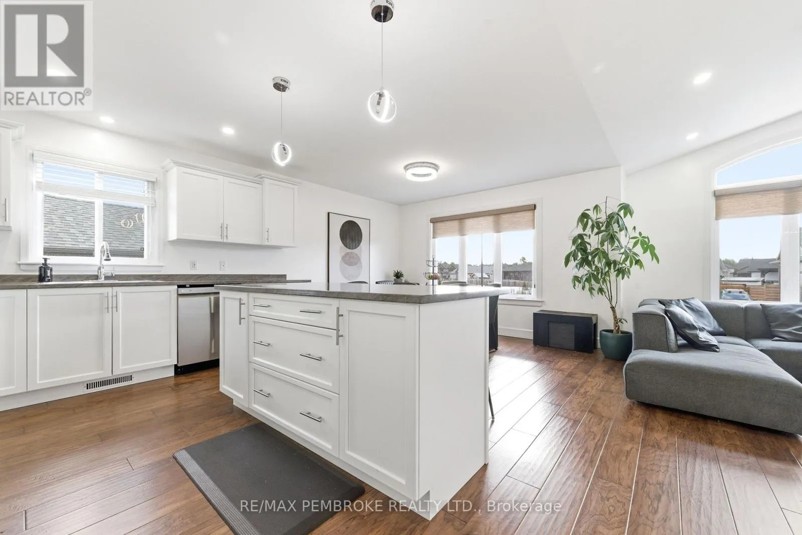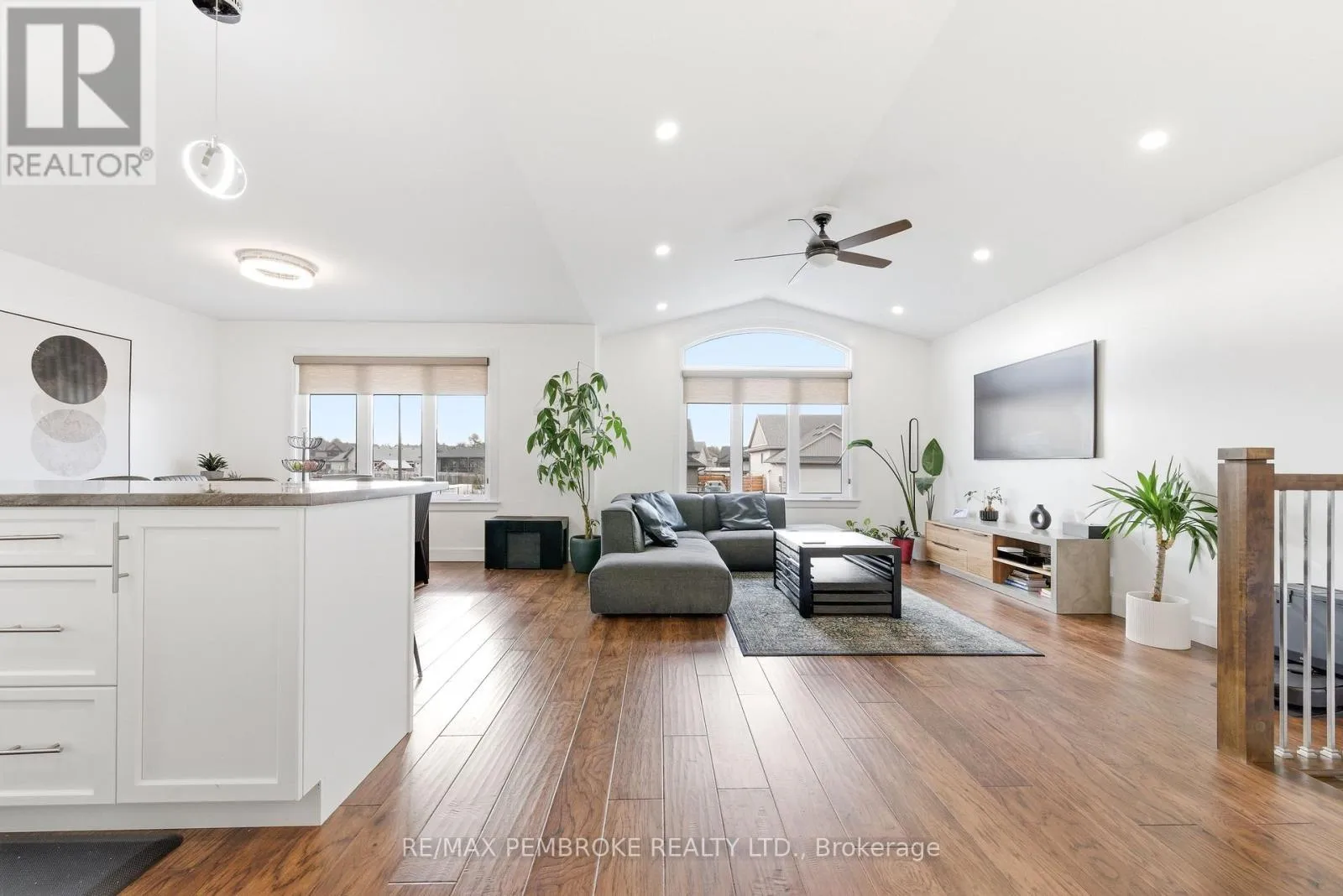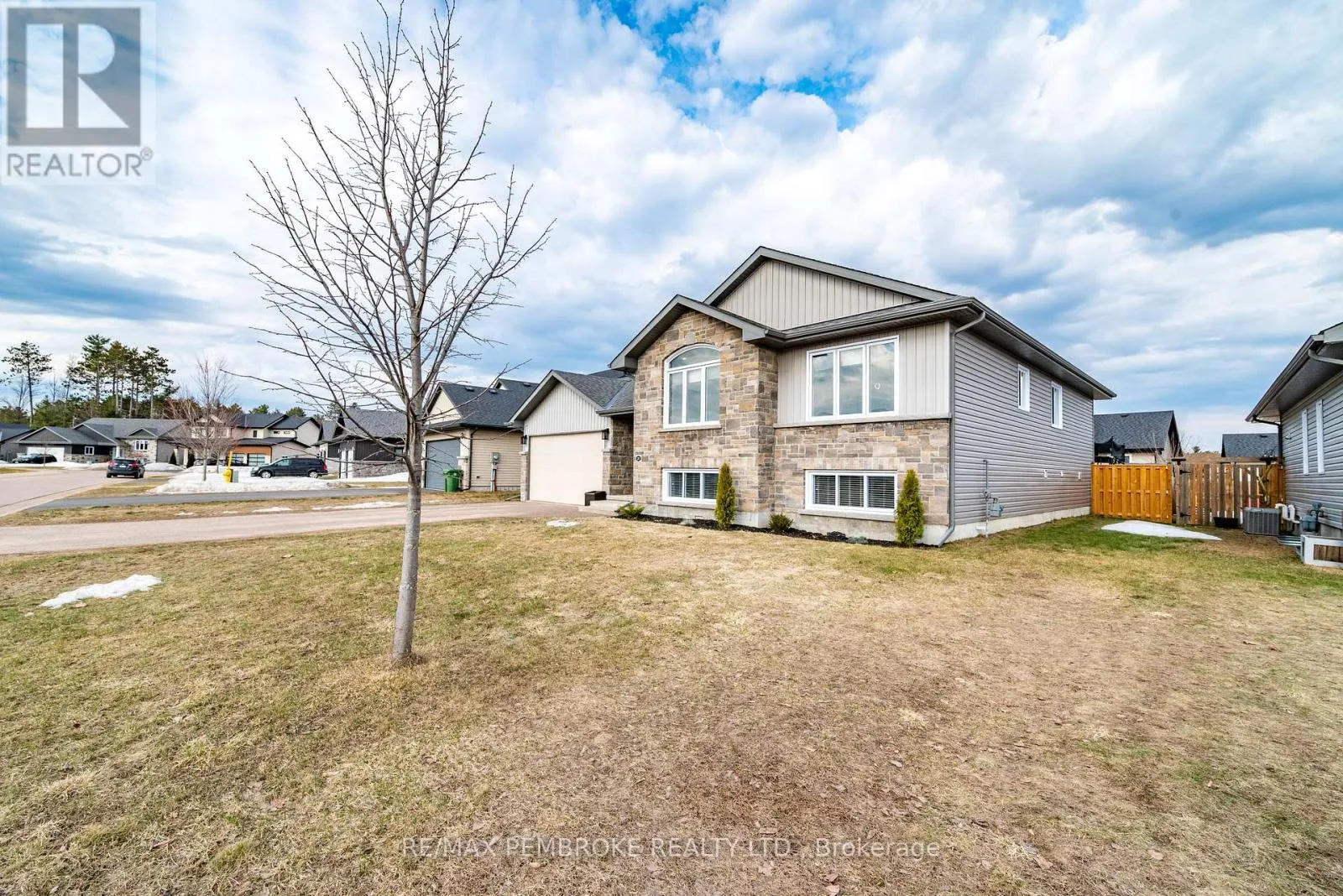 Cross Streets: Drew or Chad and Liam. ** Directions: Access Liam from Drew or Chad st, somewhat centered. Welcome to this beautifully maintained four-bedroom, three-bathroom home located in one of Petawawa's most sought-after neighborhoods. Step into a spacious tiled foyer with convenient access to the attached double car garage and a patio door leading directly to the backyard. A few steps up, the main living area offers a bright, open-concept layout featuring a modern kitchen with island, ample storage, and large front windows that fill the space with natural light. The main level includes three bedrooms, a full bathroom, and a private ensuite off the primary bedroom. The fully finished lower level provides exceptional additional living space, including a large carpeted family room, fourth bedroom, den/office, another full bathroom, and bonus under-stairs storage in addition to the furnace/utility room. Modern finishes throughout highlight the pride of ownership. The backyard has an added patio, gazebo, shed, and neighborhood park across the street. Great opportunity for families looking for space, comfort, and a prime location that's minutes away from all the best amenities. 24 hour irrevocable on all offers (id:27476)