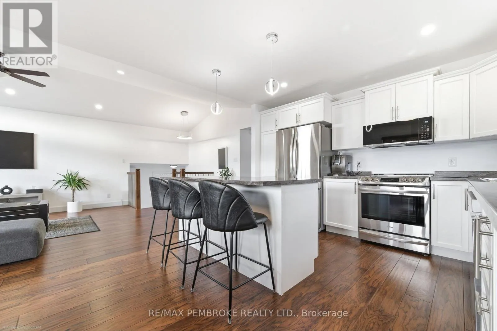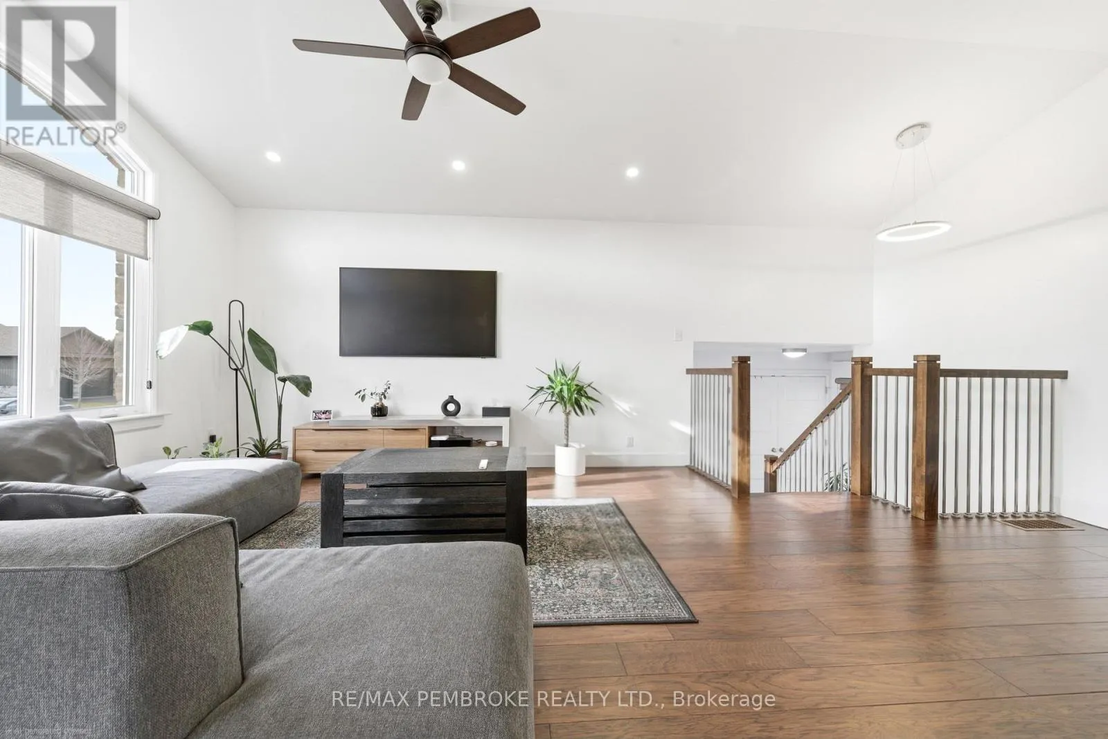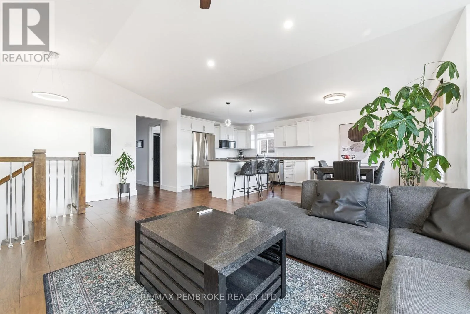 Cross Streets: Drew or Chad and Liam. ** Directions: Access Liam from Drew or Chad st, somewhat centered. Welcome to this beautifully maintained four-bedroom, three-bathroom home located in one of Petawawa's most sought-after neighborhoods. Step into a spacious tiled foyer with convenient access to the attached double car garage and a patio door leading directly to the backyard. A few steps up, the main living area offers a bright, open-concept layout featuring a modern kitchen with island, ample storage, and large front windows that fill the space with natural light. The main level includes three bedrooms, a full bathroom, and a private ensuite off the primary bedroom. The fully finished lower level provides exceptional additional living space, including a large carpeted family room, fourth bedroom, den/office, another full bathroom, and bonus under-stairs storage in addition to the furnace/utility room. Modern finishes throughout highlight the pride of ownership. The backyard has an added patio, gazebo, shed, and neighborhood park across the street. Great opportunity for families looking for space, comfort, and a prime location that's minutes away from all the best amenities. 24 hour irrevocable on all offers (id:27476)