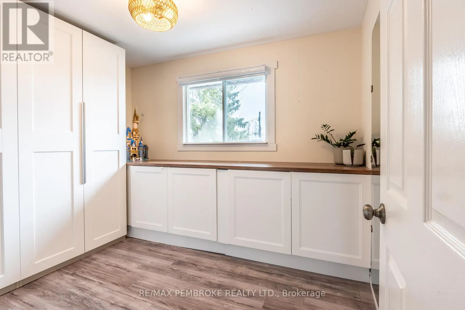 Cross Streets: Petawawa Blvd and Golf Cours. ** Directions: Petawawa Blvd, onto Golf Course Rd then onto Lakeview. Set in a family-friendly neighbourhood between Petawawa and Pembroke, this updated brick bungalow is an excellent opportunity for first-time buyers, downsizers, or anyone seeking affordable living with the added benefit of lower Petawawa taxes. Conveniently located just 15 minutes to both Garrison Petawawa, and downtown Pembroke, the home also offers easy access to nearby parks and is only 2 km from the Pembroke Golf Club. Inside, the main floor is bright, fresh, and carpet-free, featuring updated paint, a modern kitchen with stylish subway tile backsplash, and an updated bathroom with a jet tub. The current two-bedroom layout includes a dressing room off the primary bedroom, which could easily be converted back into a third bedroom or used as a nursery or home office. The lower level is unfinished and offers excellent potential for future living space. With direct access from the back door to the basement, there is exciting potential for an in-law suite or income-generating space, subject to buyer verification and approvals. Outside, the fully fenced backyard (with 8' trailer gate) provides privacy and room to relax, play, or garden, while the detached single-car garage adds practical storage and parking. This home also delivers strong value through important updates and economical utilities, including a standby generator, newer air conditioner, gas furnace, septic tank, and a waterproofed basement (2024). Offering peace of mind, flexibility, and comfort in a well-located setting, this is a property with plenty to offer at an approachable price point. 24 hour irrevocable on any written offer. (id:27476)