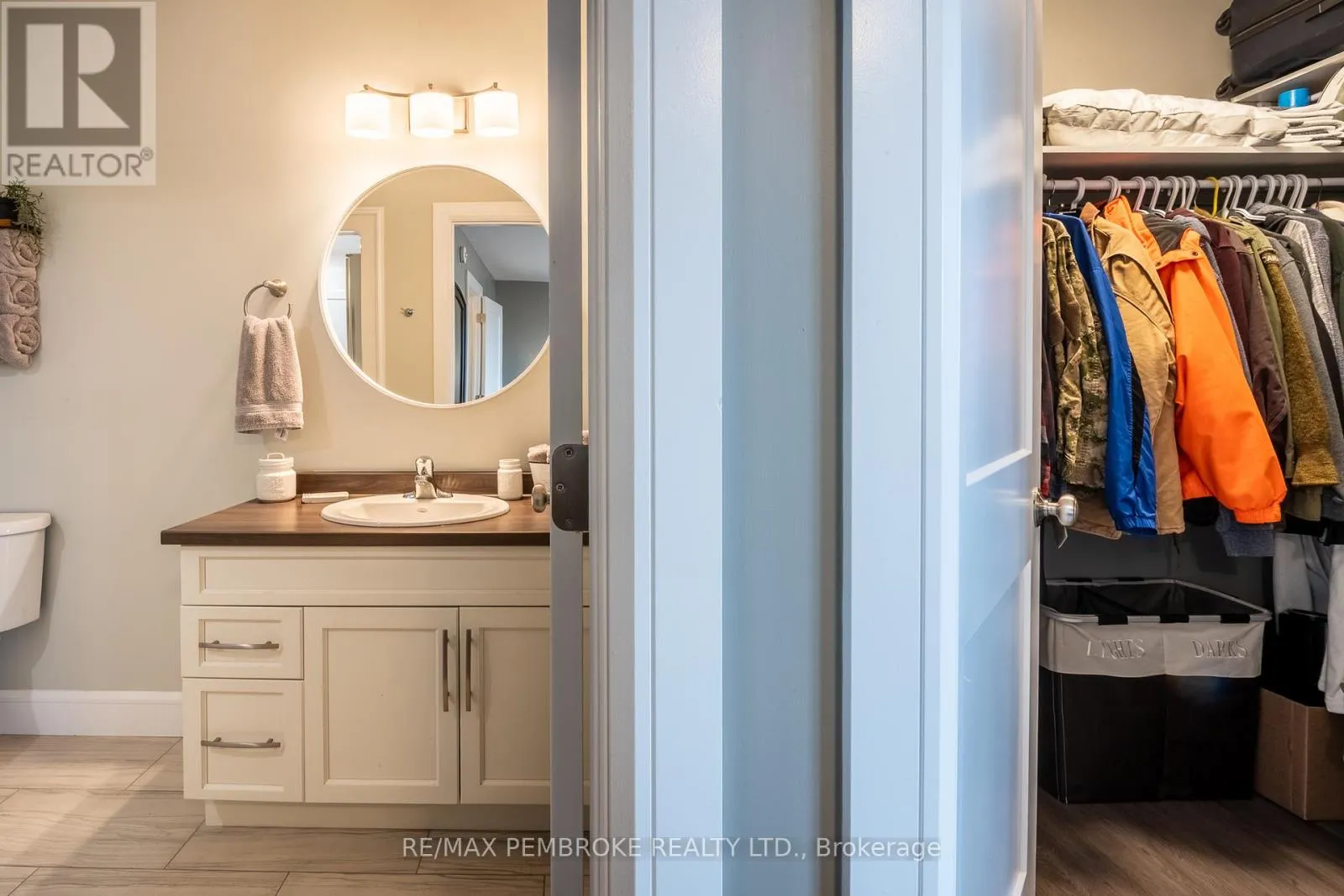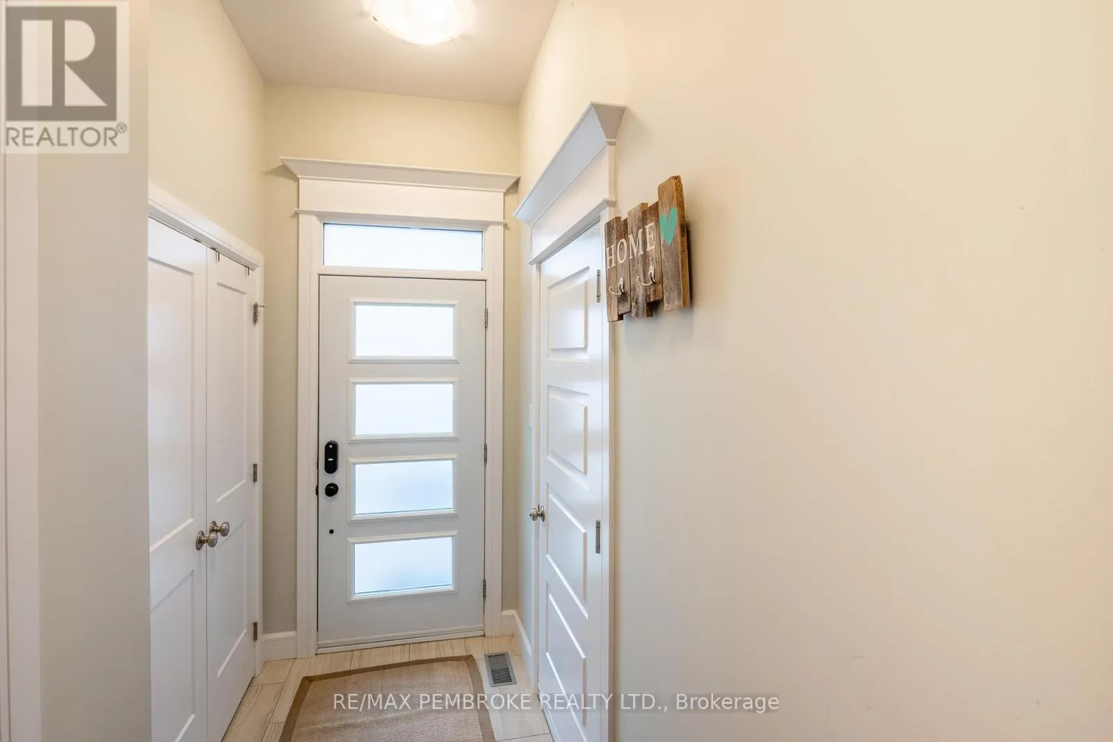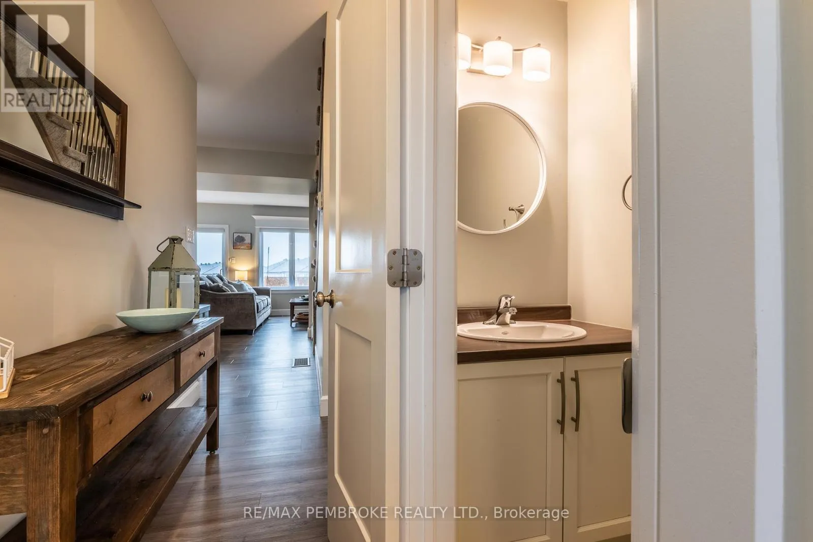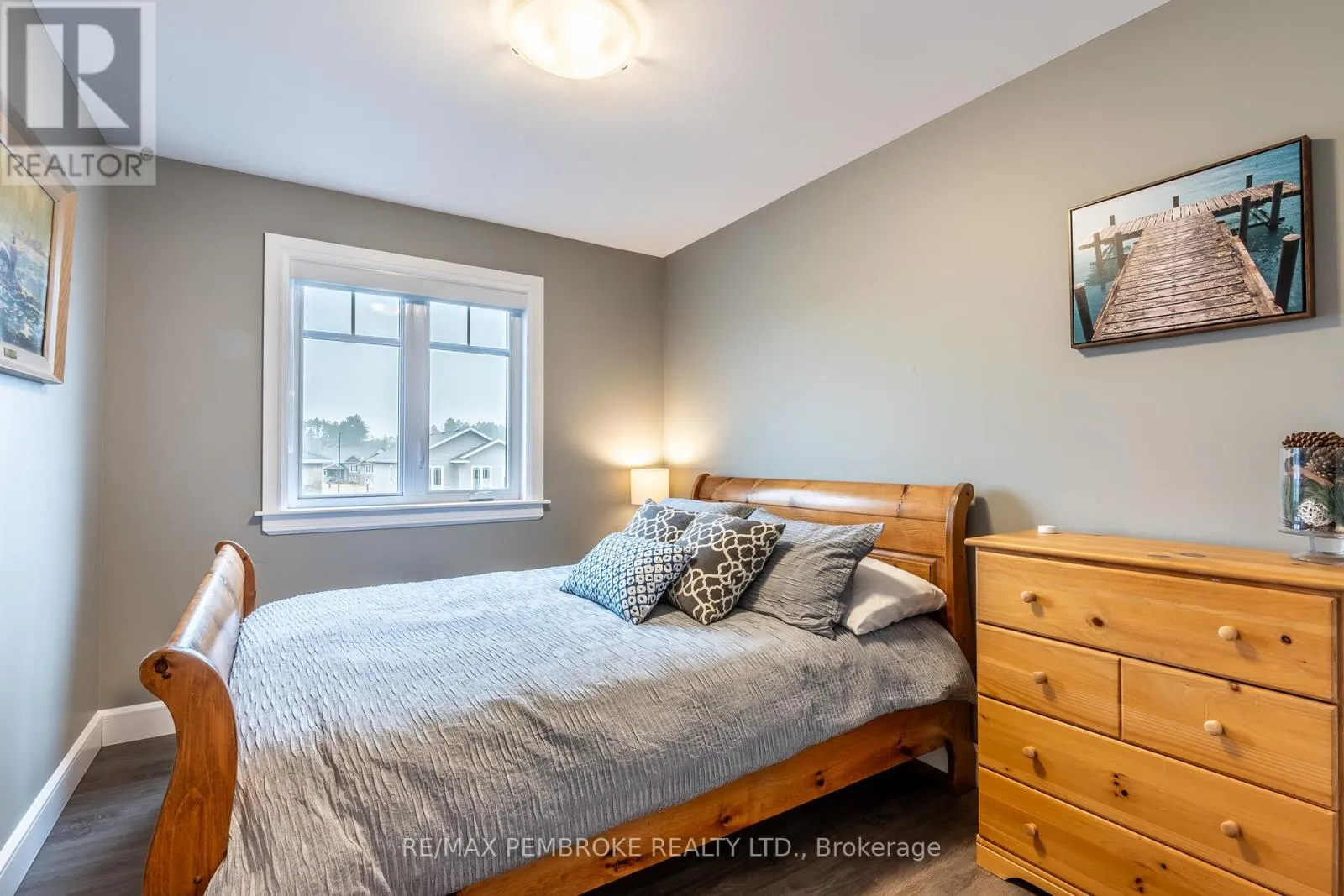 Cross Streets: Murphy & Butler. ** Directions: Petawawa Blvd to Murphy, onto Butler and left onto Chad St. This modern, beautifully maintained three-bedroom, three-bathroom end-unit townhouse is ideal for someone looking for quality finishes, style, and added natural light throughout with addition windows on the side. Bright and airy, this move-in ready home is well suited for owner-occupancy or as an investment property. The main floor features an open-concept living, dining, and kitchen layout with 8.5-foot ceilings, large windows, and patio doors leading to a deck with a privacy partition, perfect for outdoor lounging. The generous kitchen is finished with plenty of custom cabinetry, a large island with additional seating space, and stainless-steel appliances. The main floor is completed with a convenient powder room and foyer with a large closet and direct access to the attached garage. Durable and luxurious vinyl plank flooring runs throughout the main and second levels, while all bathroom floors are finished with beautiful tile. The large primary suite includes an impressive walk-in closet and a full ensuite with a walk-in shower. Two additional bedrooms share a full bathroom, making this layout perfect for family or guests. The upper floor is complete with a handy laundry closet and a large linen closet. The lower level offers a spacious family room as well as a large, enclosed storage area. Outside, the fully fenced yard adds privacy and functionality, while the paved driveway is extra wide and can comfortably accommodate three vehicles. This home also offers the added convenience of an attached garage with an automatic opener. Close to Garrison Petawawa and a short commute to Highway 17 and CNL, this location is fantastic. Minimum 24 hour irrevocable on any written Offer from a Buyer. (id:27476)