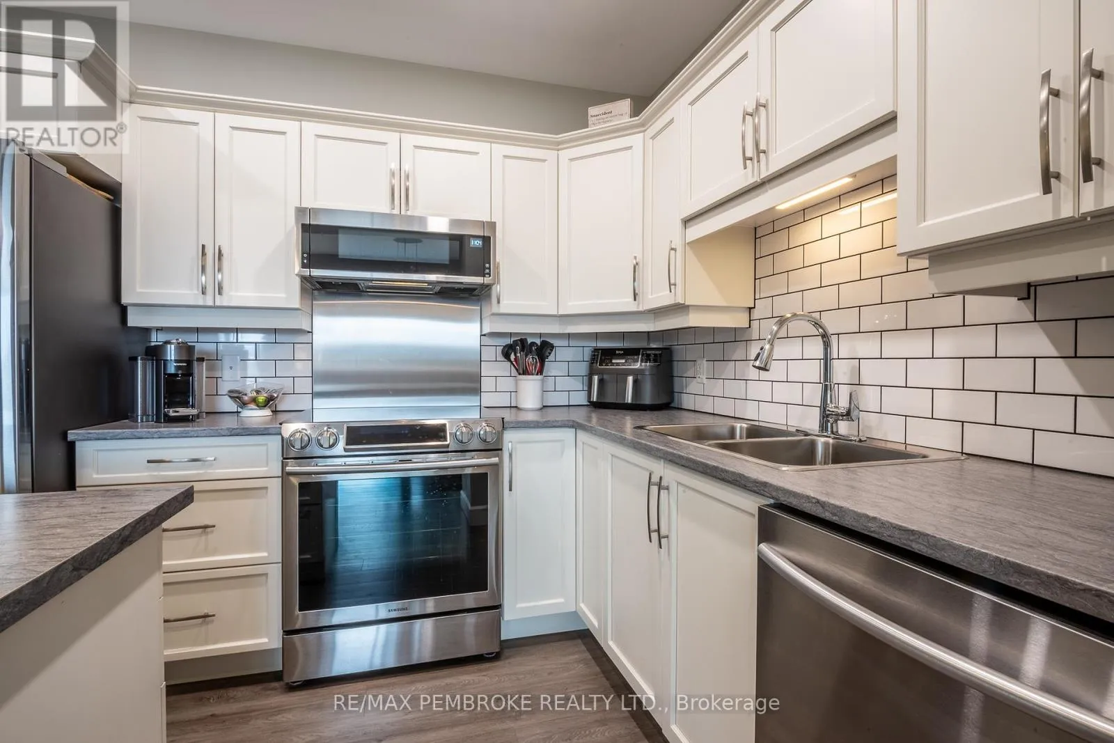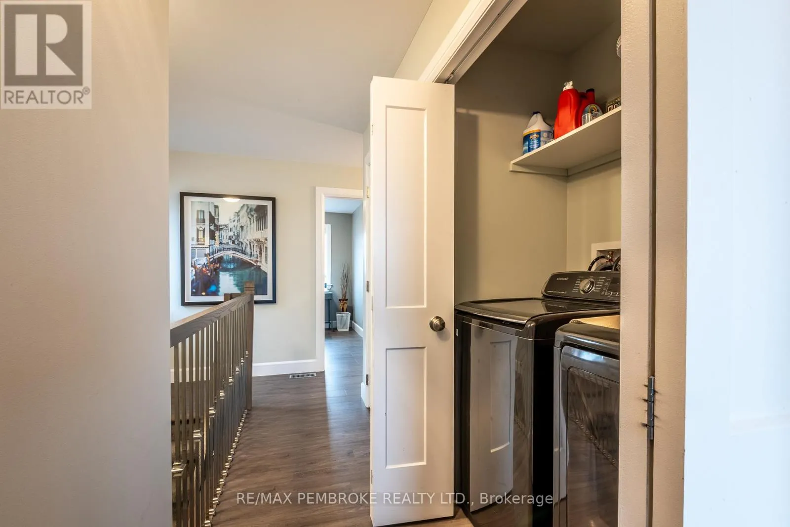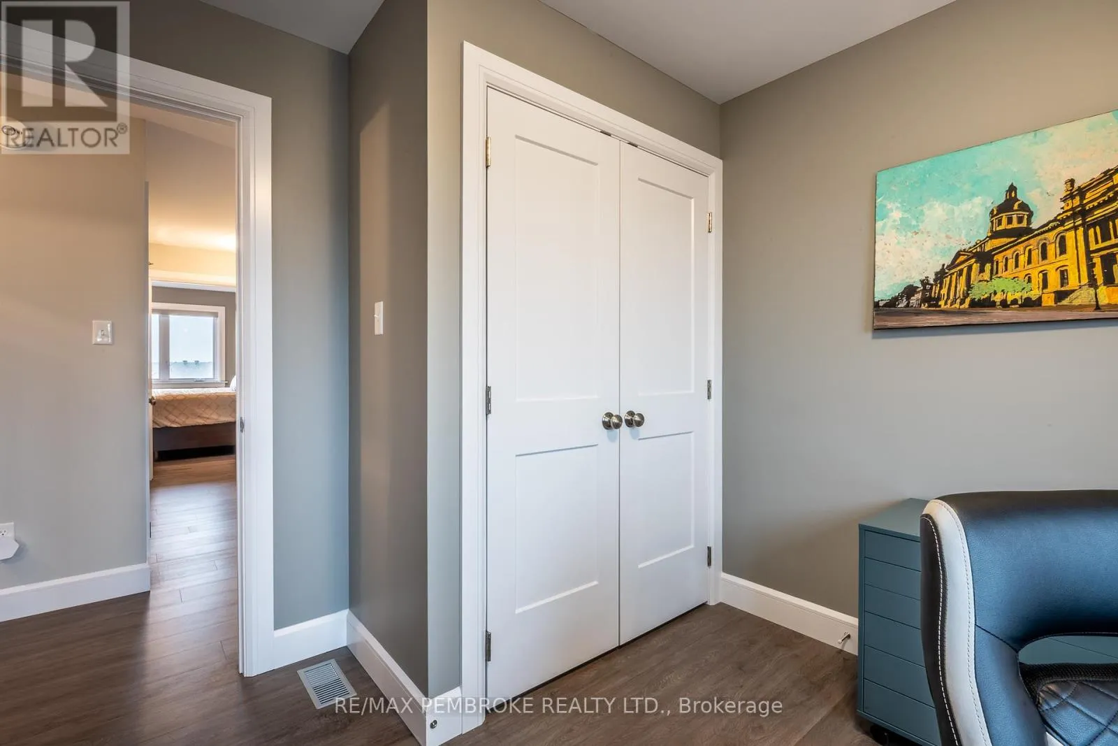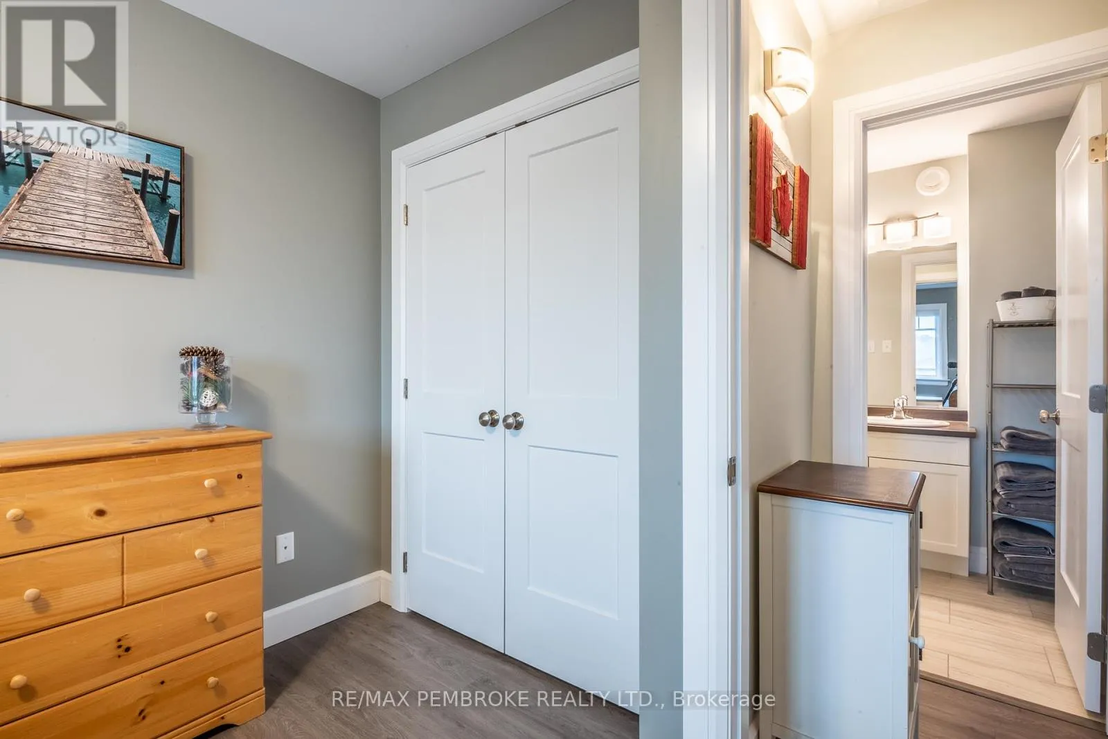 Cross Streets: Murphy & Butler. ** Directions: Petawawa Blvd to Murphy, onto Butler and left onto Chad St. This modern, beautifully maintained three-bedroom, three-bathroom end-unit townhouse is ideal for someone looking for quality finishes, style, and added natural light throughout with addition windows on the side. Bright and airy, this move-in ready home is well suited for owner-occupancy or as an investment property. The main floor features an open-concept living, dining, and kitchen layout with 8.5-foot ceilings, large windows, and patio doors leading to a deck with a privacy partition, perfect for outdoor lounging. The generous kitchen is finished with plenty of custom cabinetry, a large island with additional seating space, and stainless-steel appliances. The main floor is completed with a convenient powder room and foyer with a large closet and direct access to the attached garage. Durable and luxurious vinyl plank flooring runs throughout the main and second levels, while all bathroom floors are finished with beautiful tile. The large primary suite includes an impressive walk-in closet and a full ensuite with a walk-in shower. Two additional bedrooms share a full bathroom, making this layout perfect for family or guests. The upper floor is complete with a handy laundry closet and a large linen closet. The lower level offers a spacious family room as well as a large, enclosed storage area. Outside, the fully fenced yard adds privacy and functionality, while the paved driveway is extra wide and can comfortably accommodate three vehicles. This home also offers the added convenience of an attached garage with an automatic opener. Close to Garrison Petawawa and a short commute to Highway 17 and CNL, this location is fantastic. Minimum 24 hour irrevocable on any written Offer from a Buyer. (id:27476)
