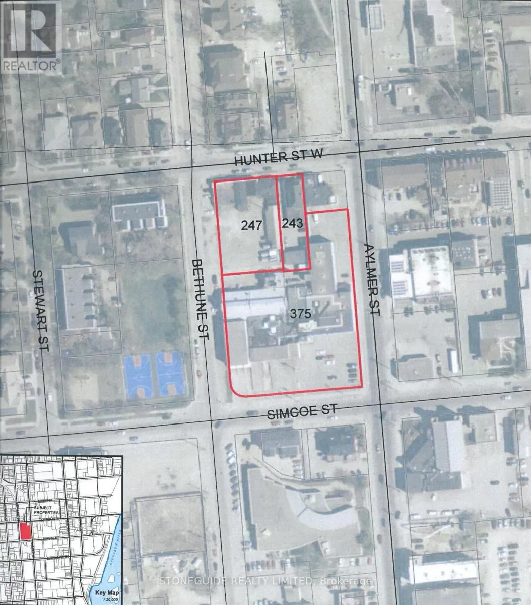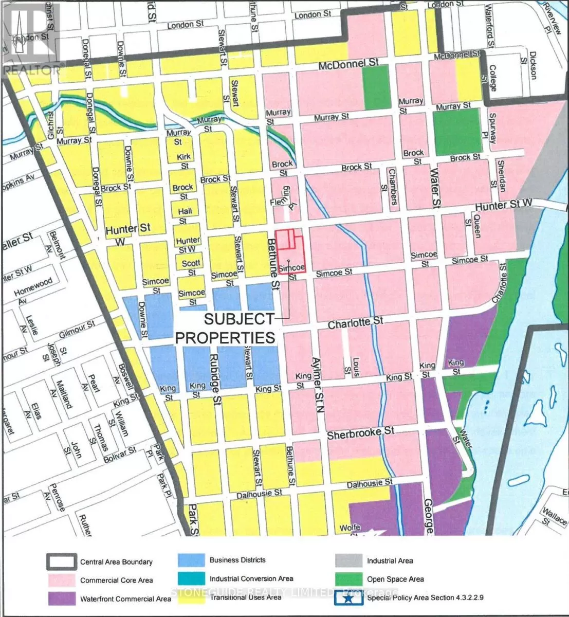 SIMCOE Prime development opportunity in Peterborough's designated "Central Area" . Offering 1.317 acres with frontage on 3 streets : Aylmer St - 315' / Simcoe St - 213' / Bethune St - 200'. This brownfield redevelopment site was formally the Baskin Robbins plant and has been rezoned to a generous C-6 designate allowing for many potential uses. Ideally located next to the Peterborough Public Library , Simcoe/Bethune Park and Peterborough Bus Terminal. (id:27476)