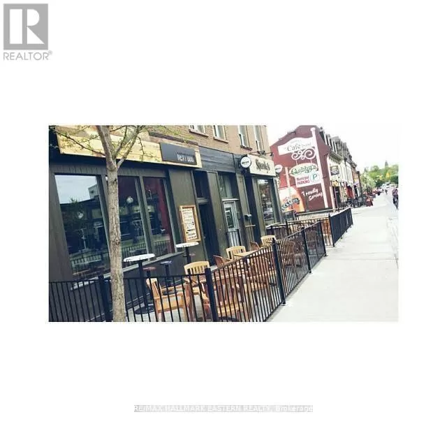 Cross Streets: Aylmer Street. ** Directions: Aylmer St. to Hunter St. W. Premier location in Peterborough's cafe district. This 3,130 sq.ft. end unit also has 950 sq.ft. of patio space. Great opportunity for "turn-key" bar/restaurant/cafe in Peterborough's most sought after location, adjacent to the parking garage and rear yard opportunity for special events. Rent $5,204, T.M.I. $1,291, Heat $509, Patio $995 = monthly total $7,999. (id:27476)