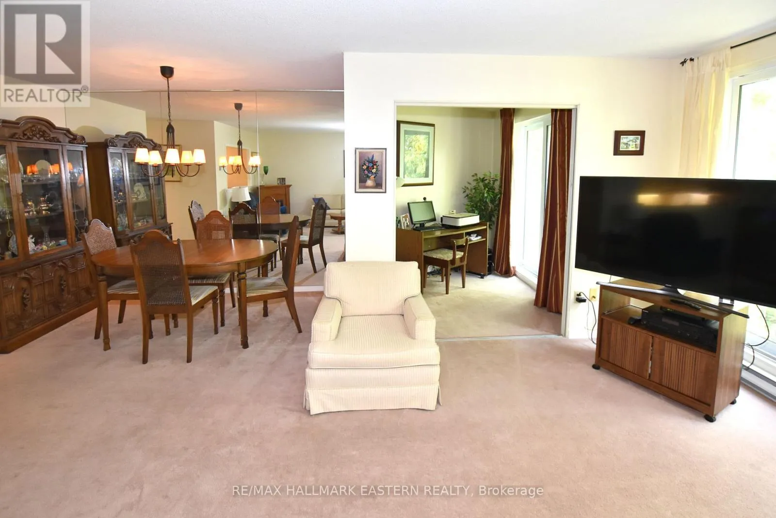 Cross Streets: Marina Drive. ** Directions: Water St. North before Marina Drive. Bright and well maintained 2-bedroom, 2-bathroom condo at "The Maples" . This spacious, open-concept home features a bright living and dining area with large patio doors offering peaceful views of Bear Creek. Enjoy the comfort of a generous living room, a dedicated office nook with patio door just off the main living area, and the convenience of in-suite laundry. The primary suite includes its own bathroom for added privacy. Residents at "The Maples" enjoy secure entry, heated underground parking, a private storage locker. Access to amenities including a gym, common lounge, and library. Located in a beautifully landscaped setting, the condo is just close to Riverview Park, across from the Otonabee River, and close to shopping, public transit, and essential amenities. Whether you're looking to downsize or settle into a low-maintenance, comfortable home in a prime location, this unit is a perfect choice. (id:27476)