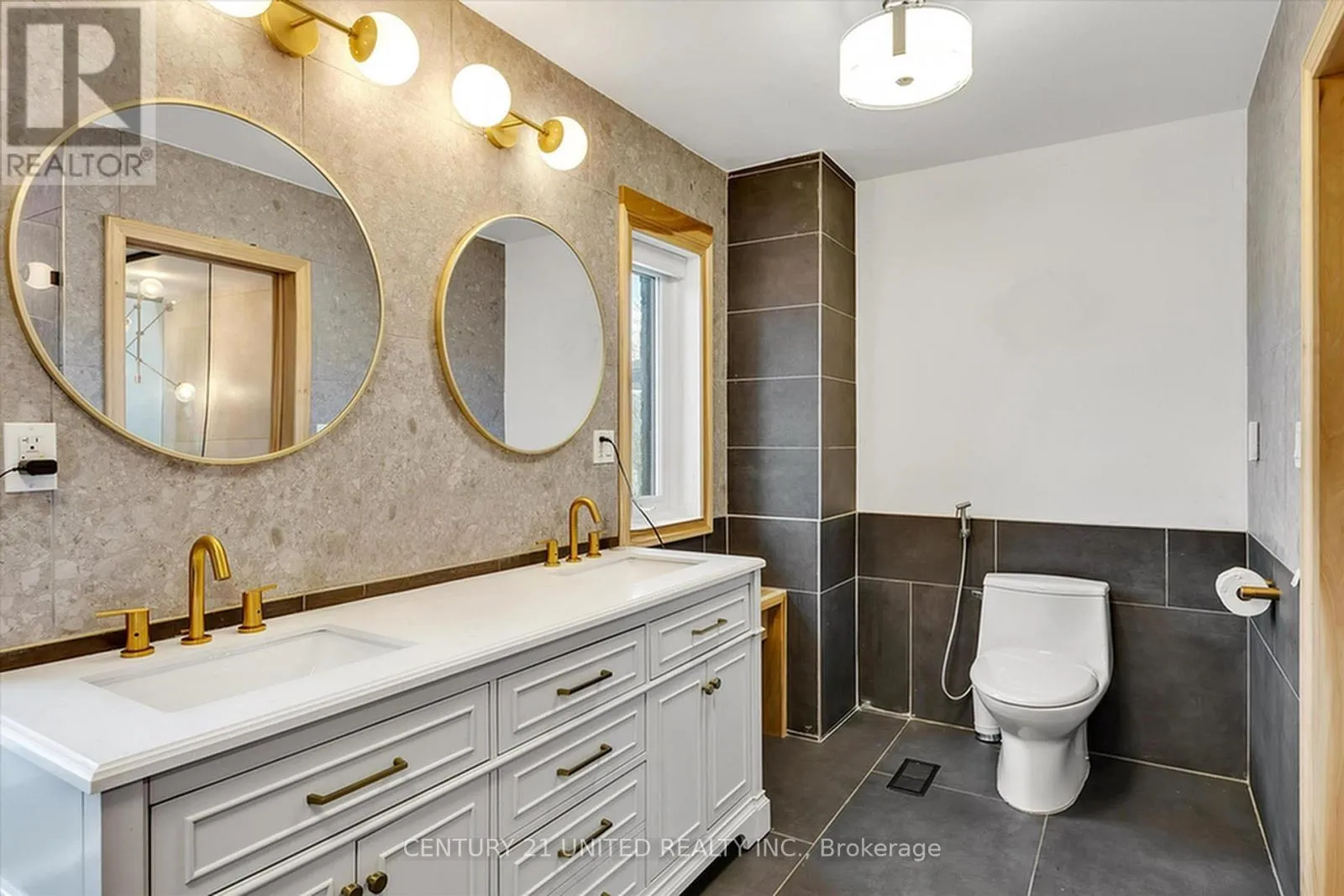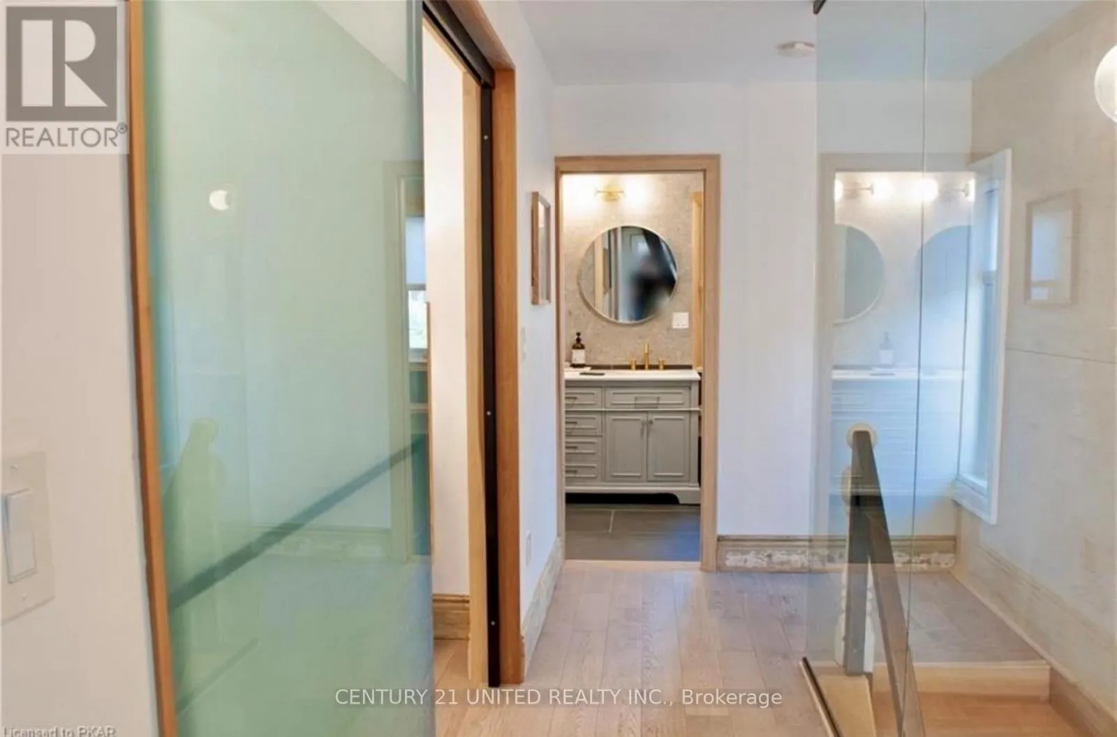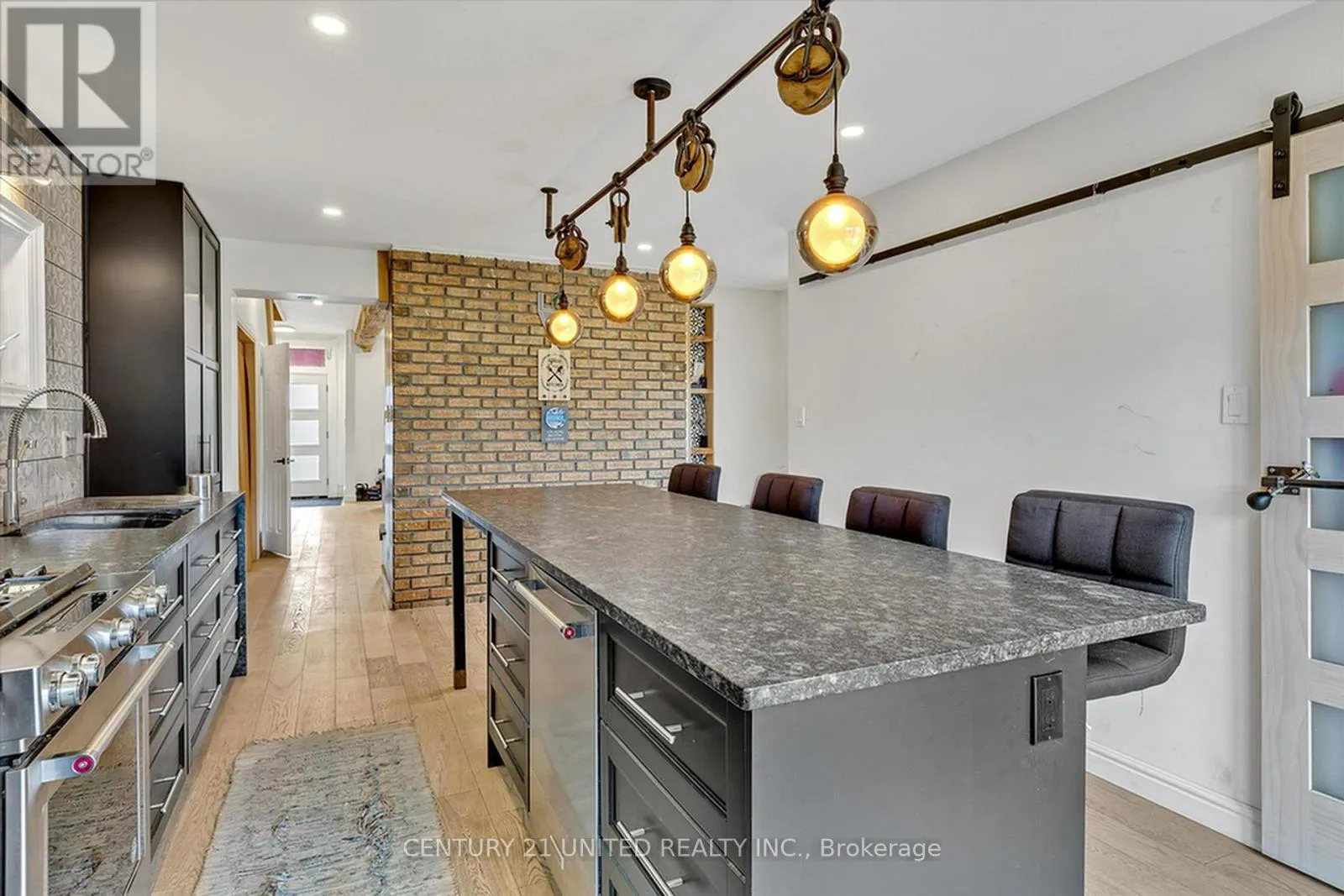 Park Place Beautifully renovated 2.5 storey all brick home with one-of-a-kind finishes throughout every level! Stunning, oversized rooms on the main floor offering 10+ foot ceilings, powder room & multiple entrances. Living/dining combo with exposed wood beam & original brick fireplace ready for gas insert. Big bright kitchen addition with loads of cabinet space, 10 ft island with leather granite countertops & stainless steel appliances. Don't forget about the main floor laundry, access to lower level and the sliding door walk out to deck & yard with privacy wall. The basement is dry & finished under the kitchen; an ideal rec room or bedroom with option for an additional gas insert! The second level has been renovated to offer a large bedroom & spa-like bath with double vanity, freestanding soaker tub, glass/tile shower & Heated flooring. European style loft ladder welcomes you to the second bedroom on the 3rd level. White oak hardwood flooring, new windows, gorgeous glass work & custom lighting with great attention paid to maintaining much of the original charm and character! (id:27476)