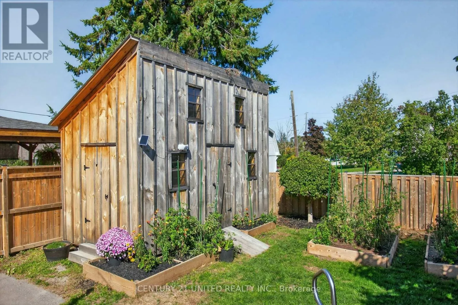 Cross Streets: Armour Rd. ** Directions: Parkhill Road to Armour Road north, 3rd street on the left, turn left onto Moir St. Excellent starter or downsize home in an excellent family-friendly neighbourhood.Perfect for the outdoors type, just steps from the Rotary Trail for hiking, biking, and a leisurely stroll along the Otonabee River.Welcome to 15 Moir Street, a charming 2-bedroom, 1-bath bungalow that blends timeless character with modern comfort. Bright and airy, this home features high ceilings, gleaming hardwood floors throughout (no carpet!), and wide trim and moldings finished in a crisp, clean white. The living spaces flow beautifully, showcasing warmth and style in every corner.Step outside to enjoy a partially fenced backyard with raised and boxed planting beds, ideal for vegetables, herbs, or flowers. Plus a deck off the rear mudroom, perfect for relaxing or entertaining. Out front, a cozy porch invites you to unwind, socialize with neighbours, or wave to friendly passersby heading to the Rotary Trail for a stroll. The front yard also features a thoughtful cut-flower garden, offering fresh bouquets for family, friends, or any special occasion.A bonus versatile She Shed with a separate insulated pottery/craft studio or workshop, an upper loft for relaxing, reading, or escaping the day, along with ample storage, ready for your imagination.Meticulously cared for and thoughtfully updated, the home boasts a newer kitchen and bathroom (approx. last 5 years), along with recent energy-efficient upgrades including furnace, central air, on-demand hot water, and attic insulation. Truly move-in ready!Located on a quiet East City cul-de-sac, you'll love being just steps from the RotaryTrail, Otonabee River, and nearby community parks. A rare opportunity to own a home full of character in a setting that offers both charm and convenience. (id:27476)