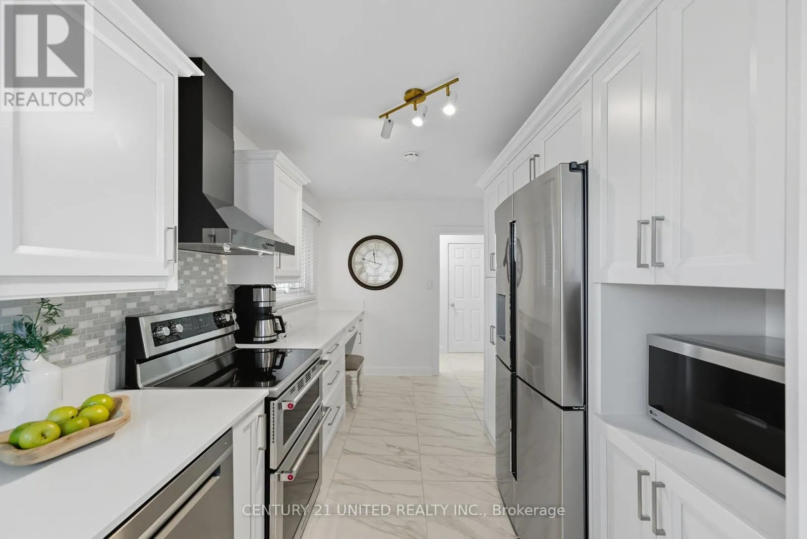 Kawartha Heights Blvd & Ferndale Ave Welcome to 5 Ferndale Ave in Peterborough's highly sought after family friendly west end community! This stunning 3+2 Bedroom/3 Bath bungalow offers fantastic curb appeal with extensive interlocking flagstone patios, retaining walls and beautiful well landscaped gardens on a private 83 ft x 154 ft lot. Over $200k in updates the past 3 years including all new flooring from porcelain tiles and stunning light oak hardwood to a brand new kitchen where functionality meets luxury, updated light fixtures plus all new windows and doors. The gourmet kitchen has been expertly crafted with timeless white cabinetry complimented by high end stainless appliances, quartz countertops and a large walk-in pantry to organize all your kitchen essentials. The combined living/dining room is where comfort and style converse. The space is bathed in natural light through large windows enhancing the spacious layout creating a warm and inviting atmosphere. Step outside to a large composite deck providing ample space for entertaining, dining and relaxation making it a true extension of the home. A cozy primary bedroom features closet organizers a 5pc ensuite with custom vanity and double sinks. Plenty of built in cabinetry and storage. The front two rooms are currently being used as home based spa business but can easily function as bedrooms/den. A separate entrance leads to a massive fully finished basement with a large rec room, bedroom with 3 pc ensuite, office, utility room and cold room. The detached garage has brand new vinyl siding and new garage doors. Basement has been waterproofed. This home delivers a true pride of ownership both inside and out, clean and meticulous with its exceptional commitment to quality, care and attention to detail. Pre-Listing Home Inspection Report available. Book your showing today and prepare to be impressed! (id:27476)
