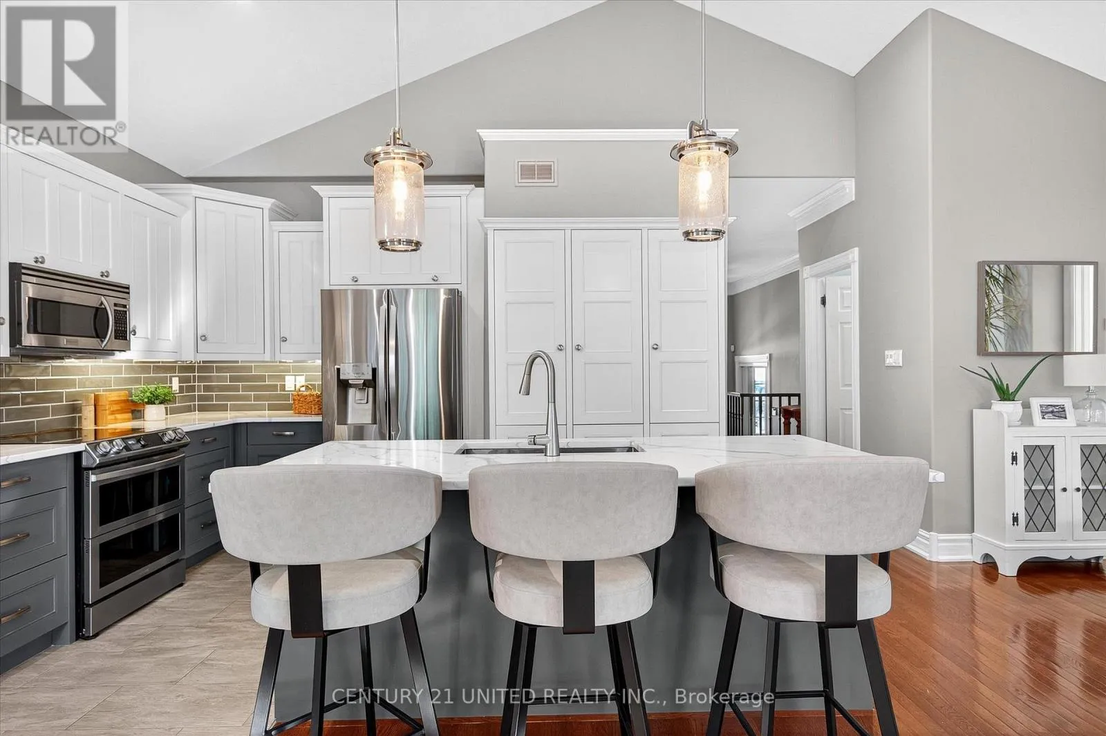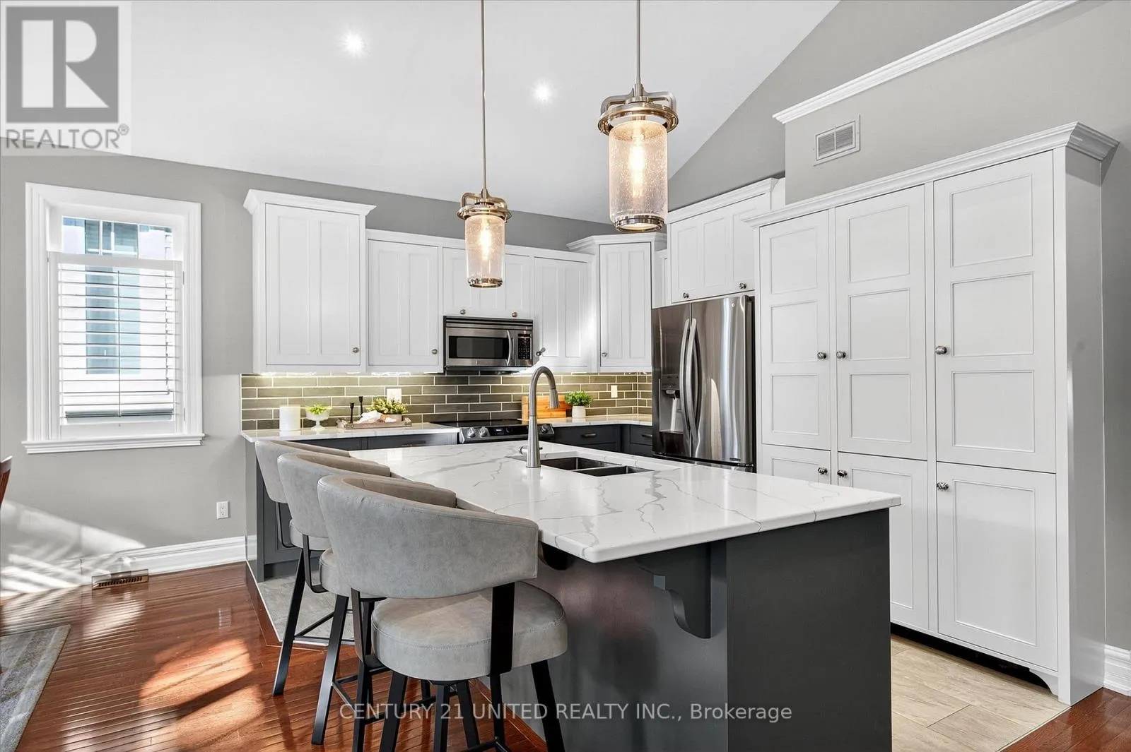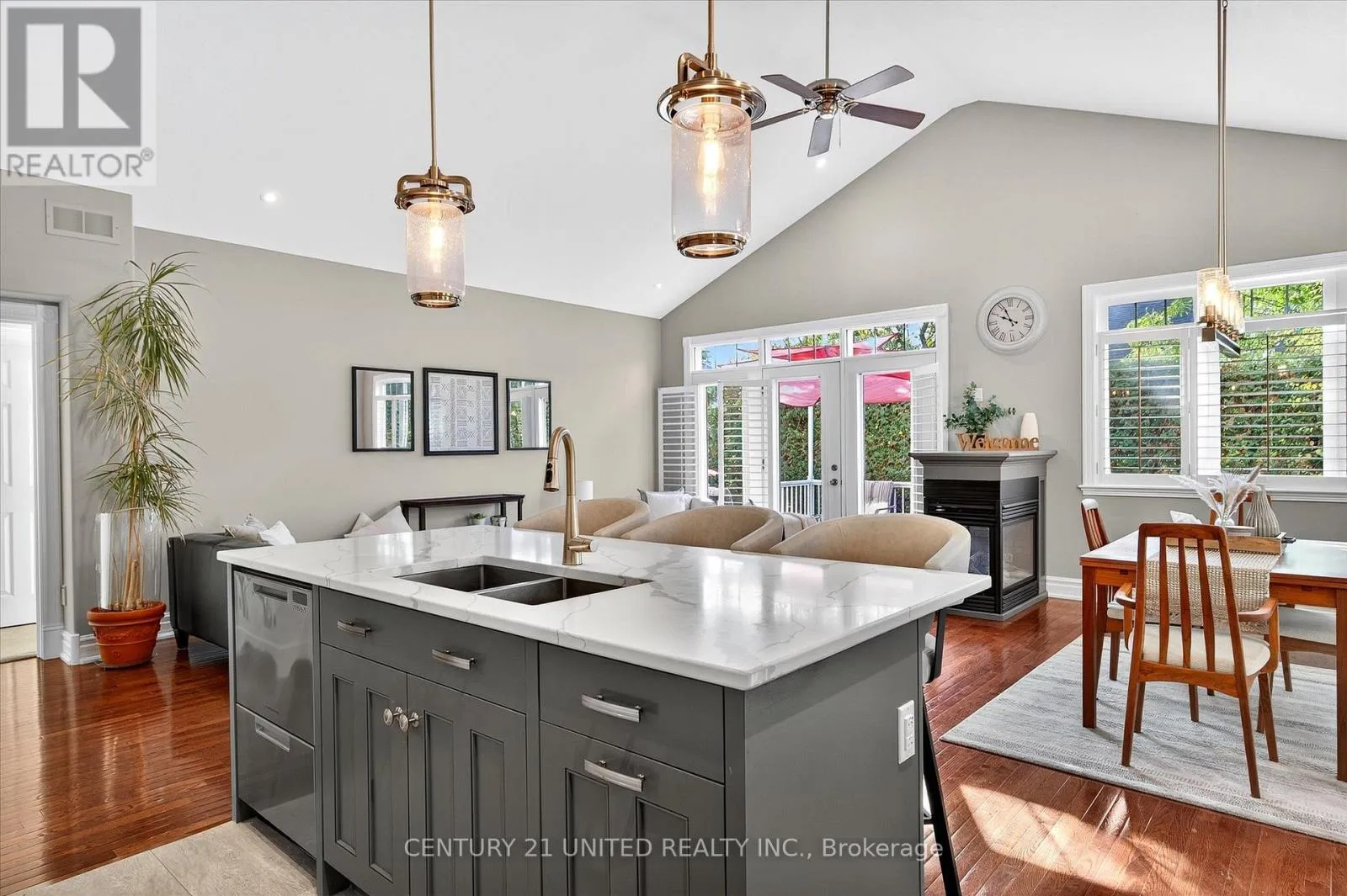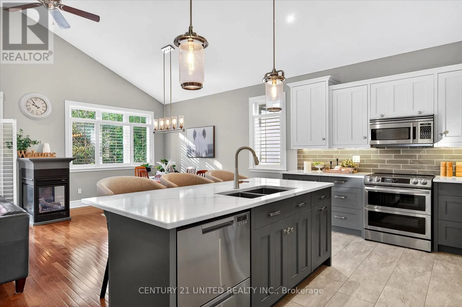 Cross Streets: Sherburne Street. ** Directions: From Lansdowne St W, turn right onto Sherburne Street, continue onto Brinton Dr. Luxury Living near Lock 19! This beautifully appointed 2+2-bedroom, 3 bath raised bungalow exudes elegance. The main living area features hard surfaces throughout with a bright, open concept living space, with vaulted ceiling, that combines the living room, dining room and kitchen with natural separations provided by the three-sided gas fireplace and serviced kitchen island with room for seating. Spacious kitchen with SS appliances including double oven and pantry nearby. The living room exits onto the back patio for convenient hosting or outdoor cooking in a very private backyard. The laundry is located on the main floor, and all four bedrooms are generously sized with a primary that features a 4-piece ensuite and walk in closet. The lower level has ample storage room, a third 4-piece bathroom, a second gas fireplace in the rec room and nine-foot ceilings providing lots of air space. Many inclusions are offered with purchase and pre-inspected for your convenience. Don't miss your chance to make this gem your own! (id:27476)