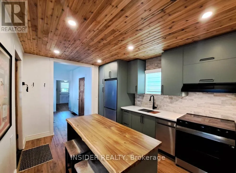 Cross Streets: Monaghan Road. ** Directions: Brown St and High St. An Absolute Stunning Newly Renovated Century Home on an Extra Wide Lot. Private Treed Backyard, Covered 20 ft Front Porch,Quiet Side Street, Parking for 4 Large Vehicles. Amazing New Modern Kitchen with Quartz Countertops, Samsung Appliances, Kitchen Island, Soft close Drawers, Cedar Plank Ceiling with Pot Lights on Dimmer. A Bespoke Coffee Station, Stone Backsplash, 2 Windows Providing lots of Sunlight Perfect for Entertaining. Oak Laminate Flooring on Main, with Original Floors on Stairs, 2nd Level and Powder room. 2 Laundry Stations, One On Lower Level and One Next to Bedrooms for Easy Convenience. Lots of Original Features Kept like, Front door with knocker,9 inch Baseboards, Tall Ceilings on main, Brick in The Kitchen. A 10x10Ft insulated He/She shed next to the home that is currently being used as a gym. A Utility Shed towards the Back or the property for all your storage needs.Excellent Location with Shopping on Lansdowne, Small park on the corner and Jackson Park just a short drive. Home shows amazing and every updated Feature is done to the Highest Standards. A true Gem! (id:27476)