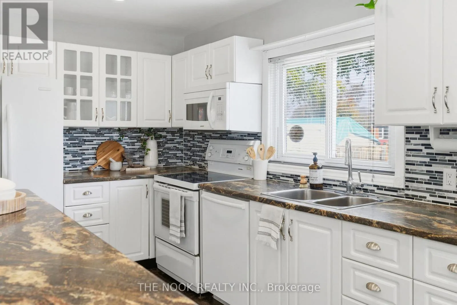 Cross Streets: Monaghan/Braidwood. ** Directions: Rose Ave / Monaghan Road. This delightful 2+1 bedroom residence is conveniently located within walking distance of schools, parks, and all major amenities! Meticulously finished from top to bottom, it's an ideal place to begin and nurture your family. The updated kitchen features a spacious breakfast bar that opens to a sun-filled living room and offers a bay window, hardwood floors, and a stunning stone accent wall with an electric fireplace. The formal dining room is the perfect spot for hosting family dinners, with additional space available in the solarium, ideal for morning coffees or game nights. The upper floor includes two bedrooms, both equipped with built-ins, while the primary bedroom offers the convenience of a 2-piece ensuite. The finished lower level features a wet bar, large recreation room and additional bedroom. Step outside to find a fully fenced backyard, providing ample space for entertaining, gardening, or lawn games! (id:27476)