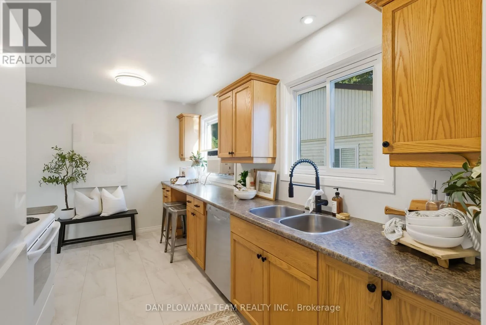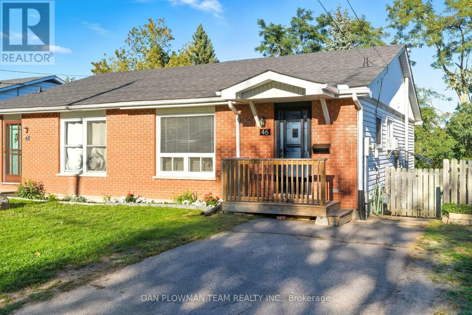 Cross Streets: Sherbrooke St & Alexander Ave. ** Directions: North on Alexander Ave from Sherbrooke St. First Time Buyers And Downsizers Your Golden Opportunity Awaits You! 46 Alexander Ave Is In A Great Neighbourhood In The City Of Peterborough. This 2 + 1 Bedroom Semi-Detached Bungalow Is The Perfect Move In Ready Family Home And Has Been Recently Renovated With Newer Flooring Throughout The Main Floor And Kitchen. Main Floor Features Kitchen And Separate Dining / Large Living Room Area And Updated 4-Piece Bathroom, Along With 2 Good Sized Bedrooms. Convenient Separate Side Entrance Leads You Downstairs To A Freshly Painted Finished Basement With Newer Carpet. Both Rec Room And 3rd Bedroom Have Above Grade Windows. Large Workshop, Laundry Room And Plenty Of Storage Space. Step Outside To Your Private Backyard With Beautiful Large Trees. Bus Route, Hospital, All Amenities And Shopping Are All Within A Short Drive. Gas Is Available On Property And Could Potentially Be Converted To Forced Air Gas. (id:27476)