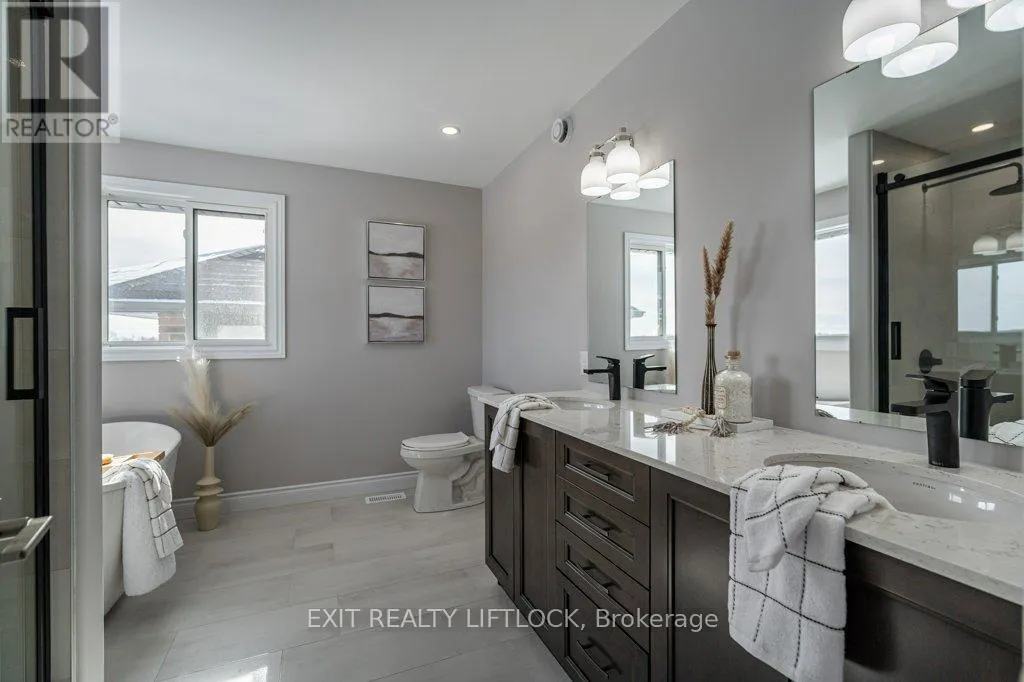 York Drive Welcome to 802 Steinberg Court in the sought after Trails of Lily Lake community. This stunning home, quality-built by Peterborough Homes, offers the perfect blend of elegance, space, and natural beauty, backing onto serene conservation land for ultimate privacy. With over 3,700 square feet of finished living space, this exceptional home features five spacious bedrooms and four and a half bathrooms, including two primary suites-ideal for multi-generational living or accommodating guests in comfort. The great room is warm and inviting, centered around a beautiful gas fireplace, while a second fireplace in the expansive lower-level recreation room adds even more charm and coziness. The kitchen is a true showpiece, designed for both function and style, with an oversized island, sleek quartz countertops, and a stylish backsplash. From here, you can take in the breathtaking views of the conservation area, creating a peaceful retreat right in your own backyard. Situated just steps from the Trans Canada walking trails, this home is perfect for those who love the outdoors while still enjoying the convenience of a prime location. Thoughtfully designed with many upgrades and premium finishes throughout, this is a home that must be seen to be truly appreciated. The lower level of the home is finished and has large recreation room plus 5th bedrooms, 3-pc bath and a large storage and Utility room (6.33m x 4.04m). See floor plans in the document file. I know you won't be disappointed! (id:27476)