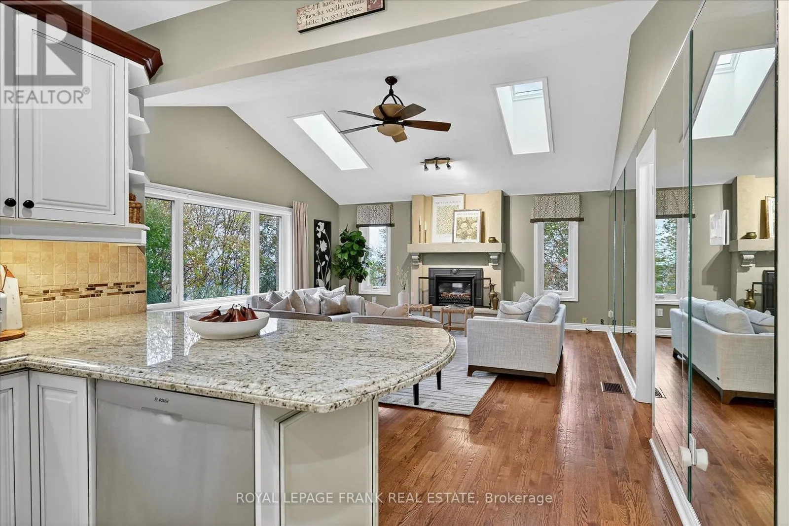Sherbrooke St Wallis Dr Stunning executive bungalow in the west end of Peterborough, located on a dead end cul de sac near Kawartha Golf and Country Club perched on a ravine lot with a spectacular view over the city to the southeast. This custom-built home is exceptionally well cared for inside and out. As a retirement bungalow you can live comfortably on one floor and have the walkout separate entrance lower level for guests or extended family. As a family home you have 4 bedrooms, 3.5 baths, 3 separate living spaces, 2 full kitchens for entertaining or a ready-made in-law suite with its own entrance for mom and dad. It's very private while sitting on the entertainment size deck off the main floor family room in the summer surrounded by trees and has spectacular city views in the winter when the leaves are down. Close to Monseigneur Jamot, St. Catherines, James Strath and Crestwood schools. Presale inspection available. (id:27476)