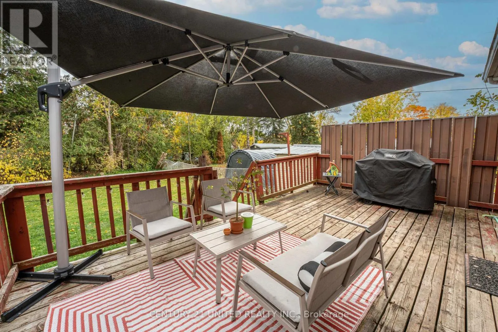 Bennet St & Chemong Road All-brick bungalow in Peterborough's north end offering a large yard! This 2-bedroom, 1-bathroom home sits on a large 63 150ft fully fenced lot-perfect for first-time buyers, young families, or anyone looking to downsize. On the main floor, you'll find a bright living room with walk-out to deck & back yard, a separate dining area, kitchen, two bedrooms, and a 4pc bathroom. The partially finished basement provides bonus living space with a spacious rec room, a clean laundry area, and a generous storage zone for belongings, hobbies, or a workshop. Outside, the expansive yard is ideal for kids, pets, or entertaining and yard games, and is complemented by a detached 1-car garage and ample parking. Located close to parks, schools, and everyday amenities for maximum convenience -don't miss this opportunity, book your viewing today! (id:27476)