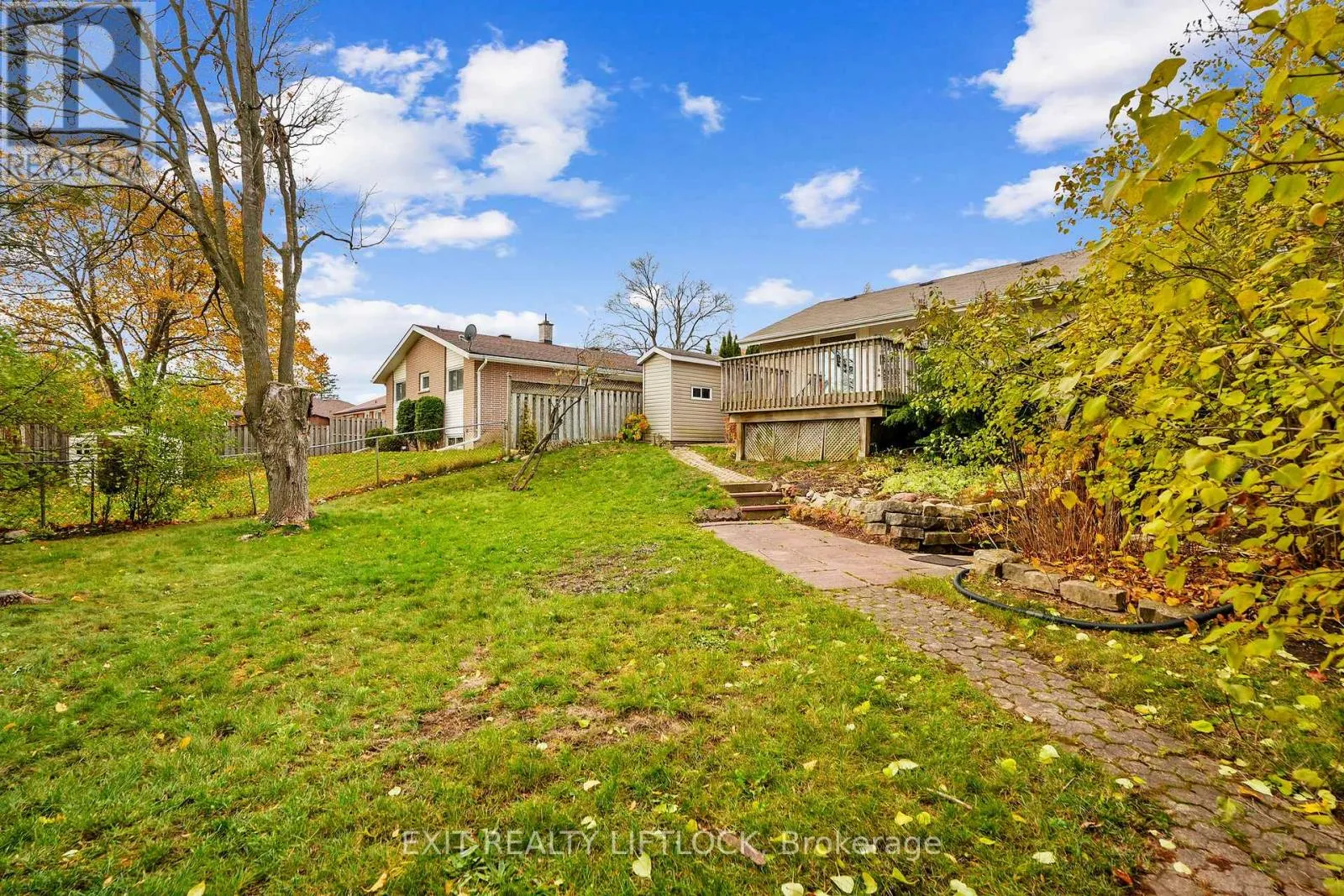 Cross Streets: Marina at Royal Drive. ** Directions: Marina, North on Royal Dr. North-end brick bungalow in one of Peterborough's most desirable neighbourhoods. Bright main floor with hardwood floors and a spacious living room that walks out to a large deck overlooking a private, tree-lined yard. The finished lower level features a walkout to a covered patio, offering excellent potential for an in-law or income setup. Close to schools, Trent University, popular trails, parks, and the Peterborough Zoo - the perfect mix of comfort, convenience, and natural beauty. (id:27476)