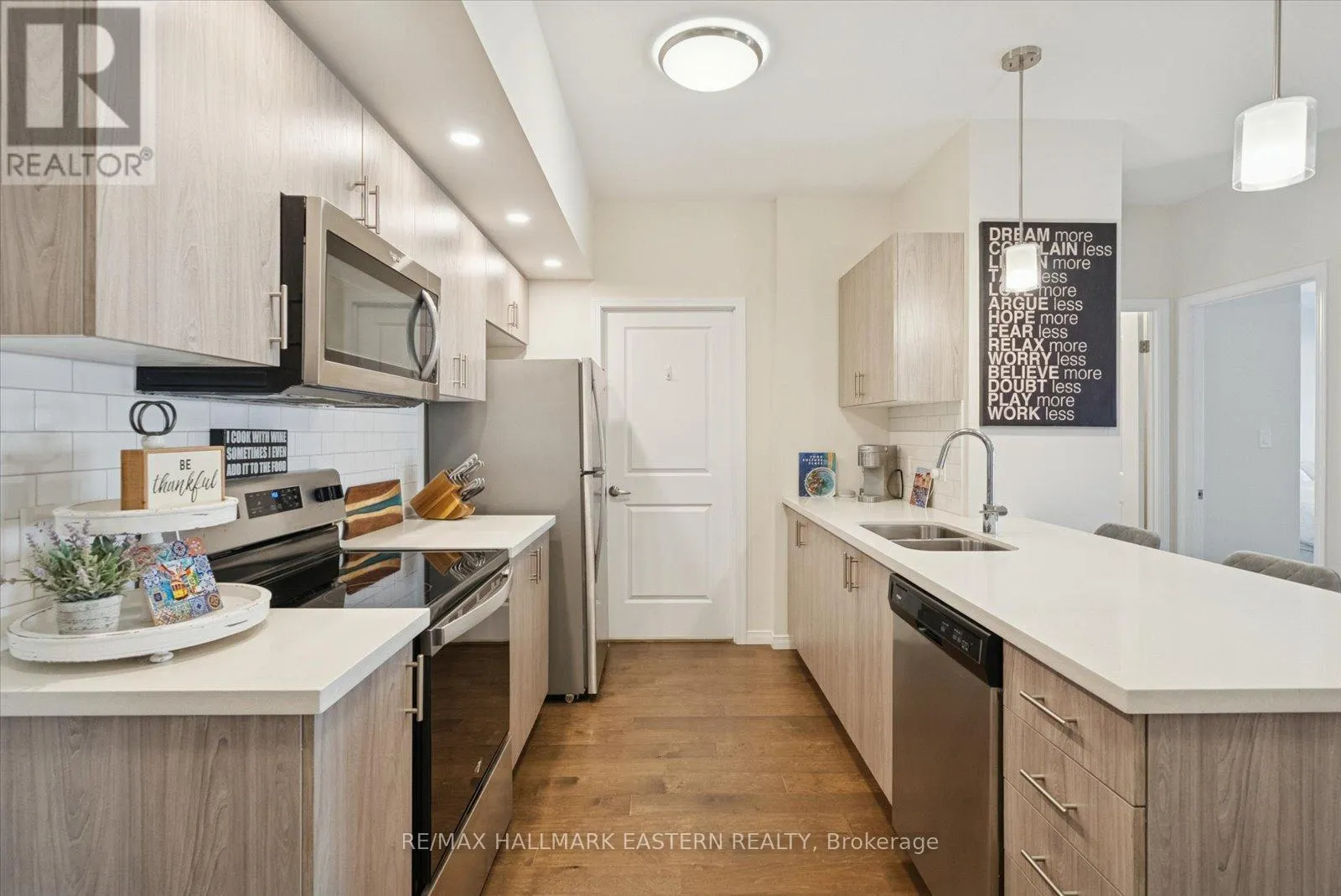 Cross Streets: Florence Dr/Chandler Cres. ** Directions: While heading west on Parkhill Rd, make a right onto Chandler Cres, make a right onto Florence Dr, condo entrance is on the right. **Watch The Reel - Press Play & Fall in Love!!** This Condo Has It All - Peterborough's Premier West-End Community! Located in the prestigious Jackson Creek Meadows neighbourhood on the edge of the city, this modern condominium offers the perfect blend of convenience and style. Situated on the first level, this 2-bedroom, 2-bathroom unit comes with 1 parking space and visitor parking. Inside, you'll find an open-concept layout designed for comfort and entertaining. The kitchen features quartz countertops, modern lighting, pot lights throughout, an island with seating, and a pantry for extra storage. The living room walks out to an oversized balcony. The primary bedroom includes a walk-in closet and a private ensuite with a glass shower. A separate laundry room adds practicality and convenience. Additional highlights include: gas furnace, central air, Bell Fibe internet, and so much more! Don't miss this move-in-ready condo in one of Peterborough's most sought-after locations! Come take a look and make this beautiful space yours today. (id:27476)