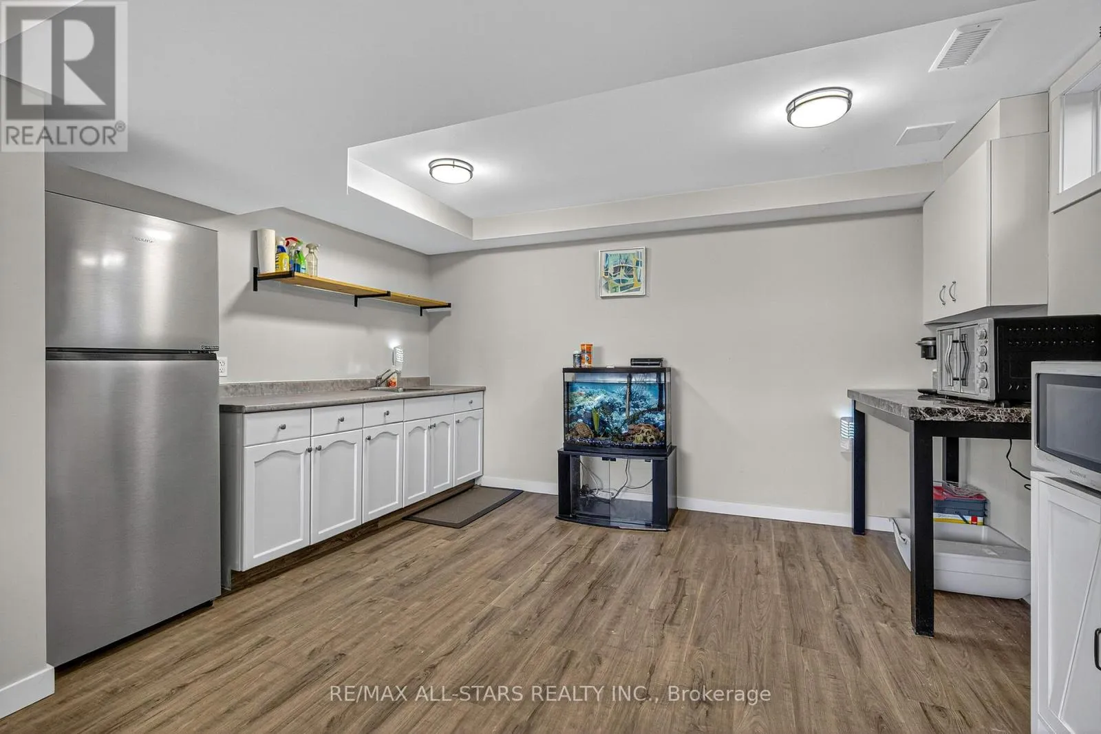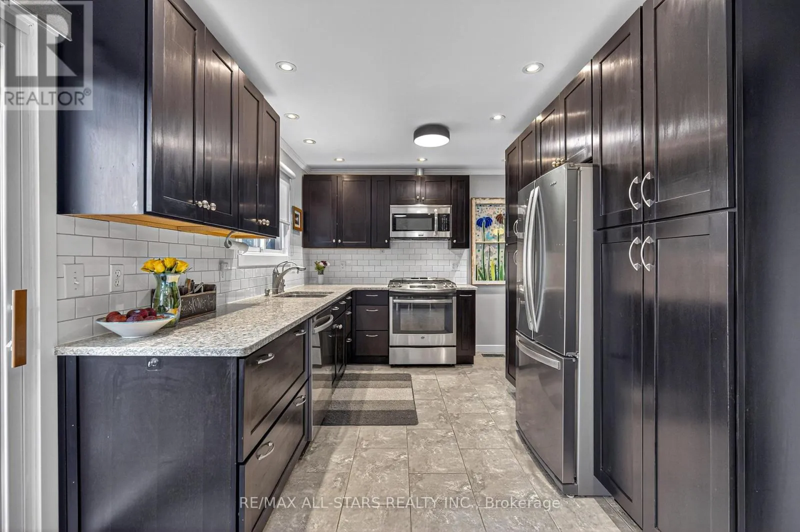Kawartha Heights Blvd/Brealey Dr. This stunning 2+1 bedroom, 3-bath all-brick bungalow in the west end has been beautifully renovated and sits on a picturesque 0.30-acre lot. Tastefully finished in soft tones of gray and white, this home shows exceptional pride of ownership with thoughtful updates throughout. The main floor offers a bright living room with hardwood flooring, and a modern kitchen featuring quartz countertops, ample cabinetry a gas stove, and an eating area with sliding doors leading to a 25' 11" x 9' 8" deck perfect for enjoying views of the spacious rear yard and the west end. The primary bedroom includes a 4-piece bath and two double closets, while the second bedroom features a built-in desk and closet, conveniently located near another 4-piece bath. The fully finished lower level is bright and versatile, complete with a large recreation room with a gas fireplace, a wet bar/entertainment area with cabinetry and sink, a third bedroom, 4-piece bath, laundry area, and a utility/workshop room, ideal for an in-law suite with a separate entrance. A single-car garage and beautifully maintained grounds complete this move-in-ready home. (id:27476)