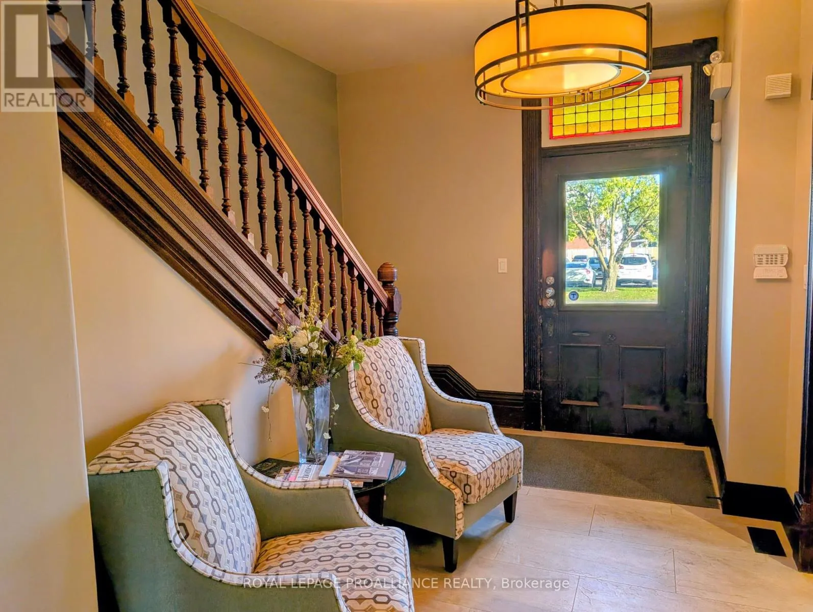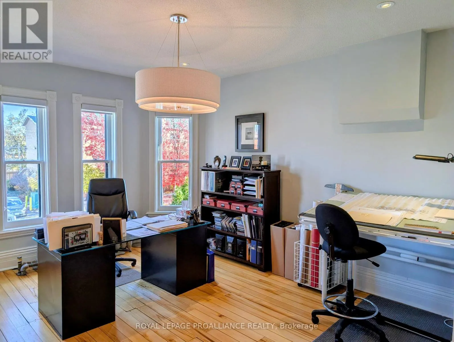 Cross Streets: Rubidge & King Streets. ** Directions: West side of Rubidge St. south of King St. Located above one of Peterborough's most prominent & successful local design firms, lease the second floor of a beautifully restored century building, perfectly situated on the edge of downtown Peterborough. This setting provides a sophisticated, professional environment with character and convenience. The space features three bright and spacious private offices with abundant natural light, along with access to a modern, shared bathroom and a dedicated copier room maintained alongside the successful owner's design firm. You'll be steps away from the Kawartha Cardiology Clinic and surrounded by various other professional offices, with excellent visibility directly across from the Rubidge Retirement Home. On-site and on-street parking options are available, with all downtown amenities and public transit close by. This professional space was previously used as a law office, the space lends itself well to an independent lawyer, insurance firm, design professionals, engineers, financial planners, web or graphic designers, or another professional user seeking great space, with the added benefit of operating above a well-known local business that enhances credibility and local presence. The kind of address that elevates both your workflow and your client experience. (id:27476)