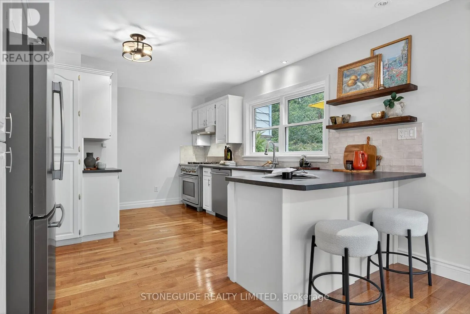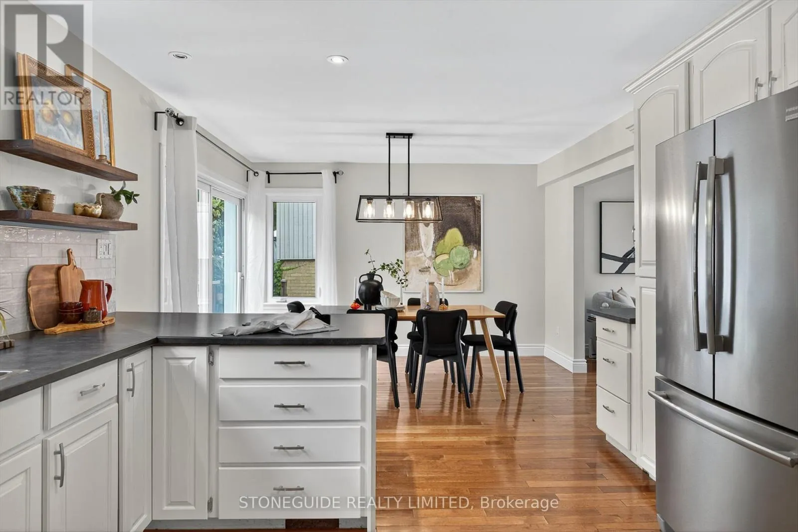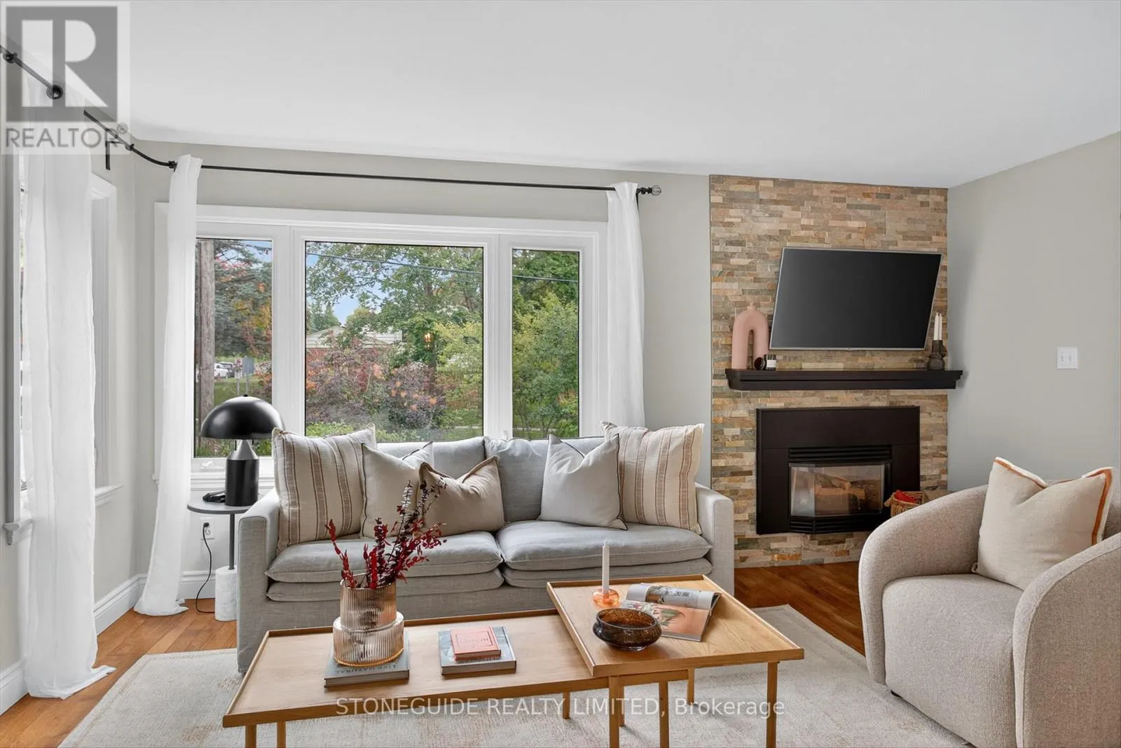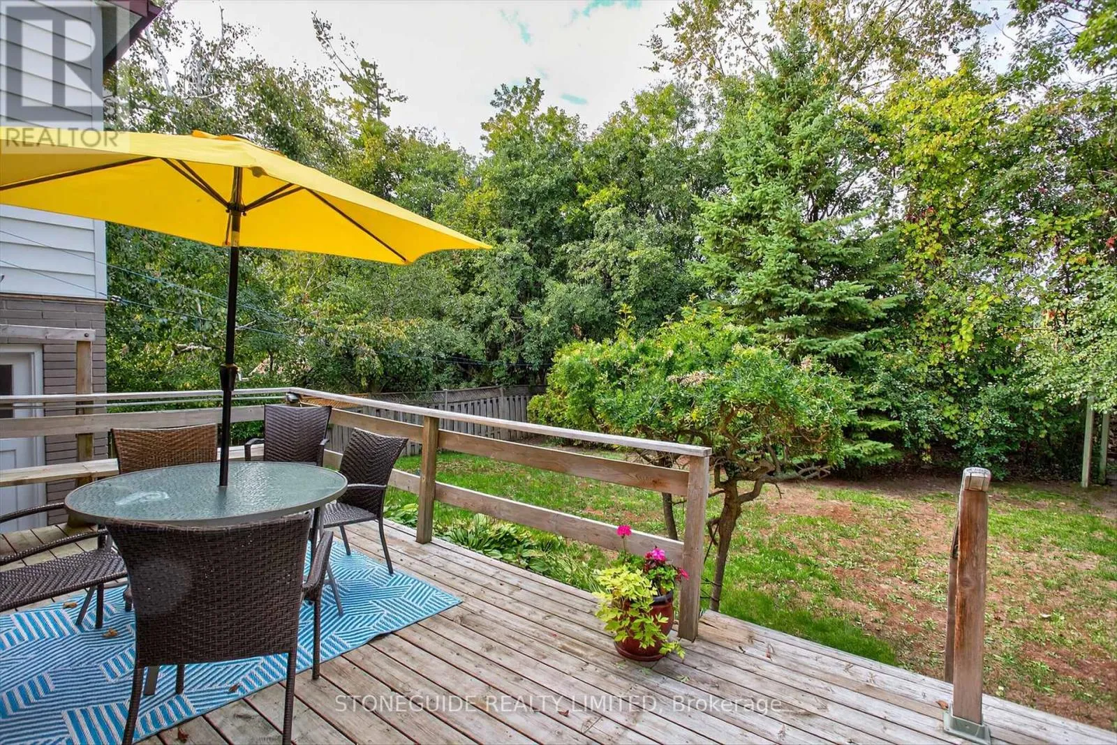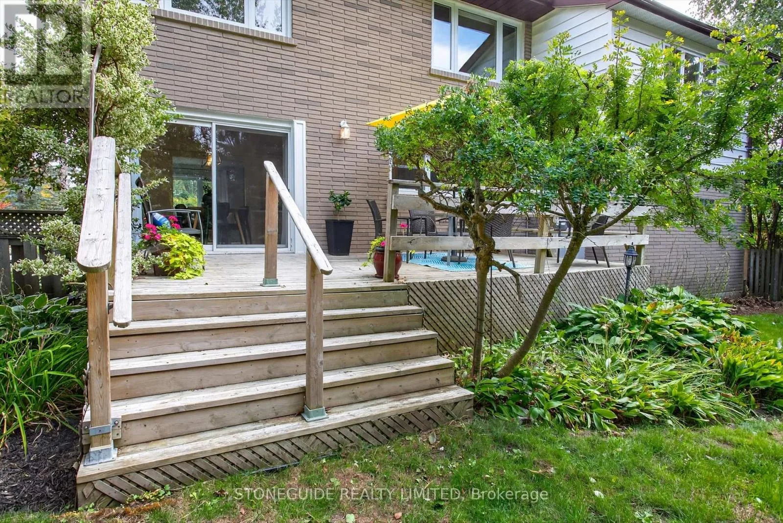 Cross Streets: Weller. ** Directions: From Monaghan Rd, head West to Hopkins Ave. Nestled on a quiet, tree-lined street in the highly sought-after West End neighbourhood, this inviting four-bedroom, 2 bathroom home offers the perfect blend of comfort, functionality, and convenience ideal for families and professionals alike. Enjoy the ease of living just minutes from top-rated schools, the Peterborough Regional Health Centre, local clinics, pharmacies, and a grocery store all while coming home to a peaceful residential setting. Step inside to discover a bright, welcoming interior flooded with natural light from large windows that beautifully frame the surrounding greenery. The main floor offers a seamless flow between the living, dining, and kitchen areas -perfect for everyday living and effortless entertaining. From the kitchen, patio doors lead to a generous deck and a fully fenced backyard, complete with mature trees that provide shade and privacy. The home also backs onto St. Peter Secondary School, adding to the sense of open space. Upstairs, four spacious bedrooms offer plenty of room for the whole family. The primary bedroom features a large double closet, cozy gas fireplace, and peaceful views creating a relaxing retreat at the end of the day. Each additional bedroom is freshly painted and boasts hardwood flooring, offering flexibility for children's rooms, guest space, a home office, or creative studio. There is garage access to the house and the lower level features a recreation room for kids to hang out or to watch the big game and also has storage in the utility/laundry area. With its unbeatable location, freshly updated interiors, and family-friendly layout, this pre-inspected and move-in-ready home is a rare find in one of Peterborough's most desirable neighbourhoods. (id:27476)