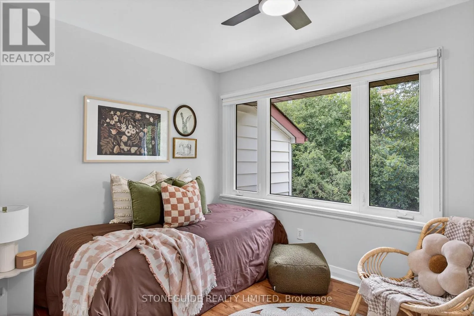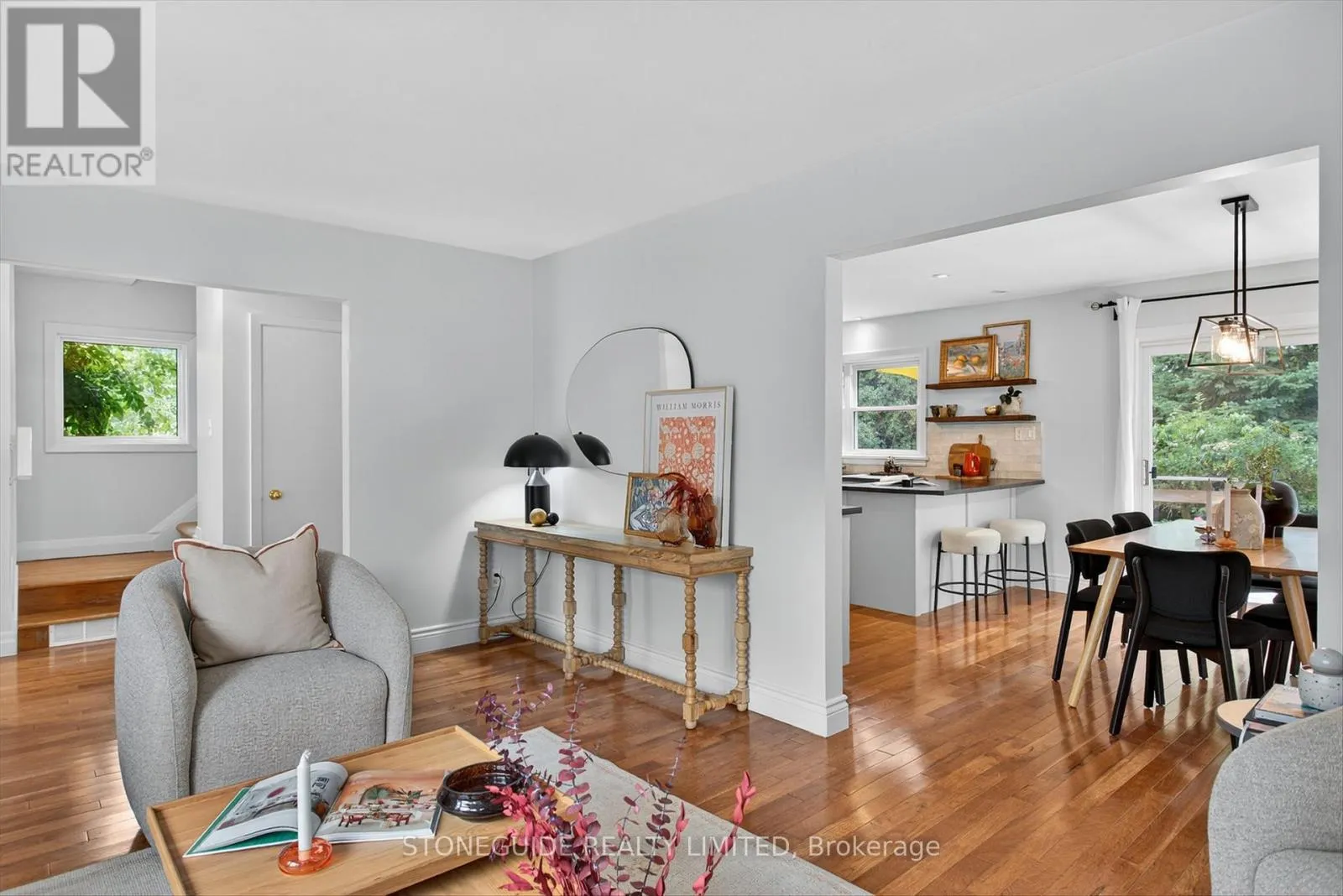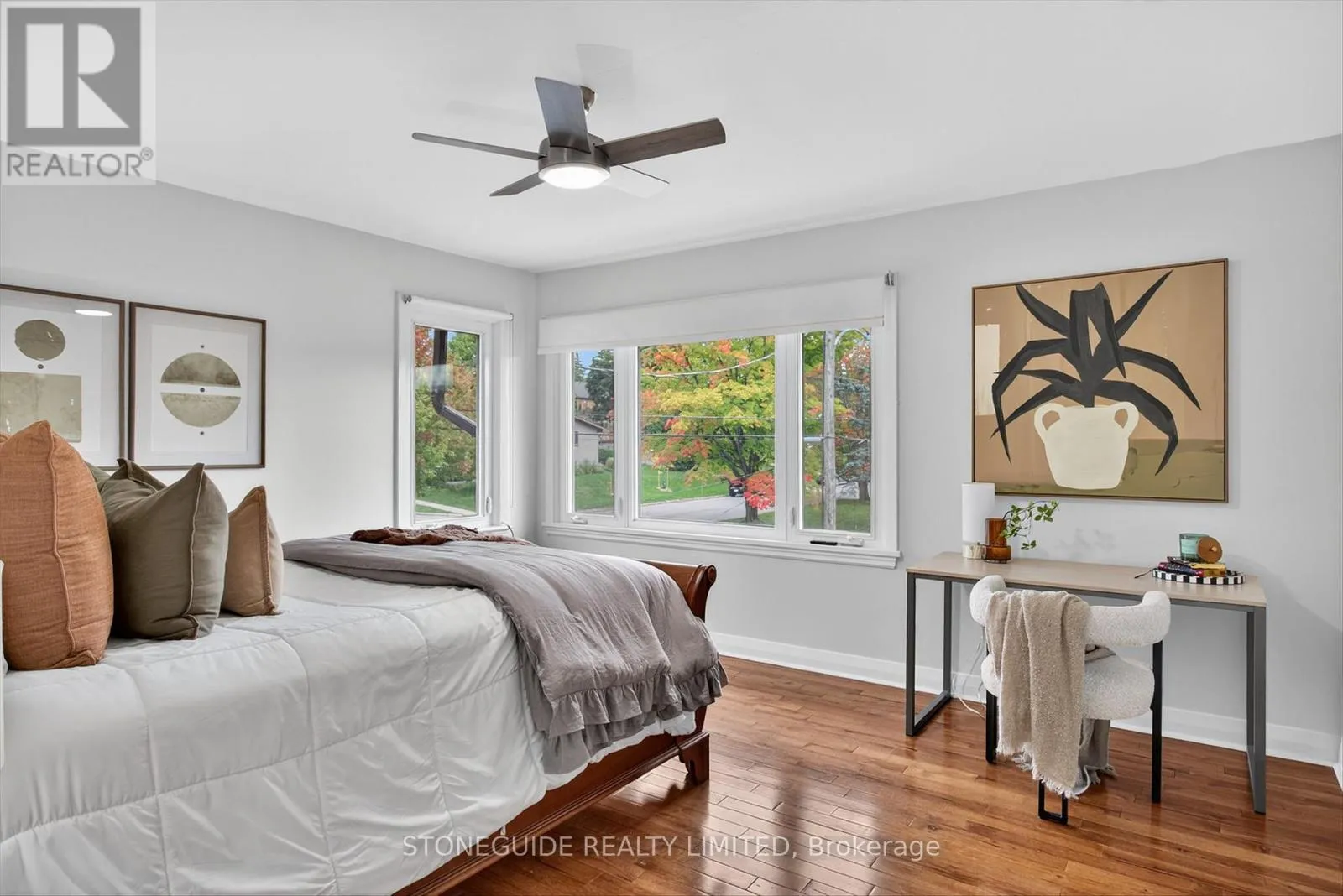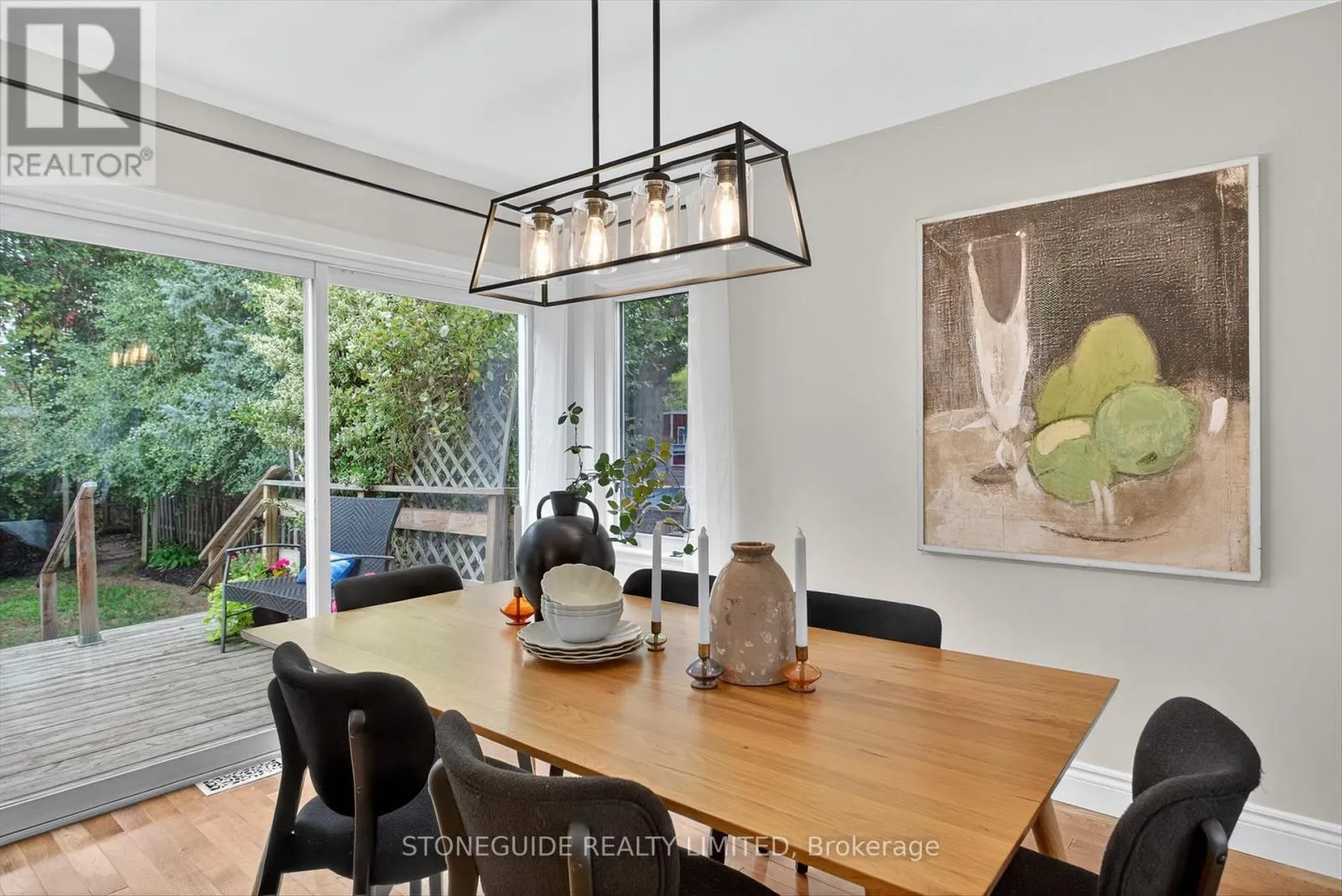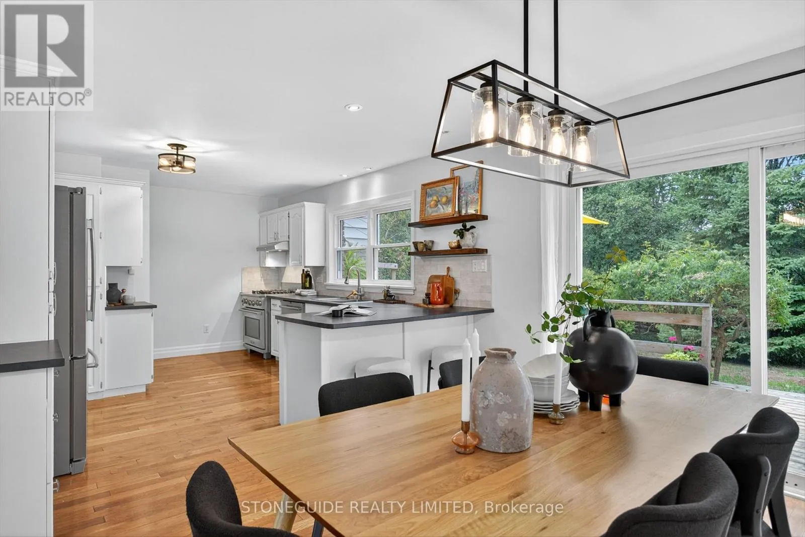 Cross Streets: Weller. ** Directions: From Monaghan Rd, head West to Hopkins Ave. Nestled on a quiet, tree-lined street in the highly sought-after West End neighbourhood, this inviting four-bedroom, 2 bathroom home offers the perfect blend of comfort, functionality, and convenience ideal for families and professionals alike. Enjoy the ease of living just minutes from top-rated schools, the Peterborough Regional Health Centre, local clinics, pharmacies, and a grocery store all while coming home to a peaceful residential setting. Step inside to discover a bright, welcoming interior flooded with natural light from large windows that beautifully frame the surrounding greenery. The main floor offers a seamless flow between the living, dining, and kitchen areas -perfect for everyday living and effortless entertaining. From the kitchen, patio doors lead to a generous deck and a fully fenced backyard, complete with mature trees that provide shade and privacy. The home also backs onto St. Peter Secondary School, adding to the sense of open space. Upstairs, four spacious bedrooms offer plenty of room for the whole family. The primary bedroom features a large double closet, cozy gas fireplace, and peaceful views creating a relaxing retreat at the end of the day. Each additional bedroom is freshly painted and boasts hardwood flooring, offering flexibility for children's rooms, guest space, a home office, or creative studio. There is garage access to the house and the lower level features a recreation room for kids to hang out or to watch the big game and also has storage in the utility/laundry area. With its unbeatable location, freshly updated interiors, and family-friendly layout, this pre-inspected and move-in-ready home is a rare find in one of Peterborough's most desirable neighbourhoods. (id:27476)