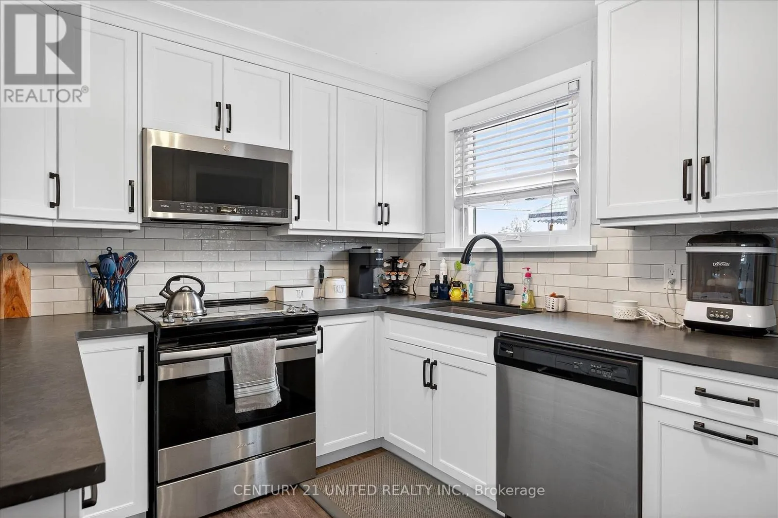 Cameron St & Erskine Ave All-brick bungalow in Peterborough's desirable south end, minutes to Hwy 115, Costco, shopping mall, schools, and beautiful Otonabee River trails. Fully fenced yard with a large deck shaded by mature maples and spruce - perfect for family time or entertaining. This 4 bedroom,2 full bathroom home features a fully finished basement with second kitchen, separate side entrance, modern main level bathroom, pot-lights throughout, separate laundry room, a 2021renovated kitchen, updated windows (2019) and new A/C (2019). Come take a look and make this home yours! (id:27476)