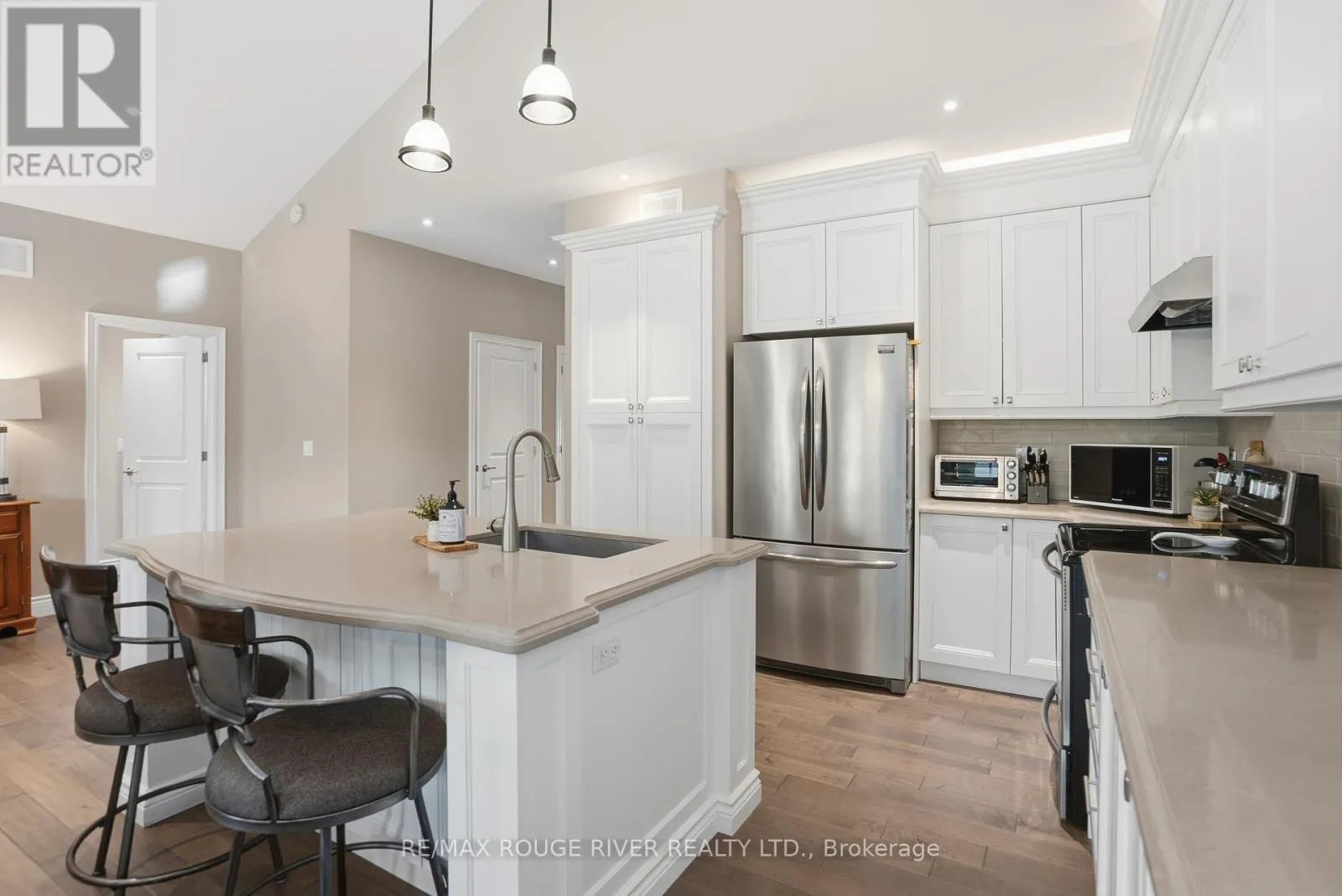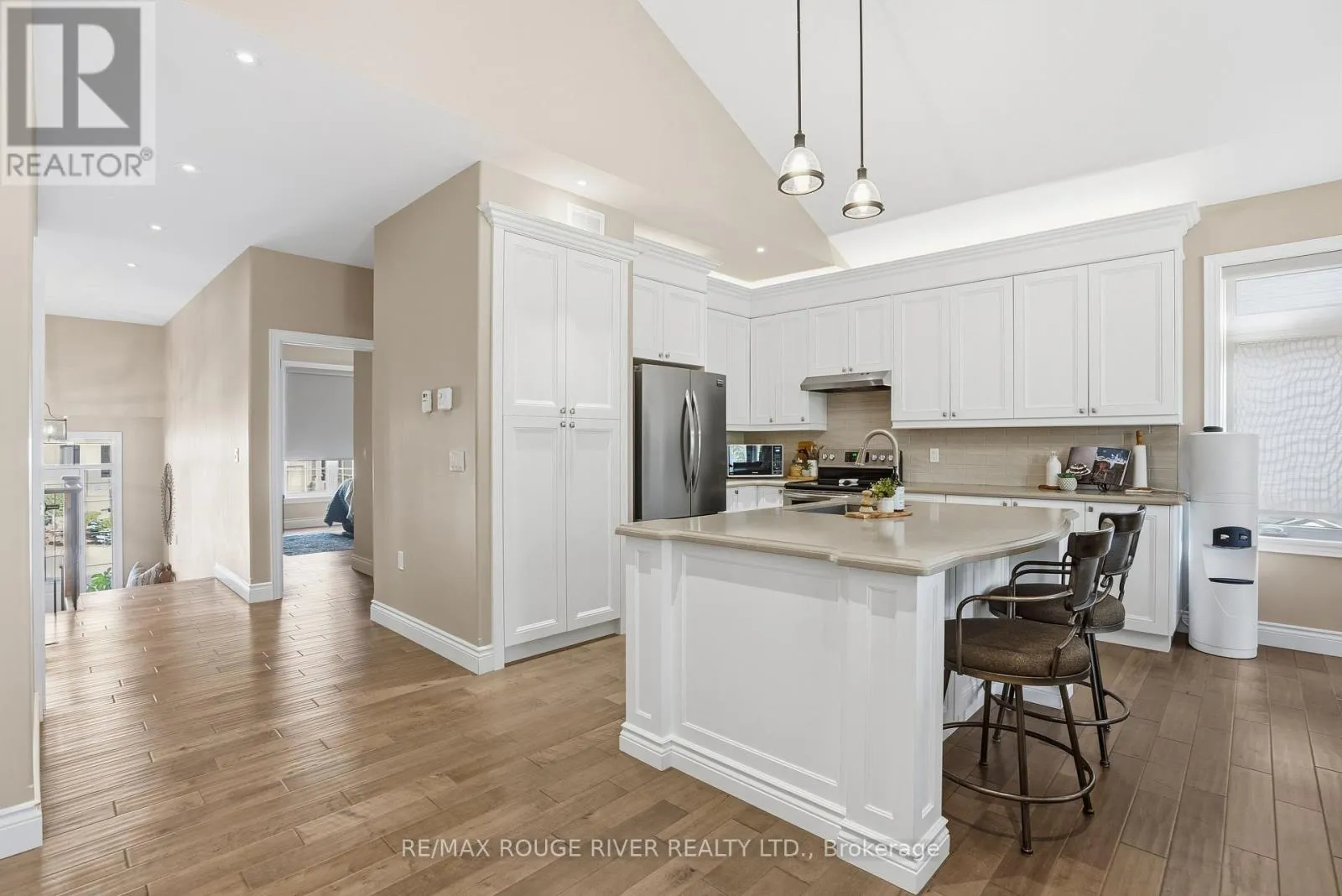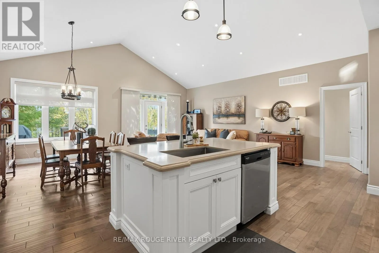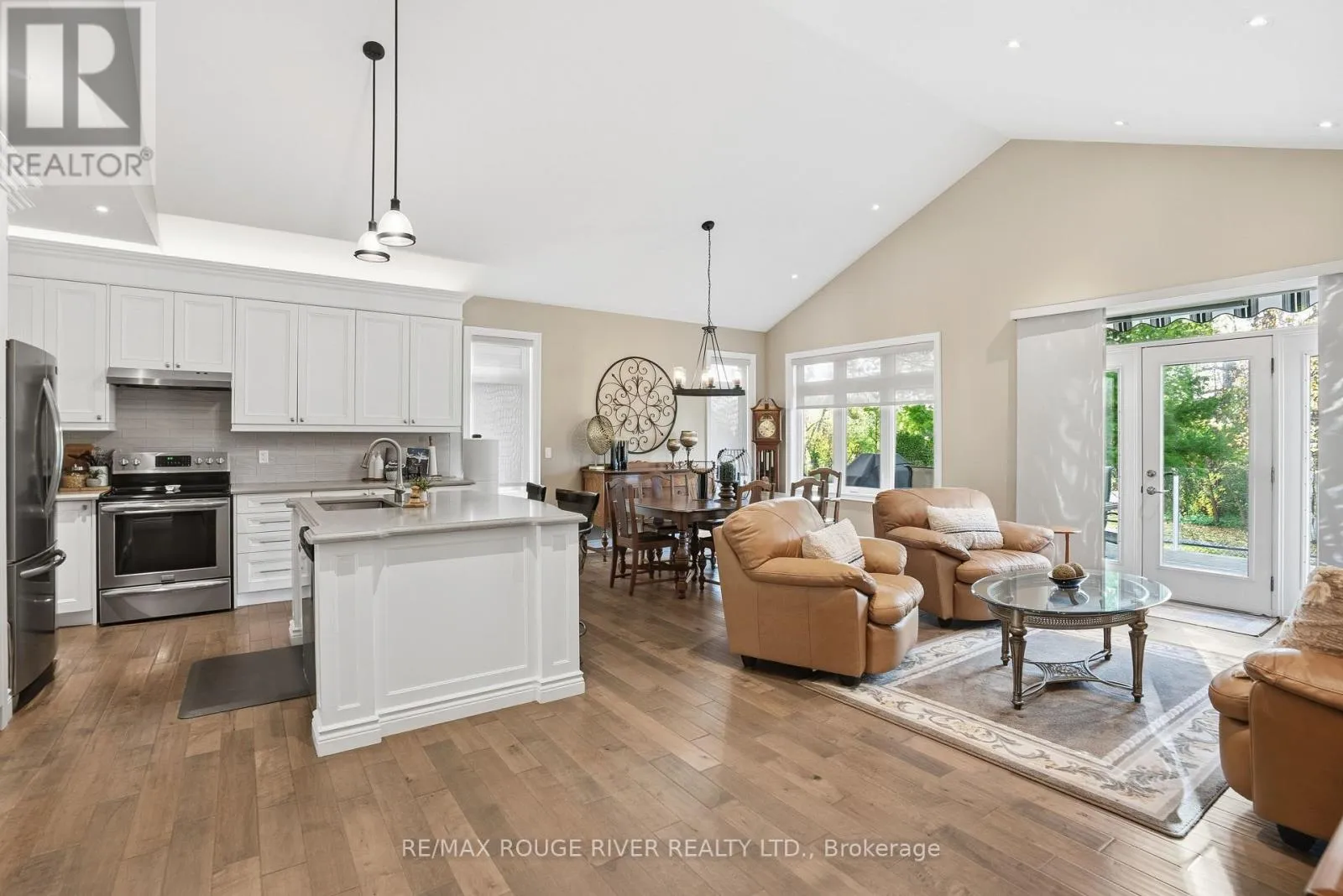 Cross Streets: Montgomery Street and Lockside Drive. ** Directions: LANSDOWNE ST EAST OF MEMORIAL CENTRE, TURN SOUTH ON LOCK ST, TO MONTGOMERY TO BRINTON. Welcome to 17 Lockside Drive, where Luxury Meets Lifestyle. Discover this stunning 2+2 bedroom, 3-bath raised bungalow nestled in one of Peterborough's most sought-after and peaceful neighbourhoods. This residence blends timeless elegance with modern comfort, all while offering picturesque views of the Otonabee River. Step inside and be greeted by soaring vaulted ceilings and an abundance of natural light that highlight the refined finishes throughout. The gourmet kitchen is a chef's delight, featuring a center island, quartz countertops, premium stainless-steel appliances, and plenty of storage, ideal for everything from relaxed family meals to elegant entertaining. The open-concept living and dining areas, illuminated by thoughtfully placed pot lights, create a warm, inviting atmosphere, perfect for gatherings or quiet evenings at home. Enjoy the convenience of garage access and a main floor laundry room, thoughtfully designed for everyday ease. The bathrooms feature upgraded counters, adding a touch of luxury to each space. Downstairs, the bright lower level impresses with high ceilings, lots of pot lights, a cozy stone fireplace, and two spacious bedrooms, ideal for guests, family, or a home office or studio. Step outside to your private backyard oasis with direct access to the riverside trail and water, perfect for kayaking, morning walks, or simply enjoying the serene natural setting. A gas hook-up for your BBQ on the large deck and easy door access from the garage make outdoor entertaining effortless and enjoyable. 17 Lockside Drive isn't just a home - it's a lifestyle. Every detail has been thoughtfully designed to offer beauty, comfort, and enduring appeal. (id:27476)