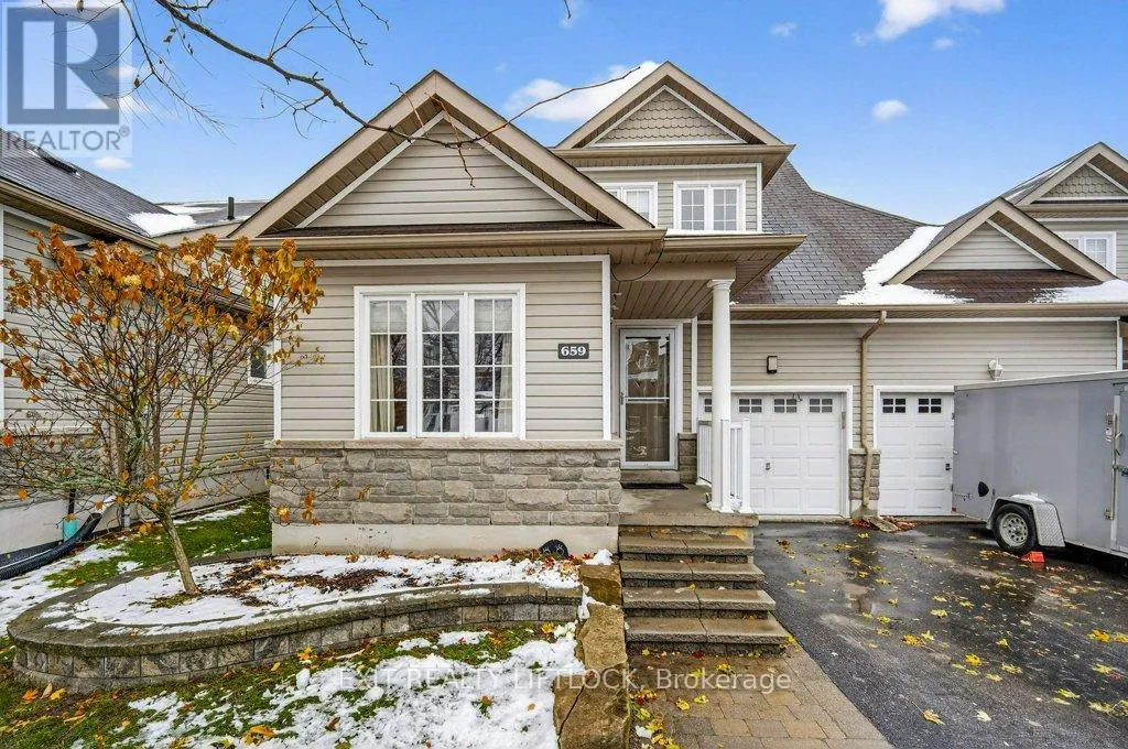 Cross Streets: Tully Crescent and Ireland Drive. ** Directions: Ireland Dr to Tully Cres, south on Tully Cres to 659. Conveniently located in Peterborough's sought-after West End, this deceptively spacious garden home offers the perfect blend of comfort and practicality. Close to parks, schools, and with quick access to HWY 115, it's ideal for families and commuters alike. This bright two storey layout features three generous bedrooms on the second floor, two full bathrooms, and a stylish modern kitchen with a large island - perfect for gathering and entertaining. The adjoining dining area opens to a fully fenced backyard, offering a space to relax or play. On the main floor, you'll find a welcoming living room and a versatile office that could easily serve as a fourth bedroom. The unfinished lower level provides excellent potential for future living space or storage. The future bathroom is already roughed-in. A paved driveway and attached single-car garage complete this wonderful home - ready to welcome its next owners. (id:27476)