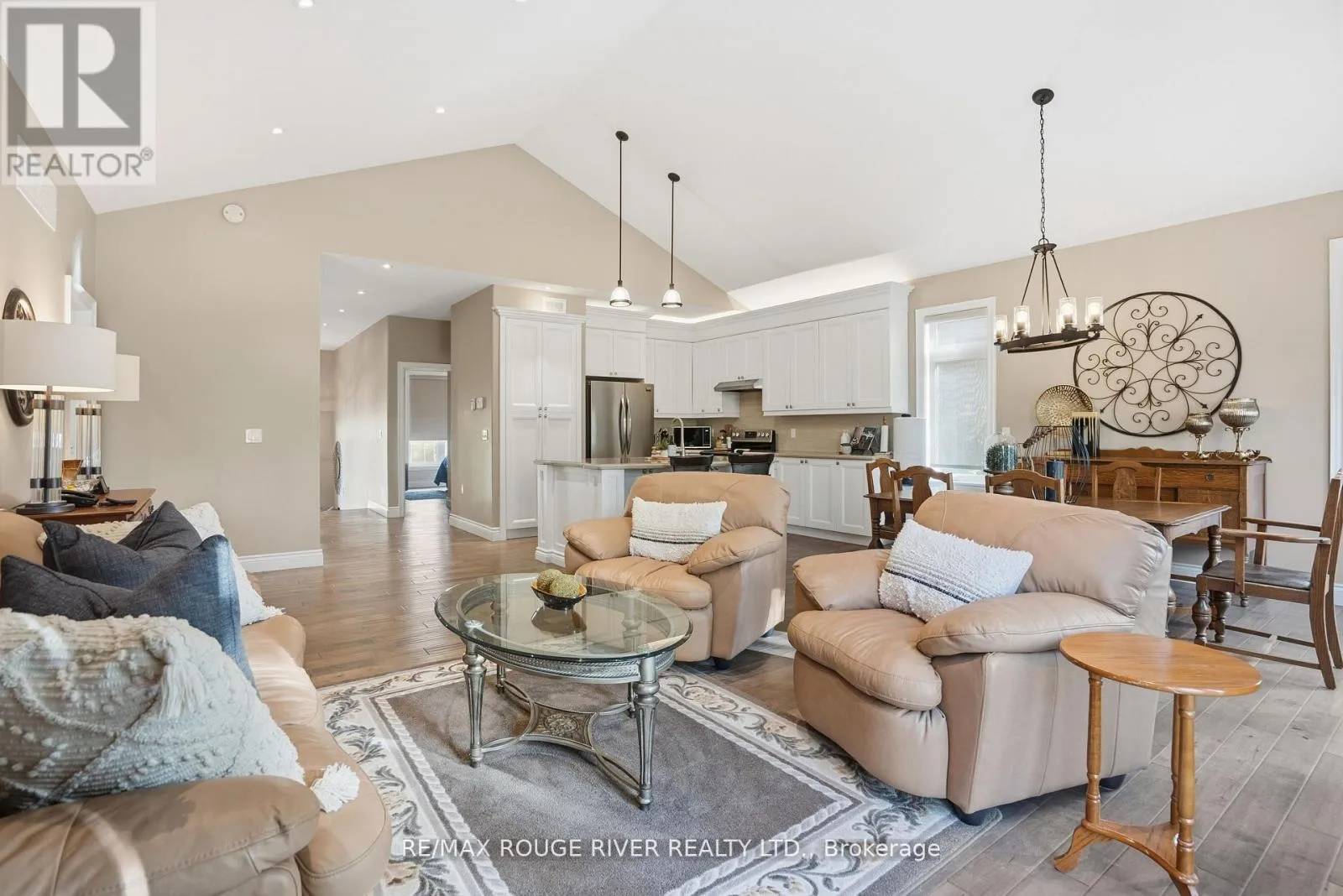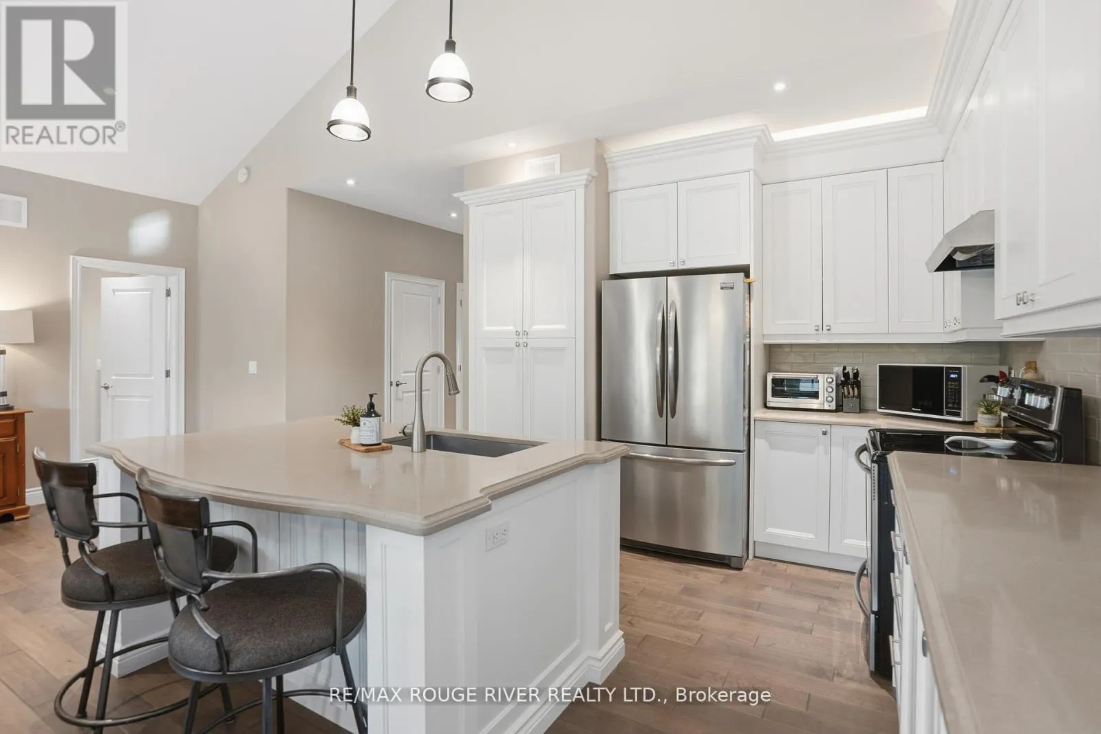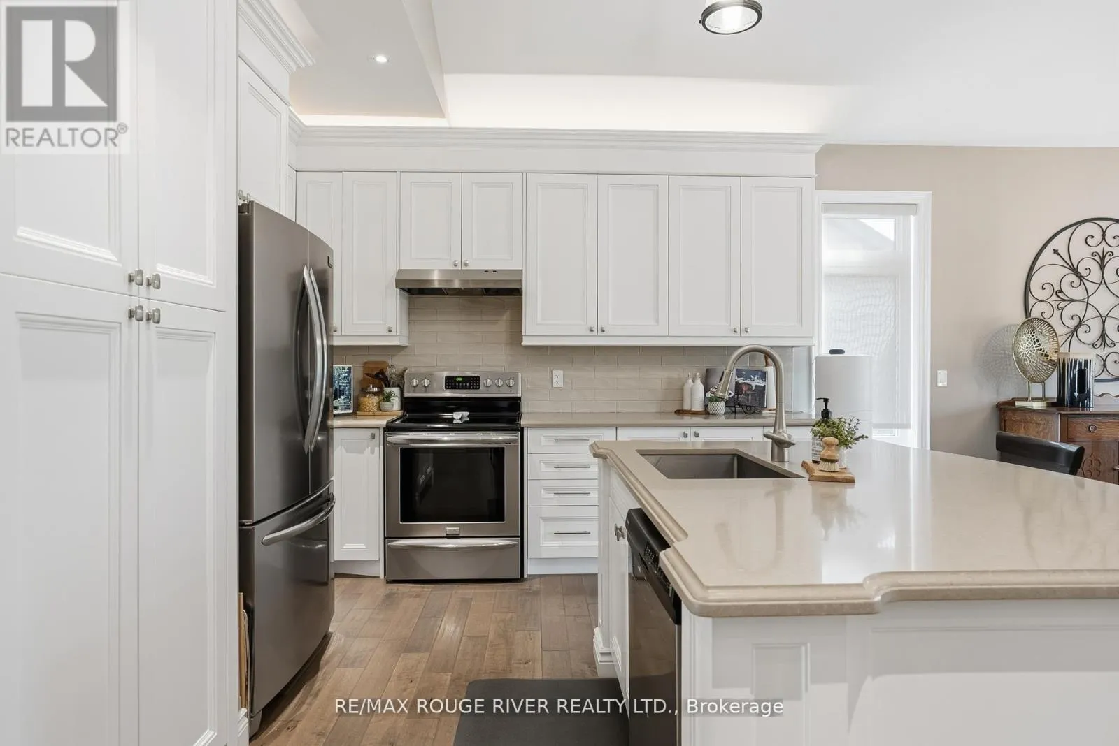 Cross Streets: Montgomery Street and Lockside Drive. ** Directions: LANSDOWNE ST EAST OF MEMORIAL CENTRE, TURN SOUTH ON LOCK ST, TO MONTGOMERY TO BRINTON. Welcome to 17 Lockside Drive, where Luxury Meets Lifestyle. Discover this stunning 2+2 bedroom, 3-bath raised bungalow nestled in one of Peterborough's most sought-after and peaceful neighbourhoods. This residence blends timeless elegance with modern comfort, all while offering picturesque views of the Otonabee River. Step inside and be greeted by soaring vaulted ceilings and an abundance of natural light that highlight the refined finishes throughout. The gourmet kitchen is a chef's delight, featuring a center island, quartz countertops, premium stainless-steel appliances, and plenty of storage, ideal for everything from relaxed family meals to elegant entertaining. The open-concept living and dining areas, illuminated by thoughtfully placed pot lights, create a warm, inviting atmosphere, perfect for gatherings or quiet evenings at home. Enjoy the convenience of garage access and a main floor laundry room, thoughtfully designed for everyday ease. The bathrooms feature upgraded counters, adding a touch of luxury to each space. Downstairs, the bright lower level impresses with high ceilings, lots of pot lights, a cozy stone fireplace, and two spacious bedrooms, ideal for guests, family, or a home office or studio. Step outside to your private backyard oasis with direct access to the riverside trail and water, perfect for kayaking, morning walks, or simply enjoying the serene natural setting. A gas hook-up for your BBQ on the large deck and easy door access from the garage make outdoor entertaining effortless and enjoyable. 17 Lockside Drive isn't just a home - it's a lifestyle. Every detail has been thoughtfully designed to offer beauty, comfort, and enduring appeal. (id:27476)