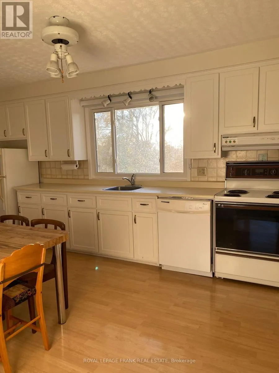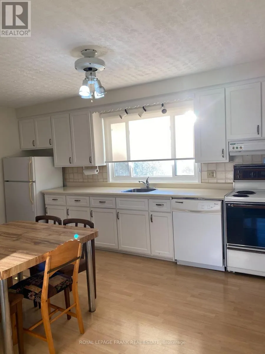 Hunter & Armour Rd Main floor of level entry brick bungalow for lease. Large eat in kitchen, living room, three bedrooms, one bath with laundry closet for washer/dryer hook up. Very bright, clean home with some hardwood floors. Private parking and patio area for tenant. Monthly Lease includes heat and water, Tenant to pay 50% of utilities. Great location and close to shopping, place of worship, parks and on the bus route. (id:27476)