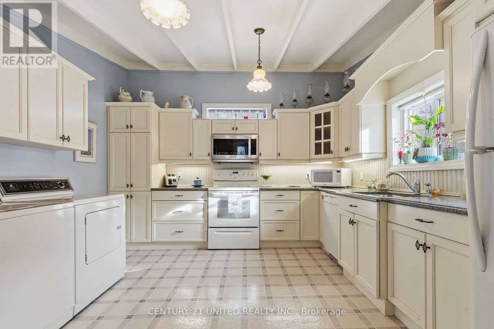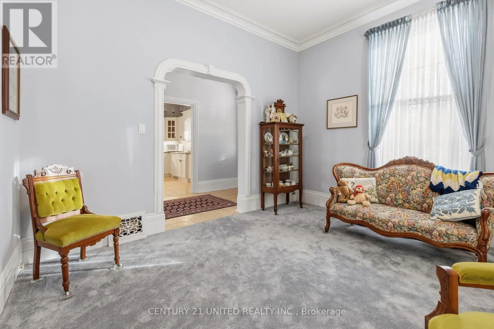 Park St Step into timeless charm in this beautifully maintained character home, ideally located within walking distance to local shops, cafs, and everyday amenities. Featuring soaring 10-foot ceilings and a thoughtful layout. Recent improvements include a roof and eavestroughs updated just two years ago and newer windows that fill the home with natural light. The main floor is designed for easy, one-level living, offering spacious kitchen, living, and dining areas, perfect for everyday life and entertaining alike. Cozy up by the gas fireplace in the inviting living room, or unwind in the sun-filled rear addition overlooking the private, fully fenced, landscaped backyard with deck. The home offers two bedrooms, 1.5 bathrooms, and the convenience of main-floor laundry. Upstairs, you'll find a versatile den with views of the backyard, previously used as a guest bedroom, ideal for visitors, a home office, or extra living space. Outside, enjoy the detached garage, ample parking, and a peaceful backyard retreat. This is a rare opportunity to own a character-filled home that delivers charm, walkable convenience, flexible living space, and timeless appeal. (id:27476)