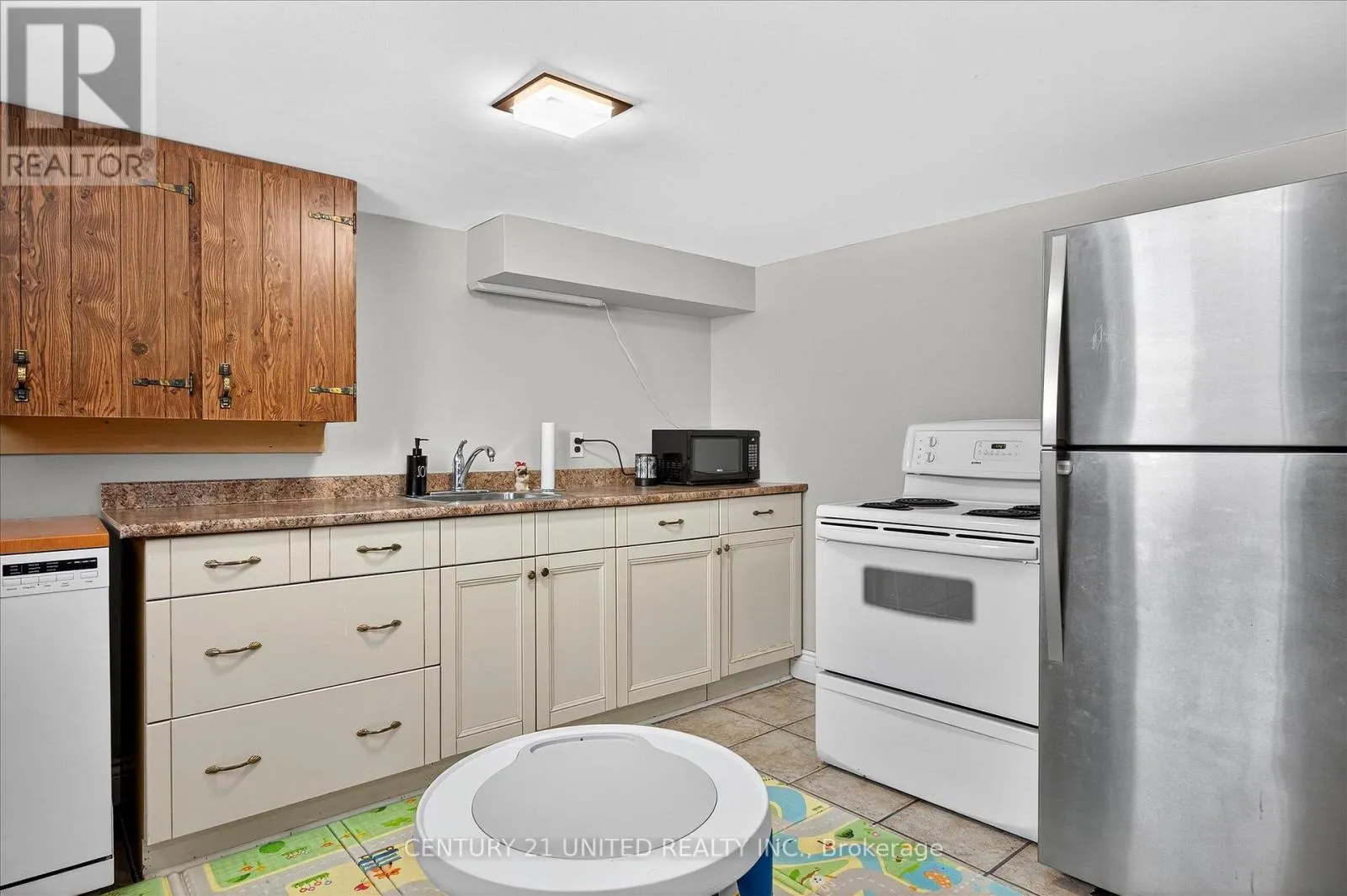 Cameron St & Erskine Ave All-brick bungalow with in-law suite potential in Peterborough's desirable south end, minutes to Hwy 115, Costco, shopping mall, schools, and beautiful Otonabee River trails. Fully fenced yard with a large deck shaded by mature maples and spruce - perfect for family time or entertaining. This 4 bedroom,2 full bathroom home features a fully finished basement with second kitchen, separate side entrance, modern main level bathroom, pot-lights throughout, separate laundry room, a 2021renovated kitchen, updated windows (2019) and new A/C (2019). Come take a look and make this home yours! (id:27476)