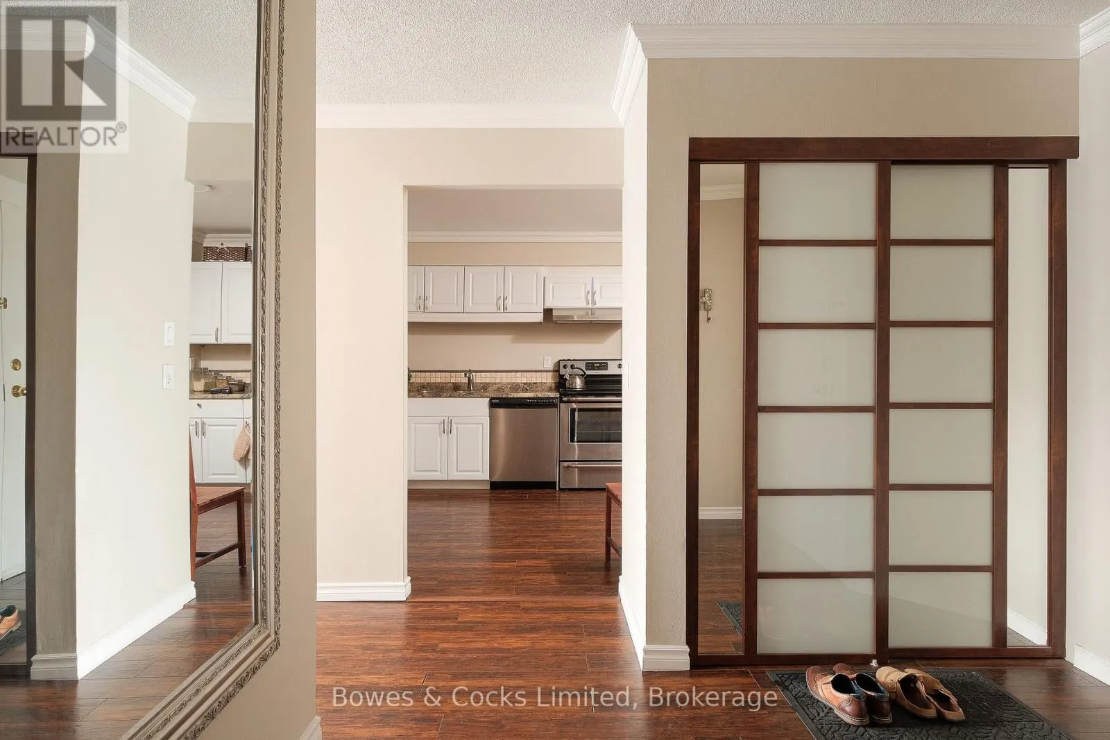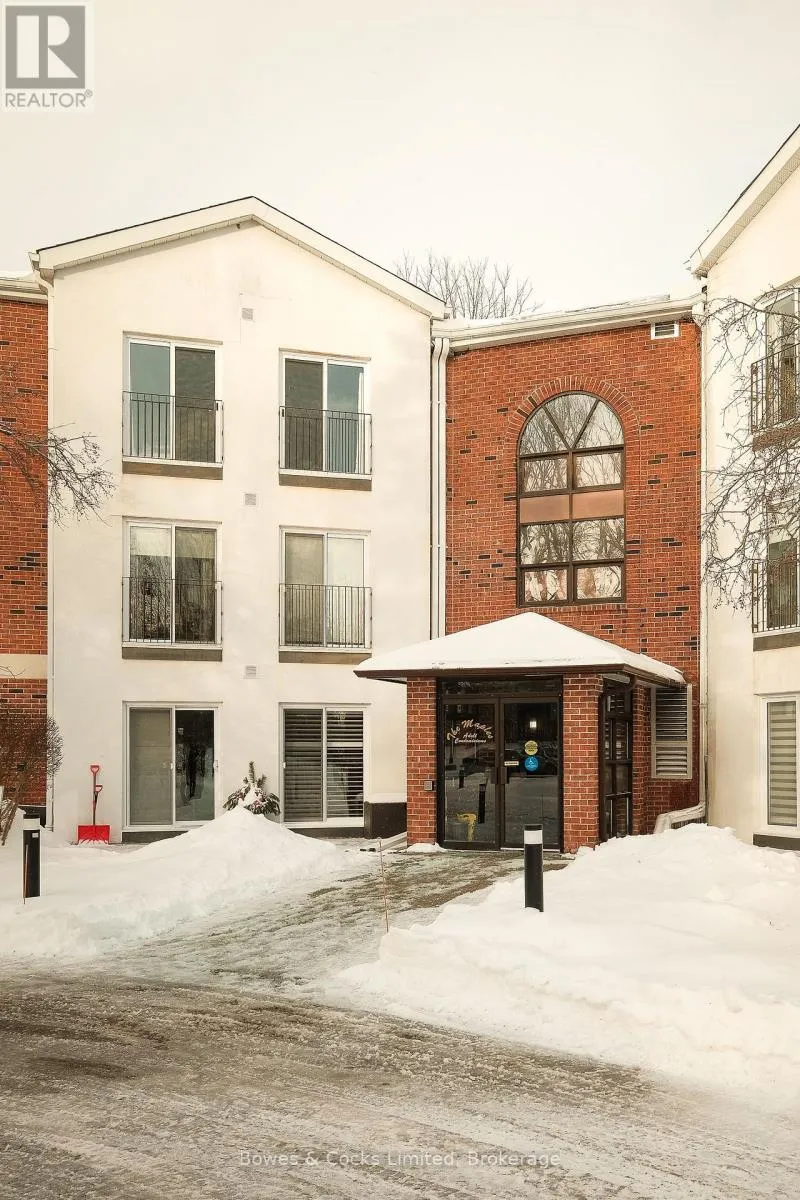 Cross Streets: Marina Blvd. ** Directions: Water St and Marina Blvd. Turnkey, carefree living in style awaits in this beautifully updated 2-bedroom, 2-bathroom condo, ideally located in Peterborough's north end community. Perfect for downsizers or anyone seeking low-maintenance living without compromise, this home is truly move-in ready and in tip-top condition. The bright, west-facing living and dining area is open and inviting, featuring newer flooring, fresh neutral paint, updated lighting, and two large patio doors offering great natural light. The kitchen showcases classic white cabinetry, which is open and functional. Both bathrooms have been tastefully updated with quality finishes. The generous primary bedroom includes a large walk-in closet and convenient semi-ensuite access. Additional highlights include in-suite laundry, a separate storage unit, heated underground parking, and a secure entry system. Residents enjoy excellent shared amenities such as an exercise area, library, common lounge/meeting room, visitor parking, and beautifully landscaped grounds. Ideally situated close to shopping, Riverview Park, public transit, and directly across from the Otonabee River, this is a truly lovely place to call home-offering comfort, convenience, and a carefree lifestyle in one of Peterborough's most desirable condominium communities. (id:27476)